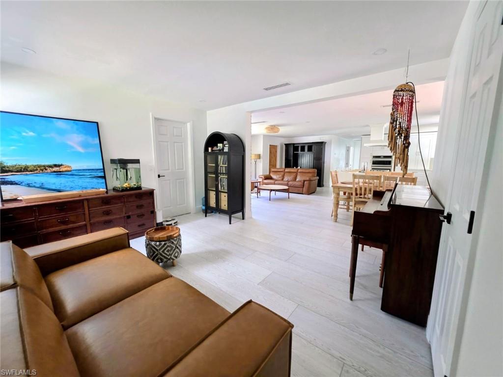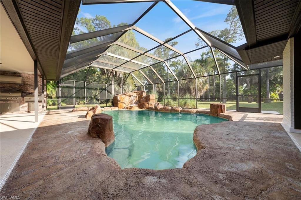Introducing this newly renovated property on nearly an acre, located in one of Naples’ most desirable neighborhoods. This home offers a perfect blend of comfort, convenience, and Florida living. Upon entering, you are greeted by a bright and spacious floor plan boasting an open-concept design, ideal for modern living. This estate features 2,187 sqft, 3 bedrooms + a den, 3 full baths, including a spacious primary bedroom suite. The gourmet chef’s kitchen is thoughtfully appointed with a stainless-steel appliance package, quartz countertops, all flowing seamlessly into the living and dining areas. Stepping out back into your private oasis, this property comes complete with a fully screened-in lanai, pool, spa, and a variety of fruit trees and lush greenery. Continuing outside, the guest house provides an additional 700 sqft, 2 bedrooms, and a full bath. Perfect for entertaining, the outdoor space is a fantastic spot to unwind and bask in the beautiful Florida weather. This beautiful home showcases rolling natural light, which enhances the bright and wide-open feeling throughout. Located only a few short miles from Naples' world-famous beaches, shopping and dining. Easily accessible to I-75 for the commuters. No HOA! Nearby a highly regarded private school: Seacrest County Day School.