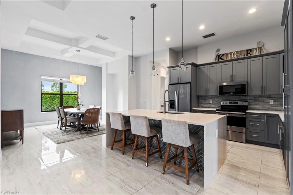 Brand-new luxury estate home in Naples, Florida, offering 5,115 square feet of living space combined on 1.26 acres. Designed and built by Caro Construction with interiors by Caro Design Group, this modern residence includes a full guest house, spacious open floor plan, and premium finishes throughout. The main home features wide-plank hardwood flooring, ceramic tile, and oversized doors that bring in abundant natural light. The chef’s kitchen is equipped with Wolf appliances, Quartz countertops, and a waterfall island ideal for entertaining. The owner’s suite includes a spa-style bathroom with soaking tub, large walk-in shower, and custom walk-in closet. The property’s outdoor living area is designed for a resort-style experience, with a custom pool, spa, and covered patio spaces for relaxation or gatherings. Located near Founders Square, Mercato, and top Naples golf courses, this new construction home offers convenience to fine dining, shopping, and beaches. Ideal for full-time residents, seasonal owners, or investors, this property blends modern luxury and privacy in one of Naples’ most desirable areas. Schedule a private showing today to experience this exceptional Naples Estate!