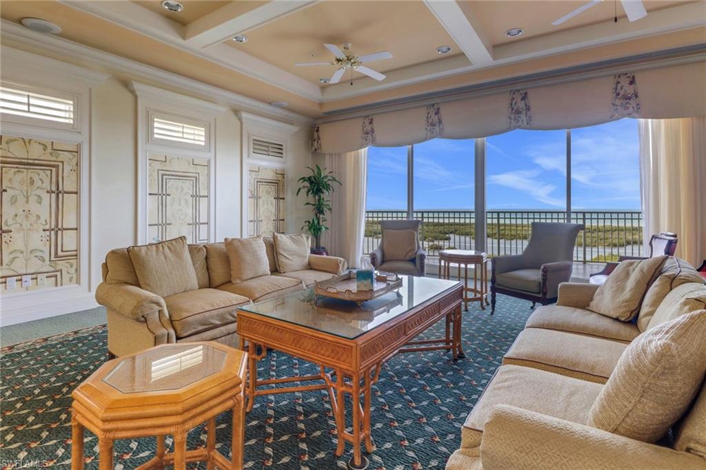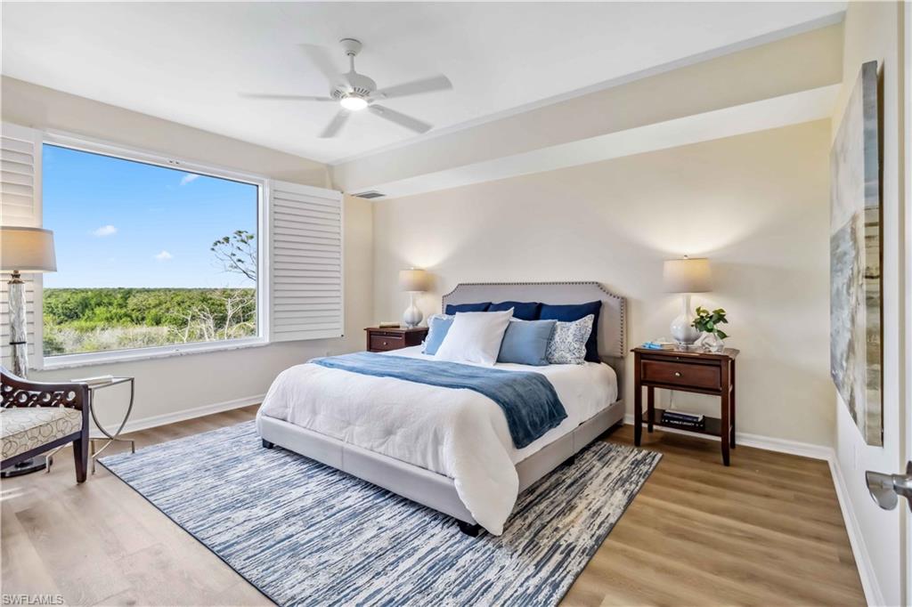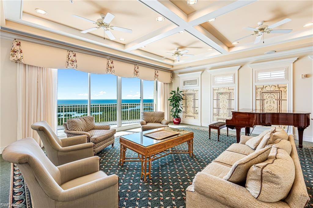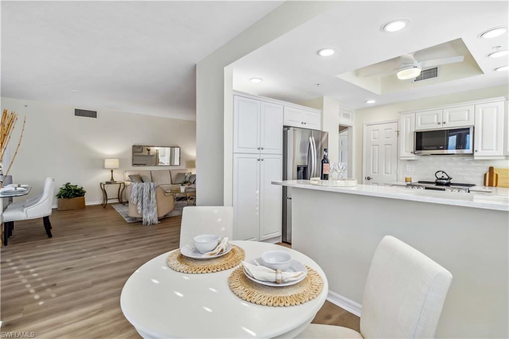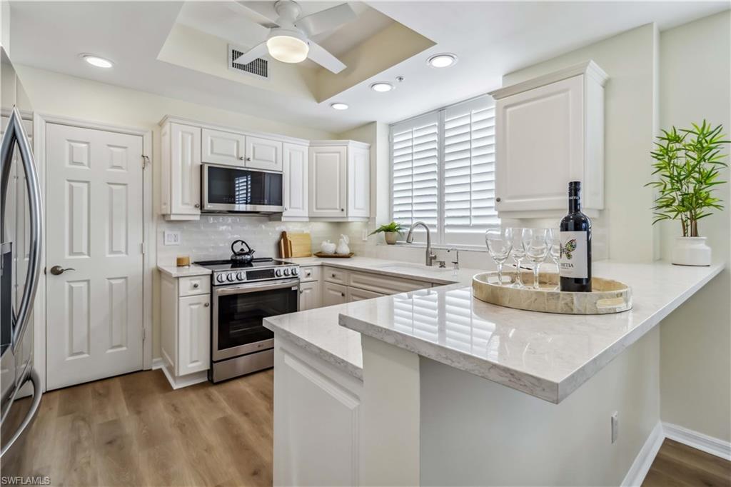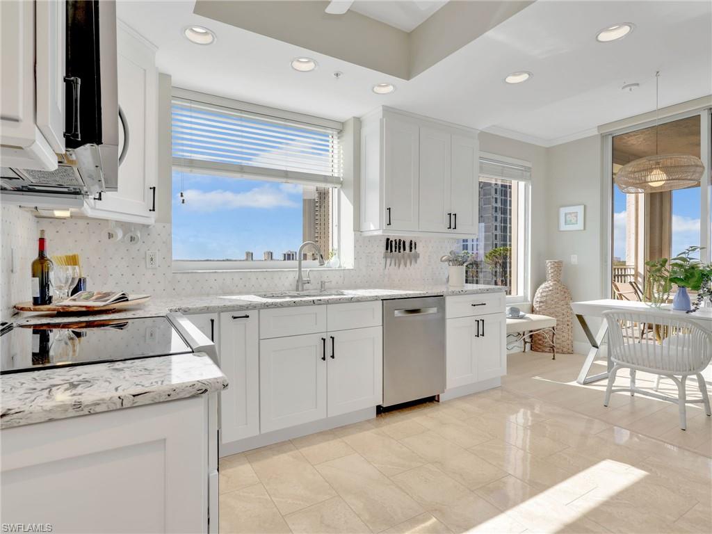 Experience refined coastal living in this impeccably updated 3-bedroom, 2.5-bath residence in Arbor Trace—one of Naples’ premier 55+ communities. The expansive open-concept layout is filled with natural light, seamlessly blending indoor elegance with outdoor serenity. Designed to live like a single-family home, the residence offers an inviting balance of space and comfort. A private balcony showcases sweeping Gulf vistas and world-famous sunsets, with desirable east, south, and west exposure that keeps the home sunny and bright throughout the day. Perfectly perched to enjoy passing boats and soaring seabirds, this home offers a daily connection to nature. The gourmet kitchen is a chef’s delight, featuring sleek cabinetry, stainless-steel appliances, and expansive quartz countertops. The primary suite is a serene retreat with stunning views, dual vanities, and a spa-inspired walk-in shower. A conveniently located garage space adds to the home’s ease of living. Residents of Arbor Trace enjoy a vibrant, maintenance-free lifestyle with resort-style amenities including fitness facilities, on-site fine dining, and complimentary transportation to shopping and medical appointments. With fee-simple, deeded ownership and no financial or medical requirements, Arbor Trace offers the perfect blend of independence, security, and peace of mind—all just minutes from Naples’ beaches, shopping, and dining.