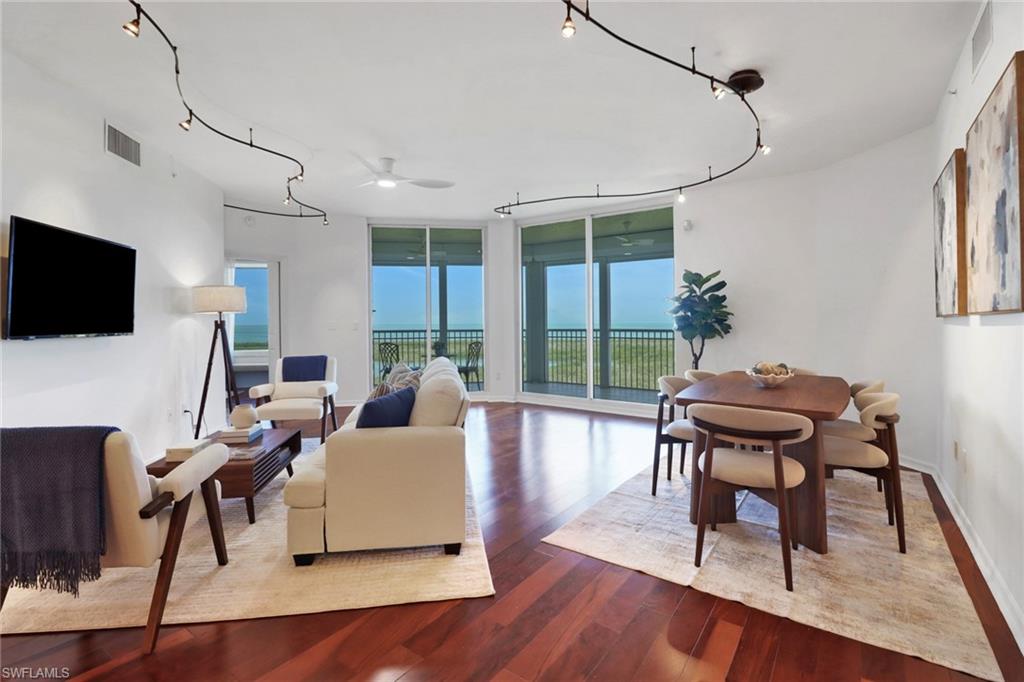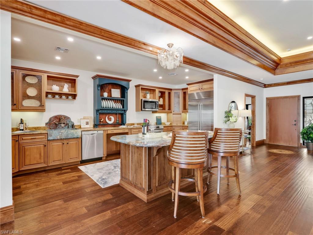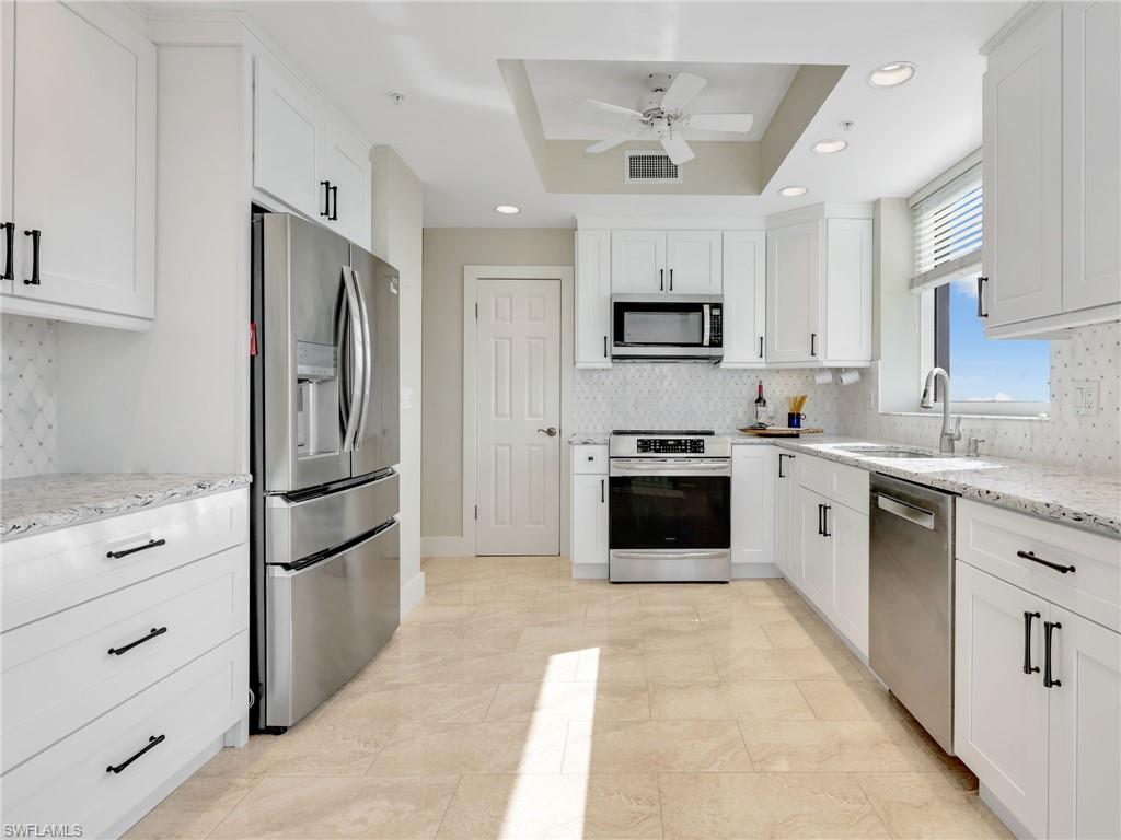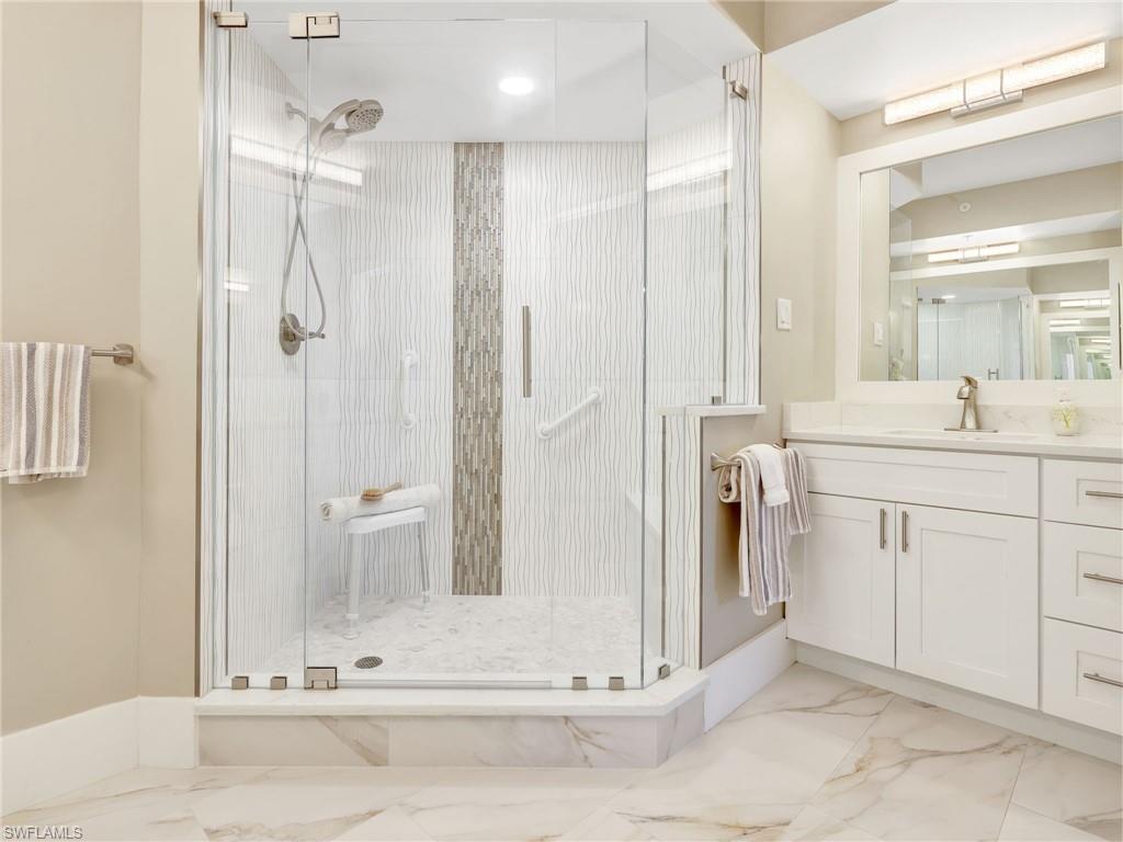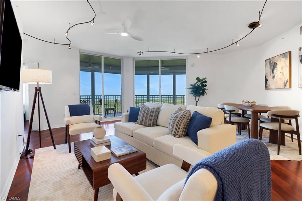 Experience refined coastal living in this impeccably updated 3-bedroom, 2.5-bath residence in Arbor Trace—one of Naples’ premier 55+ communities. The expansive open-concept layout is filled with natural light, seamlessly blending indoor elegance with outdoor serenity. Designed to live like a single-family home, the residence offers an inviting balance of space and comfort. A private balcony showcases sweeping Gulf vistas and world-famous sunsets, with desirable east, south, and west exposure that keeps the home sunny and bright throughout the day. Perfectly perched to enjoy passing boats and soaring seabirds, this home offers a daily connection to nature. The gourmet kitchen is a chef’s delight, featuring sleek cabinetry, stainless-steel appliances, and expansive quartz countertops. The primary suite is a serene retreat with stunning views, dual vanities, and a spa-inspired walk-in shower. A conveniently located garage space adds to the home’s ease of living. Residents of Arbor Trace enjoy a vibrant, maintenance-free lifestyle with resort-style amenities including fitness facilities, on-site fine dining, and complimentary transportation to shopping and medical appointments. With fee-simple, deeded ownership and no financial or medical requirements, Arbor Trace offers the perfect blend of independence, security, and peace of mind—all just minutes from Naples’ beaches, shopping, and dining.
