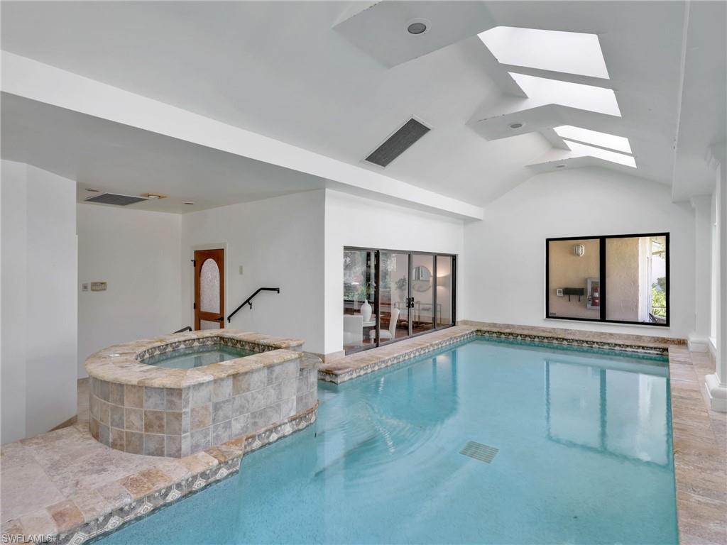 Arbor Trace is a premier destination for 55+ adults offering breathtaking coastal scenery and an active retirement lifestyle. This unique community offers deeded condominium ownership with 100% equity—with no medical or financial requirements—giving you the freedom to rent, sell, or pass your home on to heirs. Enjoy peace of mind with 24-hour medical emergency monitoring provided by the licensed nursing staff at Arbor Glen, the on-site assisted living facility. Arbor Trace also offers convenient transportation services for shopping, medical appointments, and off-site excursions. Residents indulge in an impressive array of resort-style amenities such as a resort-style heated pool, fitness center, tennis/pickleball, bocce courts, golf putting green, two libraries, special events, and gourmet dining at the clubhouse. This stunning 3-bedroom, 2-bath end-unit villa boasts over 3,400 sq ft of beautifully appointed living space, offering the luxury of a single-family home with the convenience of condo living. The gourmet kitchen features stainless steel appliances and a large island—perfect for cooking or entertaining. Unwind in your private indoor pool or take in peaceful lake views from your screened-in porch—ideal for entertaining guests or enjoying a quiet evening. Monthly fees cover all utilities, with the exception of property taxes and contents insurance. Don’t miss this rare opportunity to enjoy luxury coastal living with full independence and support in one of Naples' most desirable retirement communities!