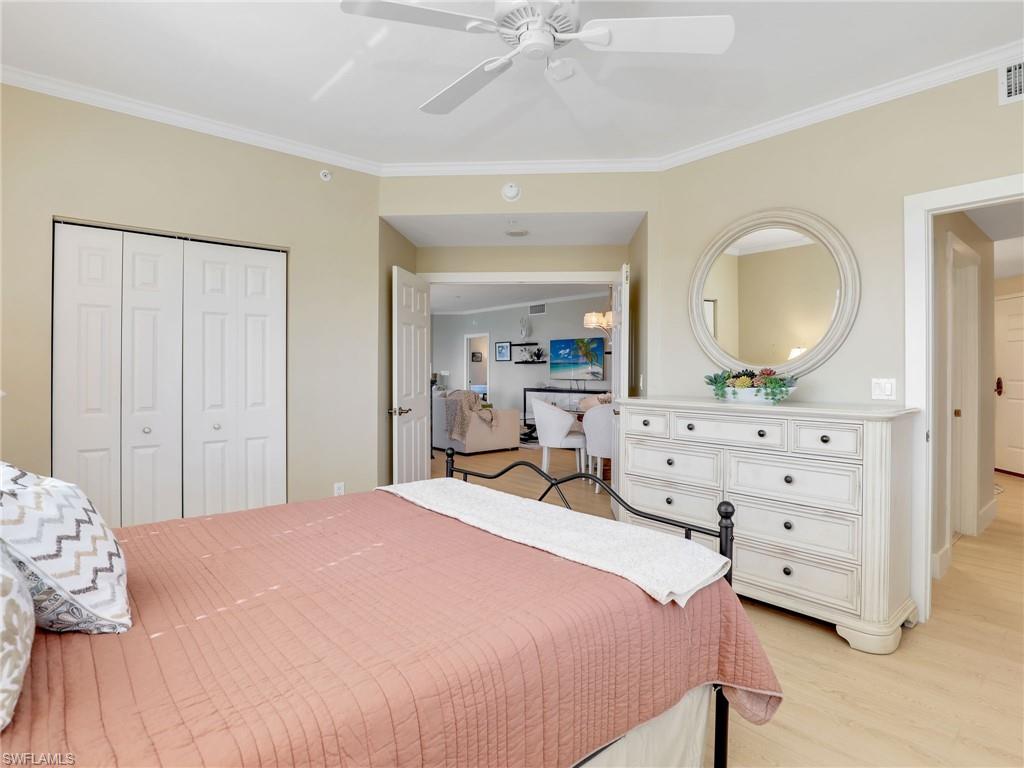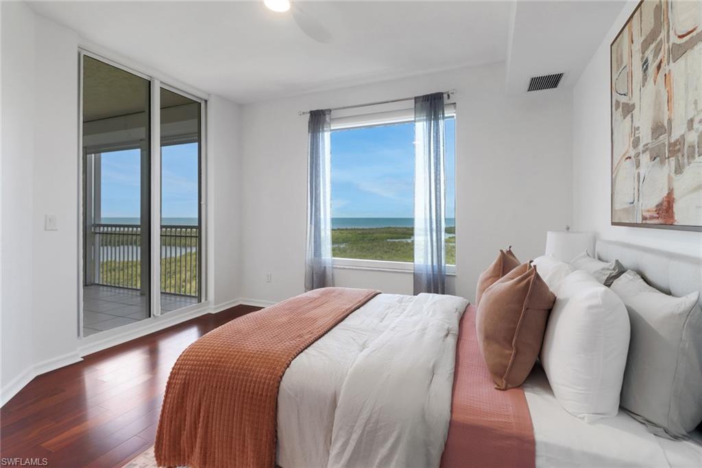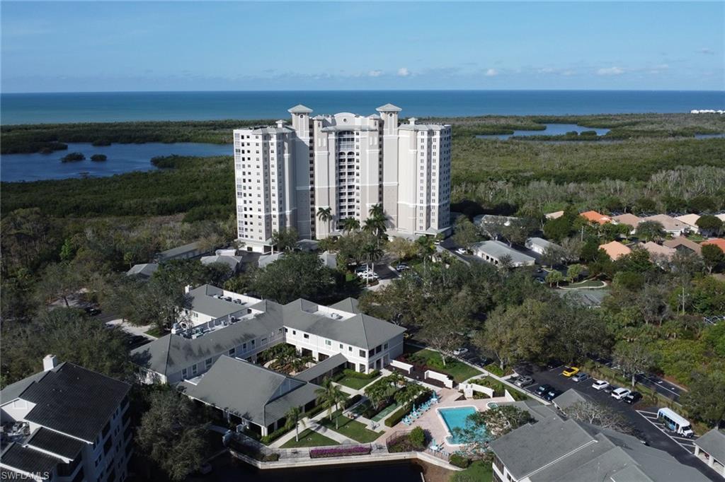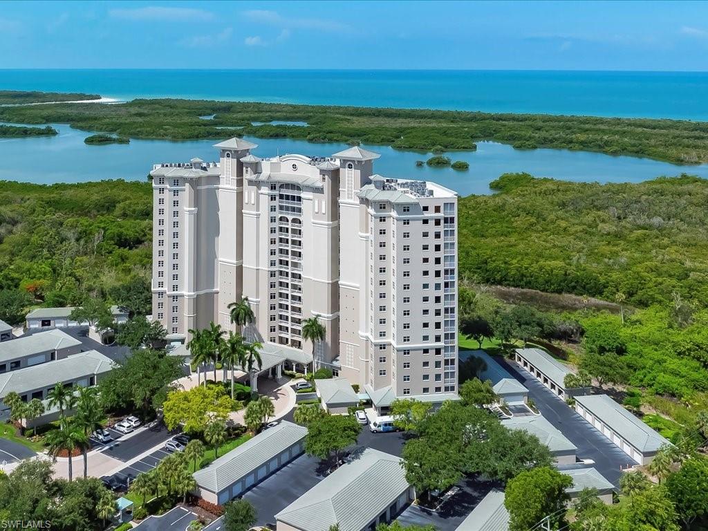 Breathtaking Gulf Views! This 12th-floor, 2-bedroom, 2-bath residence offers sweeping Gulf views and a serene retreat in the heart of North Naples. The open-concept layout is filled with natural light, showcasing stunning waterfront scenery from every angle. The spacious primary suite features direct balcony access, tranquil Gulf vistas, and a spa-inspired bath with dual vanities and a walk-in shower. A private guest bedroom provides comfort and versatility—perfect for visitors or a home office. Step out onto your private balcony to enjoy unforgettable sunsets over the Gulf. Arbor Trace is a resident-owned 55+ community offering deeded condominium ownership with 100% equity and no financial or medical requirements. Residents enjoy resort-style amenities including a heated pool, fitness center, tennis and pickleball, bocce, putting green, two libraries, clubhouse dining, and a calendar of social events. Support services include 24-hour medical monitoring, transportation to appointments, shopping, and group outings. An on-site continuum of care ensures peace of mind for the future. One car garage included. Milestone inspection complete.