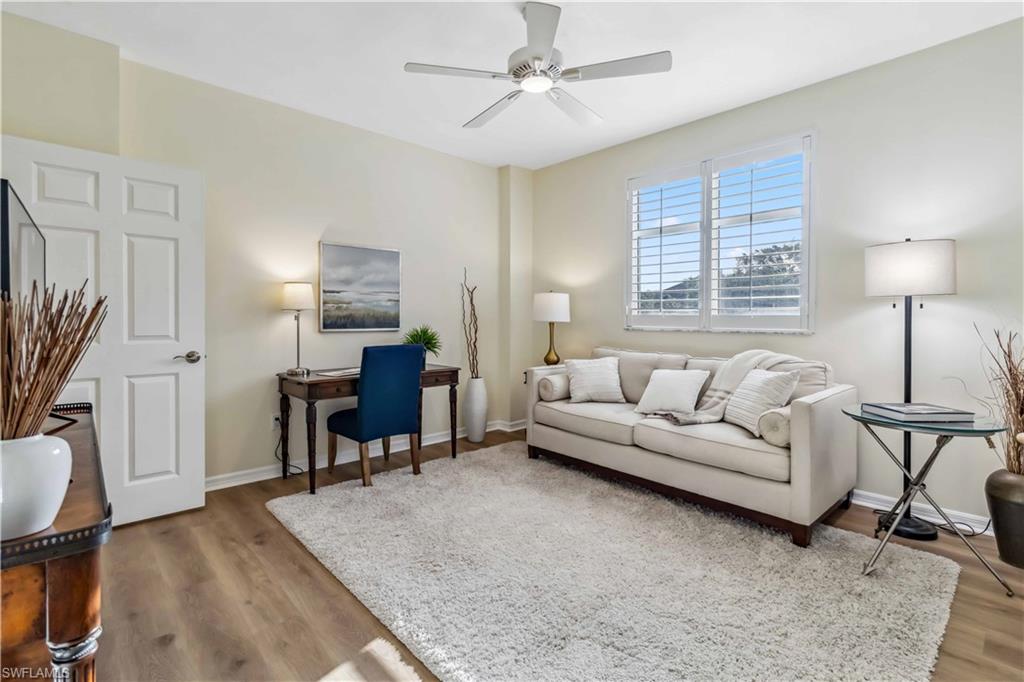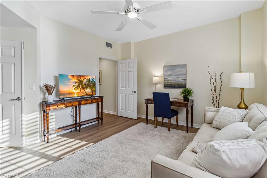Discover spacious coastal living in this beautifully maintained 1,790 sq. ft. 2-bedroom + den, 2-bath condo located in North Naples. This light-filled residence offers an open, inviting layout with two private outdoor spaces—perfect for relaxing, entertaining, or enjoying Naples’ year-round sunshine. The generous great room flows seamlessly to a screened balcony, while a second lanai extends from the kitchen or primary suite, providing multiple options for indoor-outdoor living. The well-appointed kitchen features ample cabinetry, abundant counter space, and a comfortable breakfast area. The primary suite is a peaceful retreat with access to an outdoor space, two closets, and an en-suite bathroom with dual vanities and a walk-in shower. A private guest bedroom and full guest bath ensure comfort for visitors. Includes one-car garage parking. Arbor Trace is a resident-owned community that offers exceptional amenities, including a resort-style heated pool, fitness center, tennis/pickleball, bocce courts, a golf putting green, two libraries, special events, and gourmet dining at the clubhouse. Benefit from comprehensive support services such as 24-hour medical monitoring, transportation to medical appointments, shopping, and group outings. Arbor Trace is a vibrant 55+ community that offers the unique advantage of deeded condominium ownership with 100% equity and no financial or medical requirements, allowing you to rent, sell, or pass your home to your heirs. Enjoy peace of mind with an on-site continuum of care.