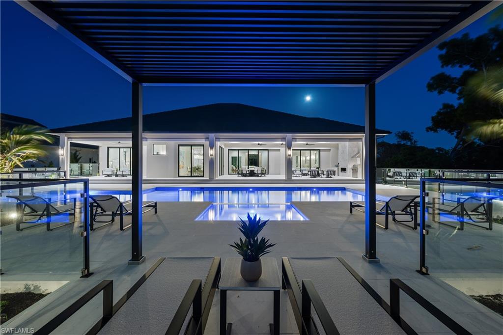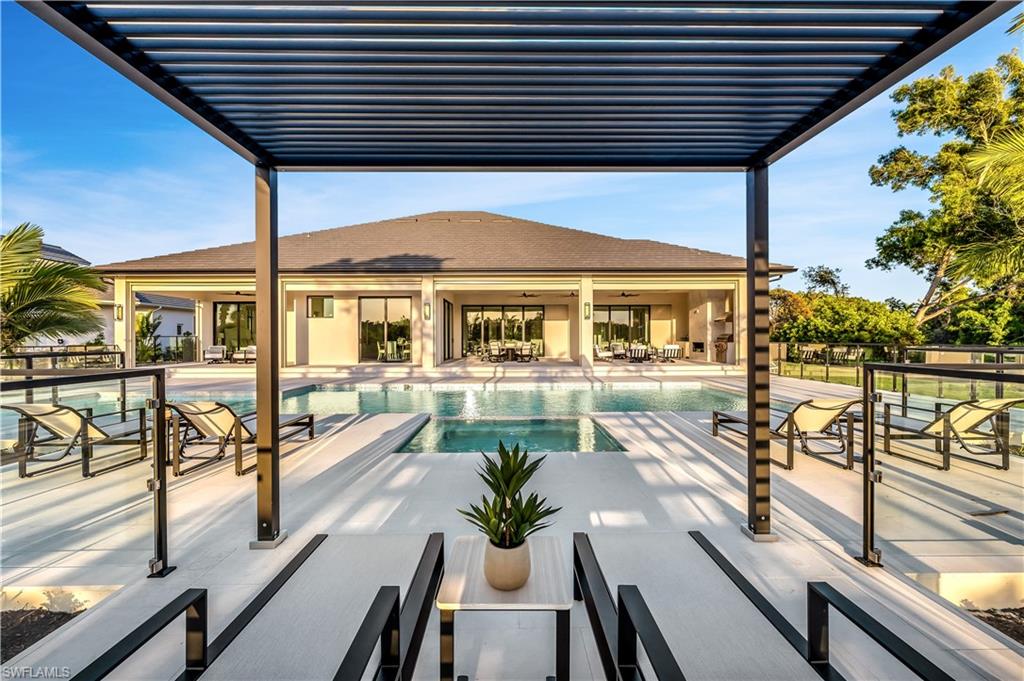 Beautifully renovated estate with stunning lake views in the prestigious Audubon Golf & Country Club in North Naples. Offers highly sought-after WESTERN exposure for breathtaking sunsets and optimal sun over the pool. This beautiful residence offers 3,204 sq ft of luxurious living space with 3 bedrooms, a den, a 2nd den/sitting room off the primary suite, 3 bathrooms, wood-look tile flooring, and custom wood detailing throughout. Additional highlights include hurricane impact windows/sliders and a new roof (2015). Step outside into your private backyard retreat—complete with a pool, spa, fire pit, outdoor shower, and a picture-frame screen enclosure providing unobstructed lake views. Inside, you’ll find the beautiful chef’s kitchen boasting stunning quartz countertops, custom wood cabinetry, and high-end appliances. The primary suite is a tranquil retreat featuring private access to the lanai, a cozy sitting area, generous walk-in closets, and a spa-inspired bath with dual vanities, a large frameless glass shower, and a separate jetted soaking tub. Audubon’s prime location is just 5 minutes from Mercato and world-class beaches, and the community offers a gated/guarded entrance, an 18-hole championship golf course, tennis, pickleball, a Bayside boardwalk, and a newly renovated clubhouse with dining and a second beautiful poolside club and café.