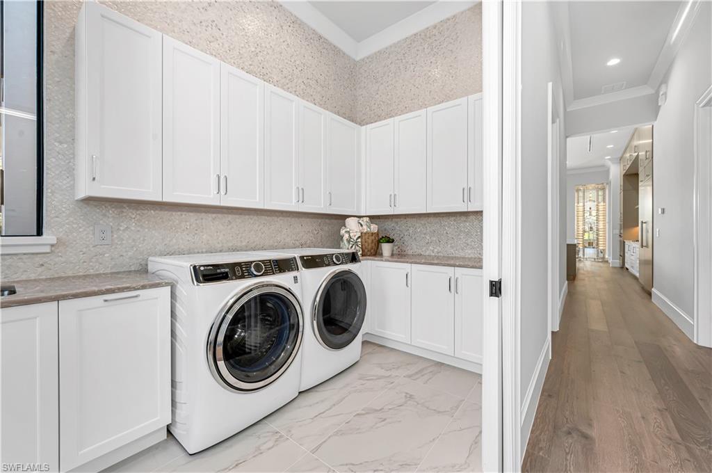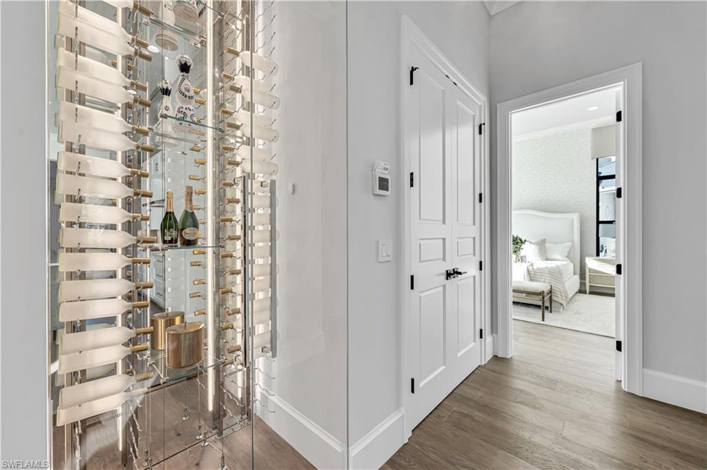 A Masterpiece of Organic Contemporary Elegance in Audubon Country Club. Welcome to an architectural triumph in the prestigious Audubon Country Club, where modern sophistication meets effortless natural luxury. Designed and built by award-winning PGI Homes, this brand-new custom estate spans 4,500 sq ft under air and over 7,000 under roof, offering four substantial en-suite bedrooms, a private study, and an ambiance of refined elegance. Located on a premium homesite, this residence boasts breathtaking sunset vistas over a lush nature preserve, providing a serene and private retreat. A grand foyer adorned with designer wall treatments and curated textures sets the tone for the impeccable craftsmanship found throughout. The open-concept great room, framed by floor-to-ceiling glass doors, seamlessly blends indoor and outdoor living. Soaring tray ceilings with custom detailing enhance the airiness, while warm European oak flooring adds to the home’s understated opulence. At the heart of the estate, the chef’s kitchen is a culinary masterpiece, featuring bespoke cabinetry, Sub Zero & Wolf appliances, and a stunning glass-enclosed wine display. Adjacent, a sophisticated private study with towering windows offers an inspired workspace or tranquil sanctuary. The primary suite is a haven of serenity, featuring luxurious textures, custom wood ceilings, and spa-inspired finishes. A seamless transition to the outdoor oasis reveals a truly resort-style (and resort size) pool, expansive sun deck, and multiple lounging areas, ideal for relaxation and entertaining. A fully equipped summer kitchen ensures al fresco dining at its finest. Additional highlights include an oversized garage with space for 4 cars, a whole-home generator for uninterrupted comfort, and exquisite designer finishes throughout. Situated in one of Naples’ most sought-after communities, Audubon Country Club offers championship golf, a newly reimagined clubhouse, tennis, and a vibrant social scene. Offered fully furnished, this is more than a home—it’s a statement of uncompromising quality and timeless sophistication.