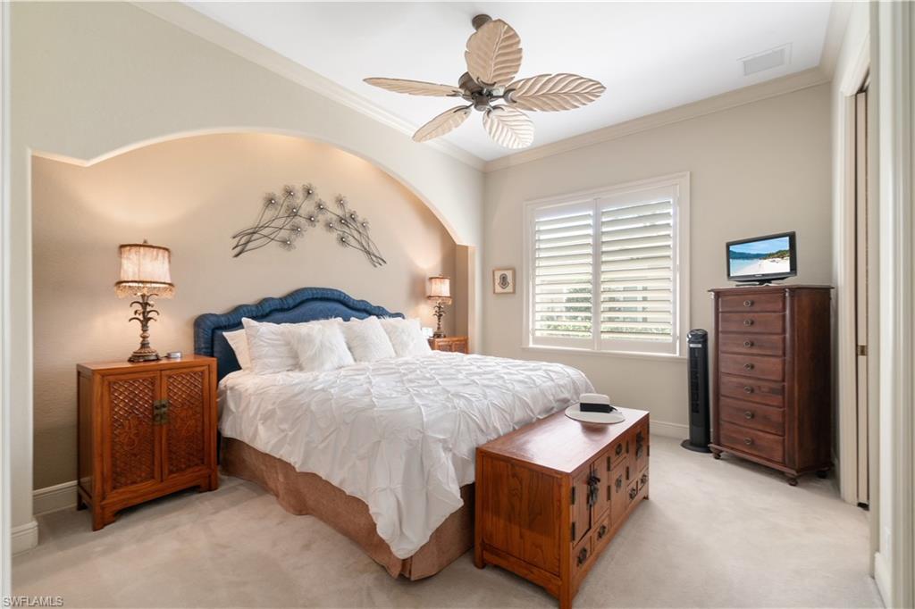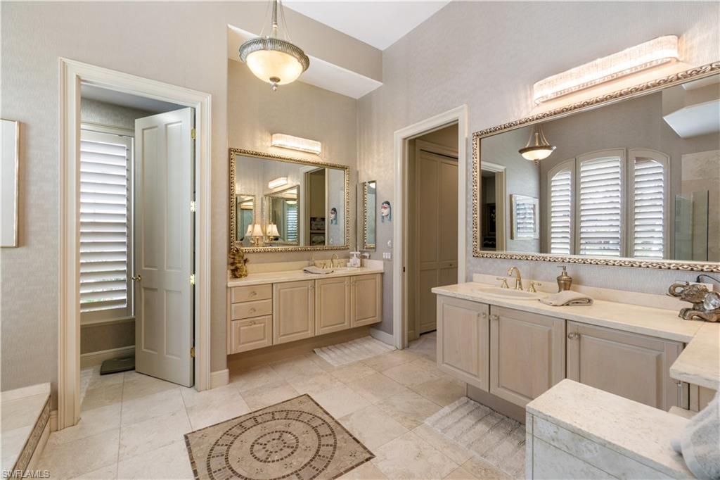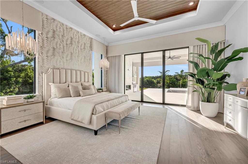 Exceptional estate situated on a rare corner lot with breathtaking lake views in the prestigious Audubon Golf & Country Club in North Naples. Offers highly sought-after SOUTHERN exposure for breathtaking sunsets and optimal sun over the pool. Originally built as one of Audubon’s model homes, this beautifully designed home offers 3,245 square feet under air with 4 spacious bedrooms, 4 full bathrooms, a 3-car garage, soaring high tray ceilings, and beautiful French doors, flooding the interior with natural light. Additional highlights include a 2014 roof, hurricane shutters, new hot water heater (2021), whole-house generator (2022), 500-gallon propane tank, and dual driveways for added convenience. The open-concept layout seamlessly blends indoor and outdoor living, with the lanai offering a serene retreat with a pool, spa, ample lounging space, and stunning lake views —perfect for relaxing or entertaining. Inside, you’ll find a spacious kitchen boasting white cabinetry, white countertops, and plenty of storage. The primary suite features private French doors to the lanai/pool deck, a large walk-in closet with custom built-ins, and an ensuite bathroom with dual vanities, a separate soaking tub, and spacious shower. Audubon’s prime location is just 5 minutes from Mercato and world-class beaches, and the community offers a gated/guarded entrance, an 18-hole championship golf course, tennis, pickleball, a Bayside boardwalk, and a newly renovated clubhouse with dining and a second beautiful poolside club and café.