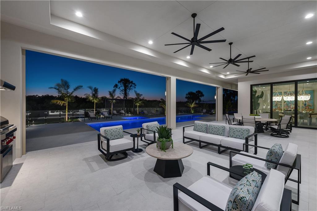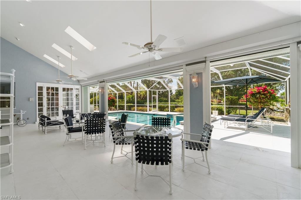 Nestled on a lot and a half, this exceptional estate offers stunning views of the golf course and pristine nature preserves, all within the highly coveted Audubon Golf & Country Club in North Naples. Enjoy the sought-after western exposure, providing breathtaking sunsets and optimal sunlight over the pool. This expansive residence boasts three generously sized bedrooms, two dens, three and a half bathrooms, a built-in bar, and a spacious three-car garage, plus a detached, insulated, and air-conditioned two-car garage. This additional two car garage could easily be converted into a luxurious Cabana for guests. The opportunities are endless with this large space. Additional highlights include a new roof (2022), hurricane impact windows and sliders, a new water heater (2024), a whole-house dehumidifier and air purifier, soaring ceilings with custom wood beams, and elegant travertine flooring. The beautifully landscaped grounds are enhanced with stunning landscape lighting in both the front of the house and behind the pool area. The expansive lanai is an entertainer’s paradise, offering unmatched privacy and featuring a rare infinity-edge saltwater pool and spa, complemented by an electric and gas heater that ensures both can be quickly heated for year-round enjoyment. Ample lounging areas and a summer kitchen make outdoor dining and entertaining effortless. The fully pocketing sliders seamlessly blend the indoor and outdoor spaces, making entertaining effortless. The beautifully renovated chef’s kitchen features pristine white quartz countertops, sleek white cabinetry, dual sinks, double ovens, and a breakfast bar for casual dining. The luxurious primary suite boasts private lanai access, a den, and a spa-like bathroom with dual vanities, a wraparound walk-in shower with multiple showerheads, and a separate soaking tub. Audubon’s prime location is just 5 minutes from Mercato and world-class beaches, and the community offers a gated/guarded entrance, an 18-hole championship golf course, tennis, pickleball, a Bayside boardwalk, and a newly renovated clubhouse with dining and a second beautiful poolside club and café.