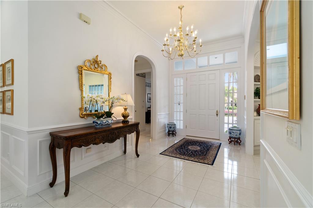 Experience timeless elegance and panoramic water views at 780 Brentwood Point, a distinguished estate tucked in Audubon Country Club of North Naples. This impressive 3-bedroom plus den, 3.5-bath residence spans nearly 3,900 square feet on a .45-acre lot, perfectly positioned to capture an ideal southern exposure and wide lake view that fill the home with natural light from sunrise to sunset. Inside, the freshly painted interior creates a light, bright ambiance enhanced by travertine flooring, soaring ceilings, and expansive windows throughout. The open-concept design offers effortless flow between formal and casual living spaces, while the oversized screened lanai extends the living area outdoors - surrounded by lush tropical landscaping and tranquil water views, perfect for relaxing or entertaining. Within Audubon Country Club, residents enjoy a premier lifestyle highlighted by an 18-hole championship golf course, Har-Tru tennis courts, pickleball, a state-of-the-art fitness center, and a resort-style pool. The newly renovated clubhouse offers both fine and casual dining options and a vibrant year-round social scene. Ideally located west of U.S. 41, just minutes from Naples’ beaches, dining, and shopping, this exceptional home is set against one of Audubon’s most scenic backdrops and offers the perfect blend of natural beauty and relaxed sophistication that defines country club living in Naples.