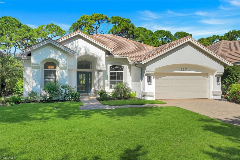 Experience Resort-style living in this gorgeous 5-bedroom plus den home perfectly situated on the golf course. The spacious open floor plan welcomes you with high ceilings, abundant light, and elegant finishes throughout. Five generously sized bedrooms, 3 are ensuites offer ample space for family and guests, while the versatile den is ideal for a home office, media room or extra guest accommodations. The roof was replaced in 2023 along with the gutters and the exterior of the home was painted in 2023. A whole house generator was installed in 2023. Step outside to your private outdoor entertaining oasis complete with a large, covered lanai and outdoor bar with refrigerated drawers and built in grill. Enjoy relaxing evenings hosting friends and family with a dedicated dining area, and plenty of room for grilling and outdoor activities. The seamless indoor -outdoor flow makes every gathering memorable, whether you are watching the sunset over the golf course or enjoying a quiet morning coffee. The 3-car garage with epoxy flooring and built in cabinets is an added plus. Audubon is one of Naples premier communities featuring an 18-hole Troon Managed golf course, Courtside café including indoor/outdoor dining, state-of-the-art fitness facility, community lap pool, bocce courts, tennis courts, Pickleball and a boardwalk down to the water. Currently there is a very short waitlist for golf membership, and social waiting golf members enjoy golf privileges immediately. Audubon Country Club is conveniently located to Vanderbilt Beach and Barefoot Beach.