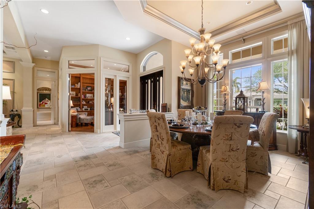McAlpine- Inspired elegance meets the charm of the French Countryside- step into A story book setting where every detail whispers sophistication. On nearly an acre, this property was Constructed by the esteemed Williams Group, Incredibly designed & furnished by Renee Gaddis. The impressive outdoor lawn is reminiscent of a private European oasis. It is designed for both grand entertaining and intimate moments. The expansive lawn provides the perfect space for gatherings, games & children at play, all centered around a stunning pool & spa. The brand new casita- gazebo that beckons with charm, complete with a summer kitchen, perfect for alfresco dining & entertaining guests. Walk down the paved greenway in your back yard to the inter coastal for fishing, kayaking, bird & dolphin watching. This delightful space boasts imported limestone flooring ,arched windows, cathedral ceilings, & opulent finishes that exude a modern art deco charm. No detail was overlooked in the planning of this exquisite residence which truly stands as a habitable work of art. Audubon Country Club is located in North Naples, minutes to Vanderbilt beach & The Mercado shopping center, with a short drive to everything downtown Naples has the offer. The club affords access to a range of exclusive amenities including golf & social memberships, a fitness center, tennis courts, kayaking, fishing, dining options & more, further enhancing the luxurious lifestyle offered by this exceptional property.