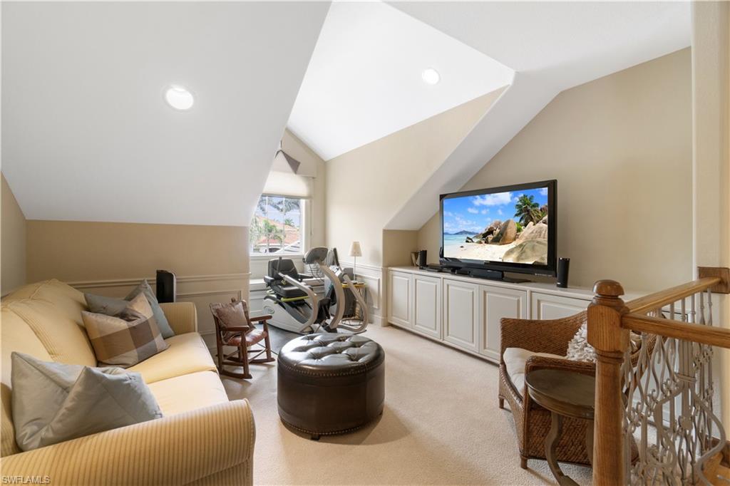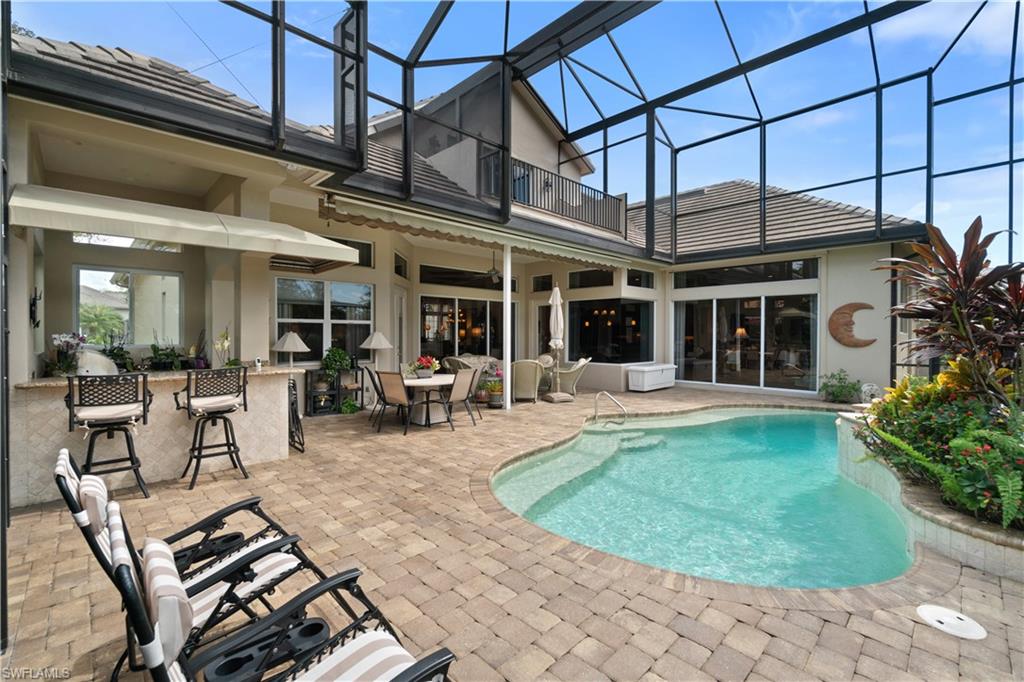 Located in the highly coveted Audubon Golf & Country Club in North Naples, this exceptional estate offers beautiful golf course views and ideal western exposure for prime sun over the pool and breathtaking sunsets. This beautiful residence offers 4,645 sq ft of luxurious living space, a new roof (2019), 3-car garage, soaring ceilings, a spacious open floor plan, & an incredible amount of storage. The main level includes a den and three private bedrooms (including the primary suite), each with its own ensuite, while the second floor offers an expansive guest suite complete with a wet bar, sundeck, and separate leisure room—ideal for entertaining family and friends. The beautiful chef’s kitchen boasts dual islands, granite countertops, custom wood cabinetry, an eat-in area, and a breakfast bar perfect for casual dining. Step outside into your own private oasis, where you'll be greeted by a spacious pool, spa, and a new picture-screen enclosure (2020), offering stunning golf course views. The outdoor space is enhanced with ample lounging areas and a summer kitchen complete with a grill, sink, bar seating, and an electric awning for added convenience. The generous primary suite offers direct access to the pool deck and a spa-like bathroom, featuring dual vanities, a large walk-in shower, and a separate jetted soaking tub, creating a tranquil retreat. Audubon’s prime location is just 5 minutes from Mercato and world-class beaches, and the community offers a gated/guarded entrance, an 18-hole championship golf course, tennis, pickleball, a Bayside boardwalk, and a newly renovated clubhouse with dining and a second beautiful poolside club and café.