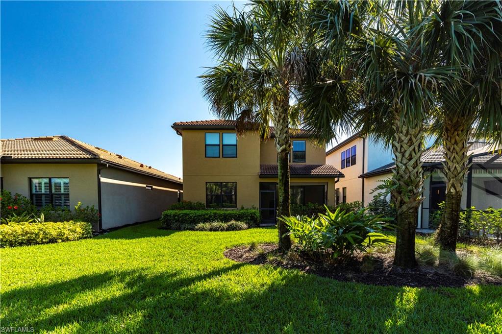 Welcome to this stunning 4-bedroom plus den/office, 2.5-bath, Clermont model with western waterfront exposure in Avery Square. The den, enclosed with French doors, easily converts into a 5th bedroom—ideal for new ones or guests. Avery Square is an 82 home, natural gas community, with unbeatable convenience offering pristine landscaping & LOW HOA fees. Step through an open & elegant front entryway and be welcomed by soaring vaulted ceilings and an abundance of natural light that highlight the home's open-concept layout. Designed for today’s lifestyle, the home features a formal dining room, a private home office located in the front of the home with French doors and a unique coffee/bar area with custom cabinetry and a built-in wine refrigerator. The gourmet kitchen showcases sleek KitchenAid stainless steel appliances and seamlessly connects to the main living area—creating a versatile space ideal for both daily living and entertaining. The main level master suite is located in the back of the home where privacy meets water views. The master bathroom features dual vanities, custom mirrors, a seamless glass tile shower with a separate soaking tub and custom California closets. Upstairs, a gracefully winding staircase leads to a spacious open-concept loft, perfect for a game or movie room and is surrounded by three additional bedrooms—offering privacy and flexibility for family or guests. Attention to detail shines throughout, with premium upgrades that enhance both function and peace of mind. Enjoy impact-resistant windows, whole-home surge protection, plantation shutters, custom California closets, extra storage throughout, and dual-zoned A/C systems with UV light purification. The laundry room is equipped with a Whirlpool washer and dryer, a utility sink, custom cabinets and a hanging/folding area. The oversized garage is another highlight, featuring ample space, a tankless water heater, an EV charger, a dual-fuel hybrid XP13000EH generator with hookup, and three propane tanks—keeping you prepared for any situation. Ideally located in a top-rated school district and surrounded by everyday essentials like Publix, Whole Foods and Home Depot, this home also offers easy access to an array of dining options and family-friendly amenities. Enjoy being minutes from Tiburon Golf Club & the vibrant shops, fine dining, and entertainment of Mercato, and only 4 miles from the white sands of Vanderbilt Beach, where you’ll find exceptional waterfront restaurants including The Ritz-Carlton's Dusk & Gumbo Limbo, Turtle Club, and Baleen at LaPlaya Beach Resort. Boaters will appreciate being just 10 minutes from Cocohatchee River Park Marina with direct Gulf access via Wiggins Pass. Plus, downtown Naples' famed 5th Avenue South and the Naples City Dock in Crayton Cove are only 15 minutes away—bringing the very best of coastal living right to your doorstep. Book your private tour today before it's too late!