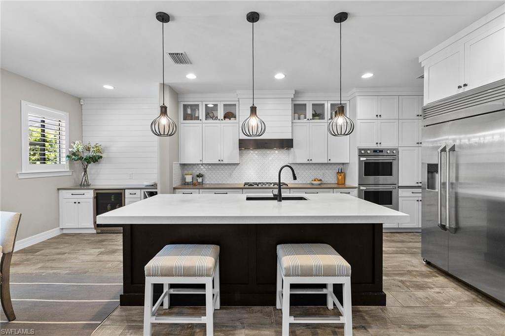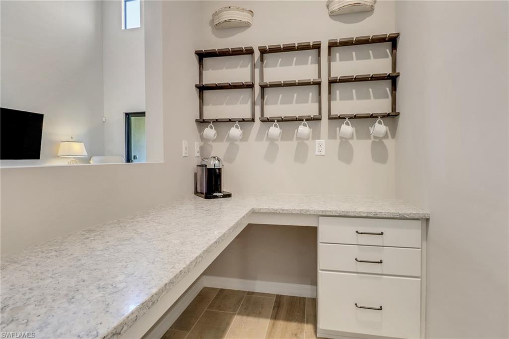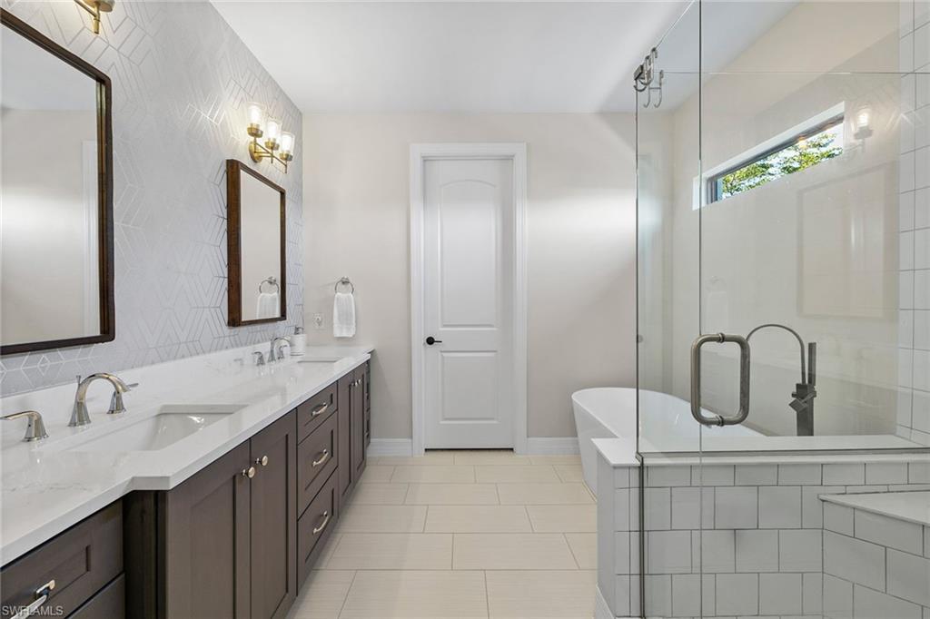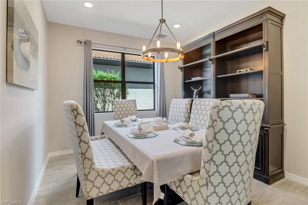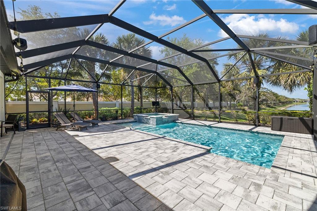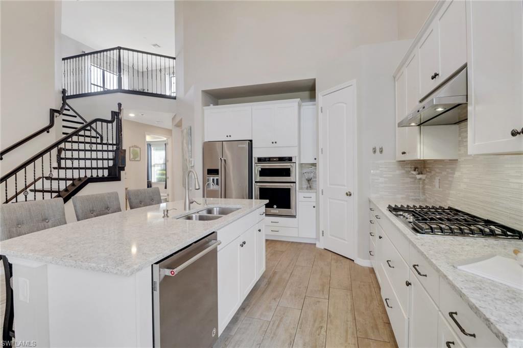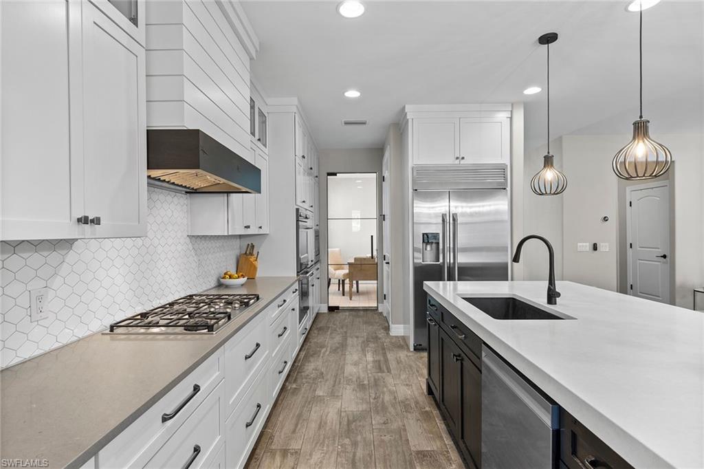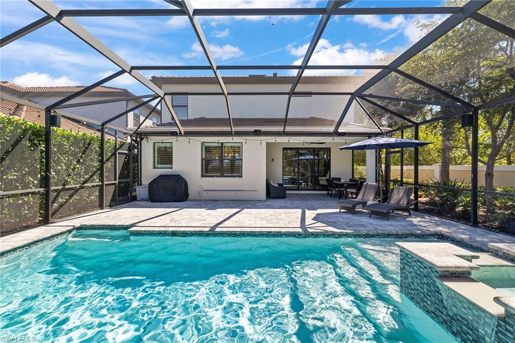 Exquisite custom home in Avery Square, 7111 Barnsbury Lane. Experience refined living in this exceptional custom-designed home, in the heart of Naples, just minutes from beaches, Mercato and 5th Avenue S, and in Collier County's best school zones. Thoughtfully upgraded throughout, this residence offers high-end finishes, quality craftsmanship, and a seamless blend of style and function beyond what every other home in this neighborhood has. The open-concept great room and kitchen are designed for everyday living and entertaining, featuring a spacious island with custom millwork, thick slab quartz countertops, and self-closing rollout cabinetry. A five-burner Miele gas cooktop, double oven, built-in microwave and a walk-in pantry with built-in shelving provide beauty and performance. The built-in dry bar, complete with a beverage refrigerator, wine rack and shiplap accent wall, adds an elegant touch. Custom details continue throughout the home, including floor-to-ceiling glass doors opening to a versatile office or formal dining room. Designer lighting, sconce accents, plantation shutters and transom windows enhance the sophisticated ambiance. The primary suite is spacious, featuring a spa-like bath with a beautiful freestanding tub ideal for long soaks and an oversized walk-in closet. The second-floor loft provides additional living space, while the expansive laundry room is equipped with two front-load washers and dryers, plus additional plumbing hookups. This well-thought-out floor plan includes a bedroom and full bath on the first floor, ideal for guests who prefer to avoid stairs. Step outside to a private outdoor retreat featuring a luxurious pool and spa with breathtaking long lake views. A TV has been installed on the lanai near the spa to maximize outdoor enjoyment. On a cul-de-sac with an oversized driveway and an epoxy-finished garage floor, this home offers privacy and convenience. Avery Square is a charming, highly desired, gated, low-density neighborhood with only 82 homes.