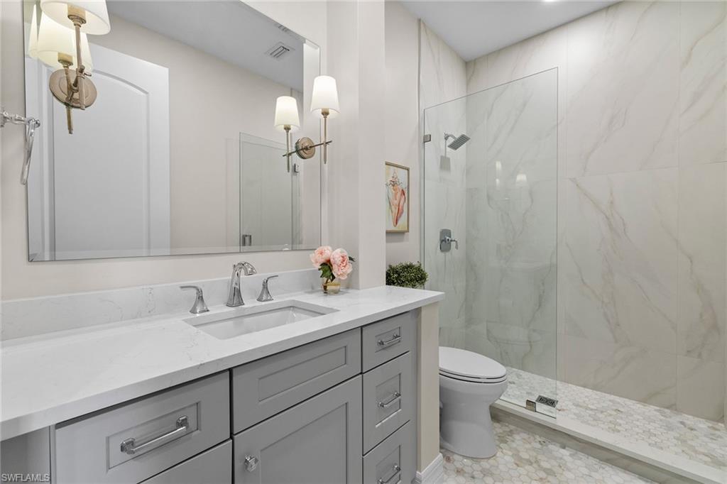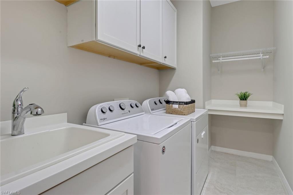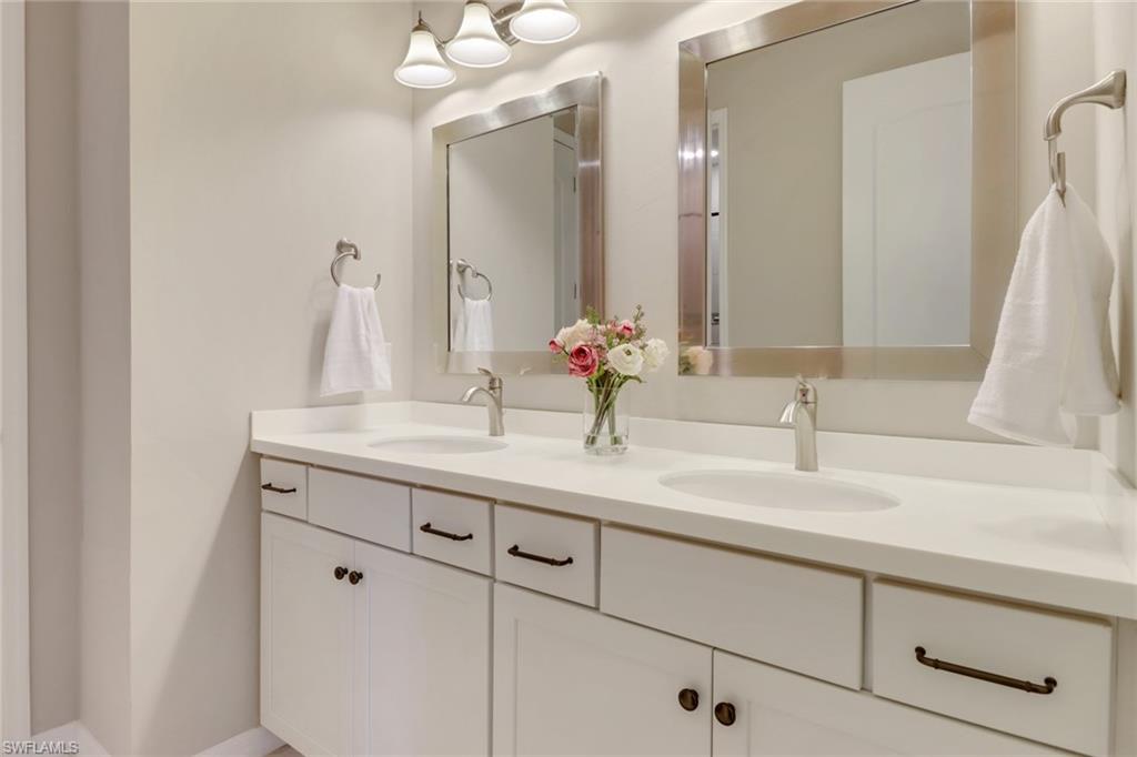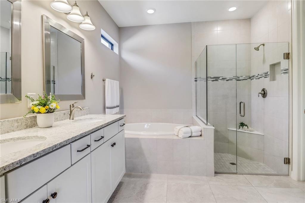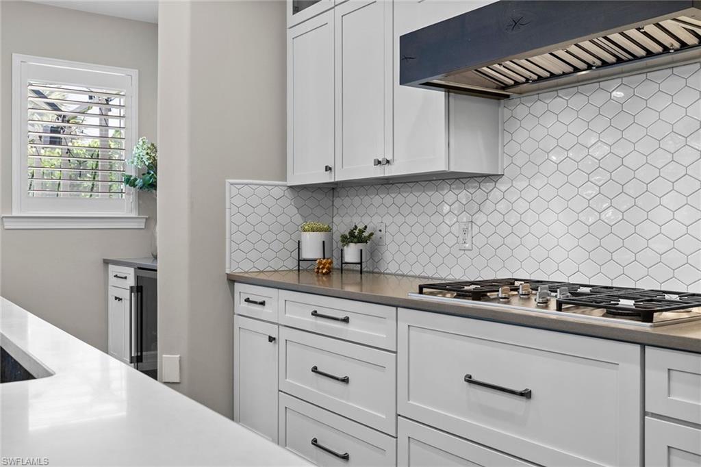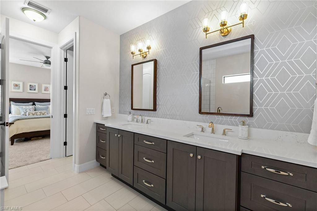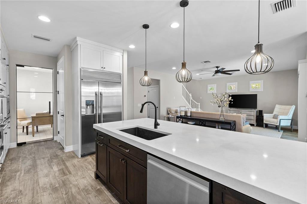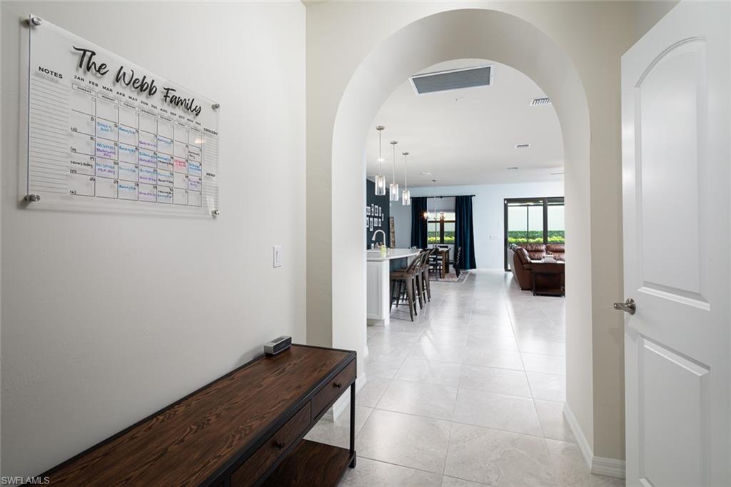 Exquisite custom home in Avery Square, 7111 Barnsbury Lane. Experience refined living in this exceptional custom-designed home, in the heart of Naples, just minutes from beaches, Mercato and 5th Avenue S, and in Collier County's best school zones. Thoughtfully upgraded throughout, this residence offers high-end finishes, quality craftsmanship, and a seamless blend of style and function beyond what every other home in this neighborhood has. The open-concept great room and kitchen are designed for everyday living and entertaining, featuring a spacious island with custom millwork, thick slab quartz countertops, and self-closing rollout cabinetry. A five-burner Miele gas cooktop, double oven, built-in microwave and a walk-in pantry with built-in shelving provide beauty and performance. The built-in dry bar, complete with a beverage refrigerator, wine rack and shiplap accent wall, adds an elegant touch. Custom details continue throughout the home, including floor-to-ceiling glass doors opening to a versatile office or formal dining room. Designer lighting, sconce accents, plantation shutters and transom windows enhance the sophisticated ambiance. The primary suite is spacious, featuring a spa-like bath with a beautiful freestanding tub ideal for long soaks and an oversized walk-in closet. The second-floor loft provides additional living space, while the expansive laundry room is equipped with two front-load washers and dryers, plus additional plumbing hookups. This well-thought-out floor plan includes a bedroom and full bath on the first floor, ideal for guests who prefer to avoid stairs. Step outside to a private outdoor retreat featuring a luxurious pool and spa with breathtaking long lake views. A TV has been installed on the lanai near the spa to maximize outdoor enjoyment. On a cul-de-sac with an oversized driveway and an epoxy-finished garage floor, this home offers privacy and convenience. Avery Square is a charming, highly desired, gated, low-density neighborhood with only 82 homes.
