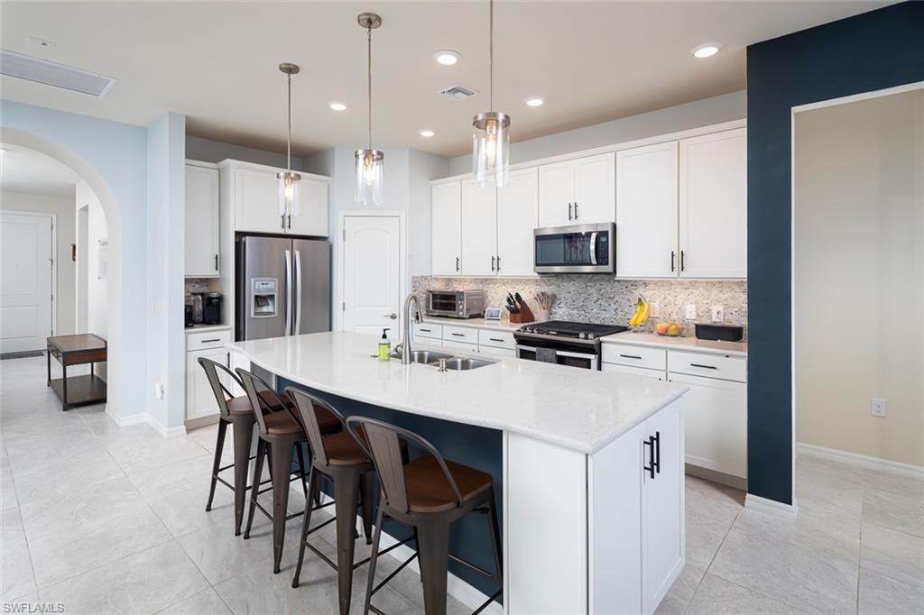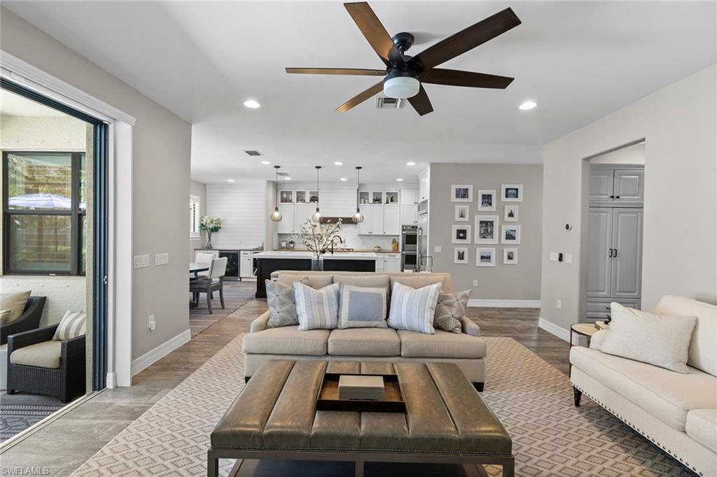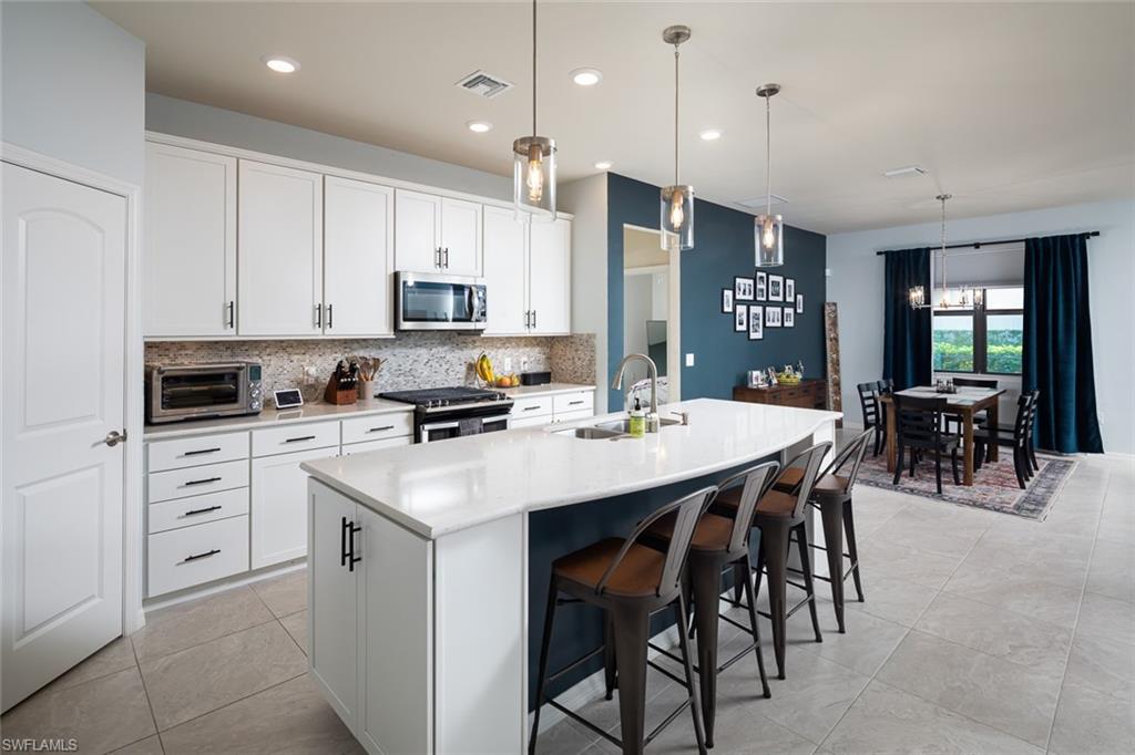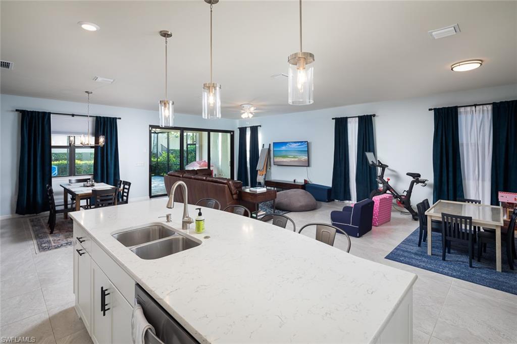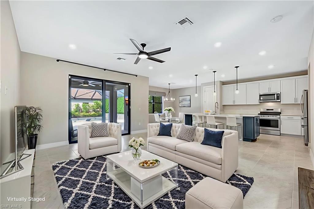 Move in ready and priced for your personal customizations. Perfectly positioned west of I-75 just minutes from immaculate white sand beaches, world-class shopping, and gourmet dining, this exceptional property is nestled within Collier County’s prestigious, top-rated school district. Built by Pulte Homes in 2019, the thoughtfully designed one-story residence features two bedrooms, a versatile den and two baths all crafted to accommodate modern living. The heart of the home is an expansive great room that seamlessly connects wide open living spaces to the stunning outdoor lanai with a saltwater heated pool, perfect for relaxation or entertaining in style. The chef-inspired, open-concept kitchen is a showpiece of functionality and elegance. Enhanced white cabinetry, an oversized island topped with premium quartz countertops, and abundant storage with upgraded pullout drawer shelves ensure effortless organization. Located in a sought-after natural gas community with low HOA fees, this property offers a rare combination of privacy, elevated living and practical convenience in a superb location.