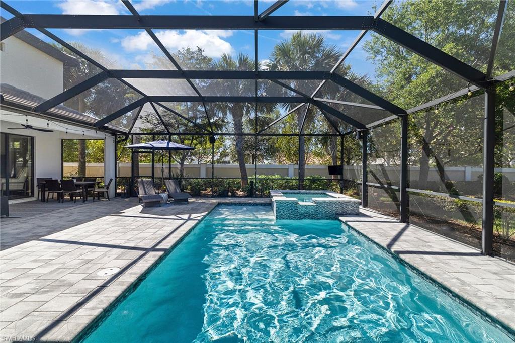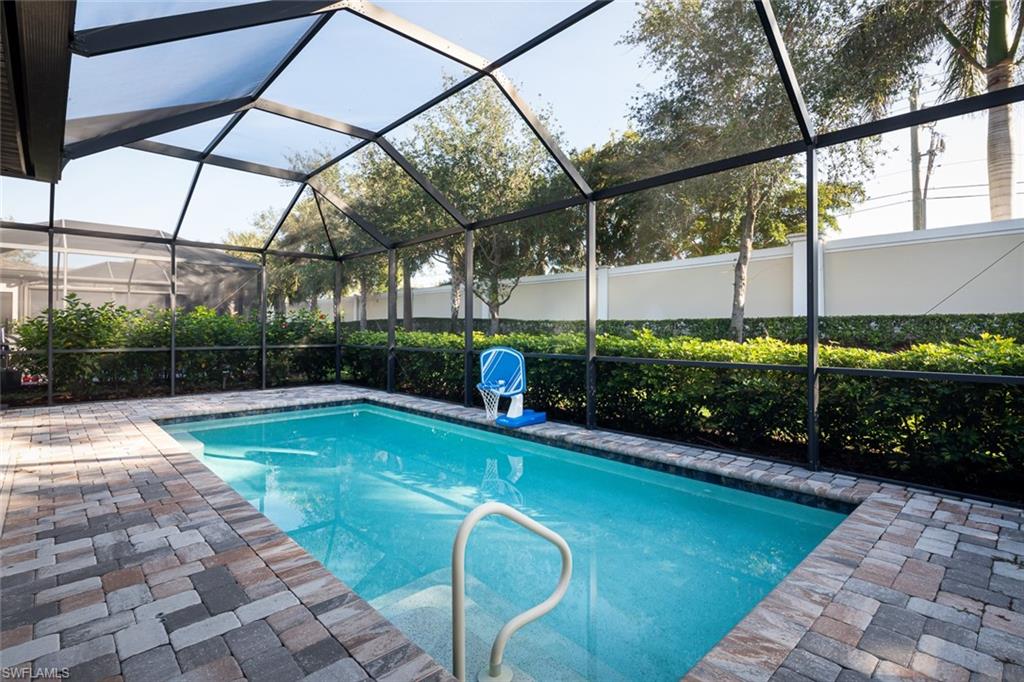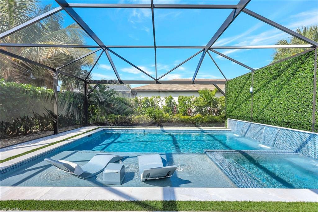 Modern design meets timeless craftsmanship in this immaculate 2019 Summerwood model, ideally positioned within Avery Square - an intimate, 82-home natural gas community in the heart of North Naples. This 3-bedroom, 2-bath residence features a spacious Den, perfectly suited for a home office, gym or easily convertible to a fourth bedroom. Equipped with a new custom front door, step inside and discover a home where every detail has been meticulously curated. Elegant, coffered ceilings with light wood inlays, designer chandeliers, and upgraded DC-motor ceiling fans create a refined yet inviting atmosphere. The chef-inspired kitchen showcases a striking soapstone-granite island with custom cabinetry below, offering both style and functionality. From the solid core doors and enhanced trim work to the lush, upgraded landscaping, this home exemplifies a thoughtful open-concept space ideal for entertaining. Outdoors, enjoy a private family retreat with an oversized pool deck and extended screened enclosure, featuring a heated pool and spa with newer equipment for year-round relaxation. Avery Square is cherished for its family-friendly charm, peaceful streets, low HOA fees and the unbeatable location. Located just three miles from Vanderbilt Beach and minutes from Mercato, Whole Foods, Seed to Table, and top-rated schools, this sought-after North Naples address embodies the essence of coastal living where Comfort, Community and Convenience align perfectly. Schedule your private tour today.