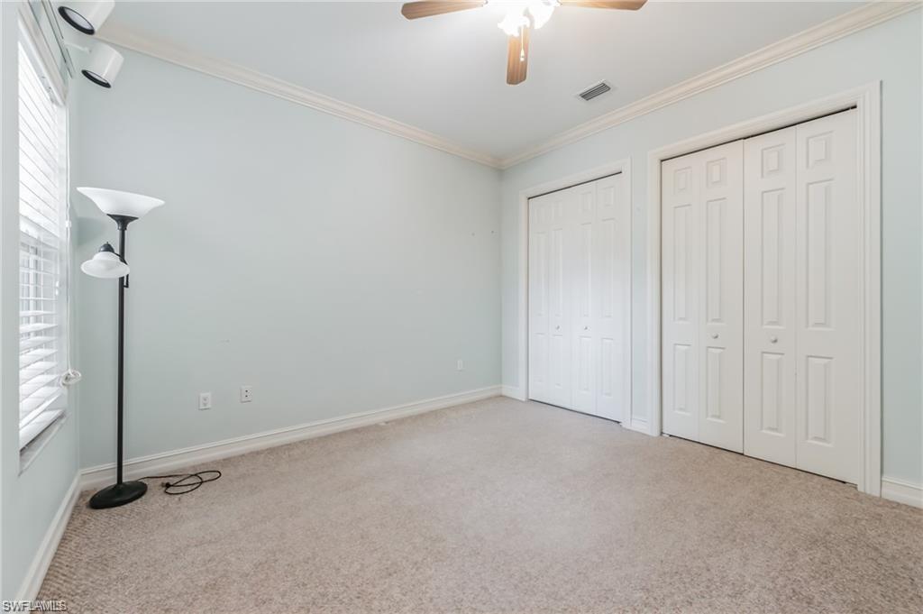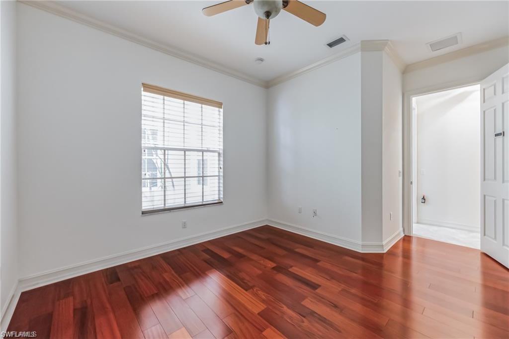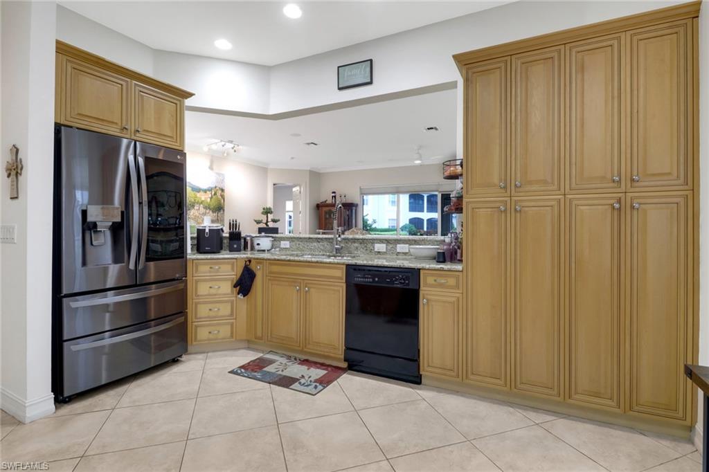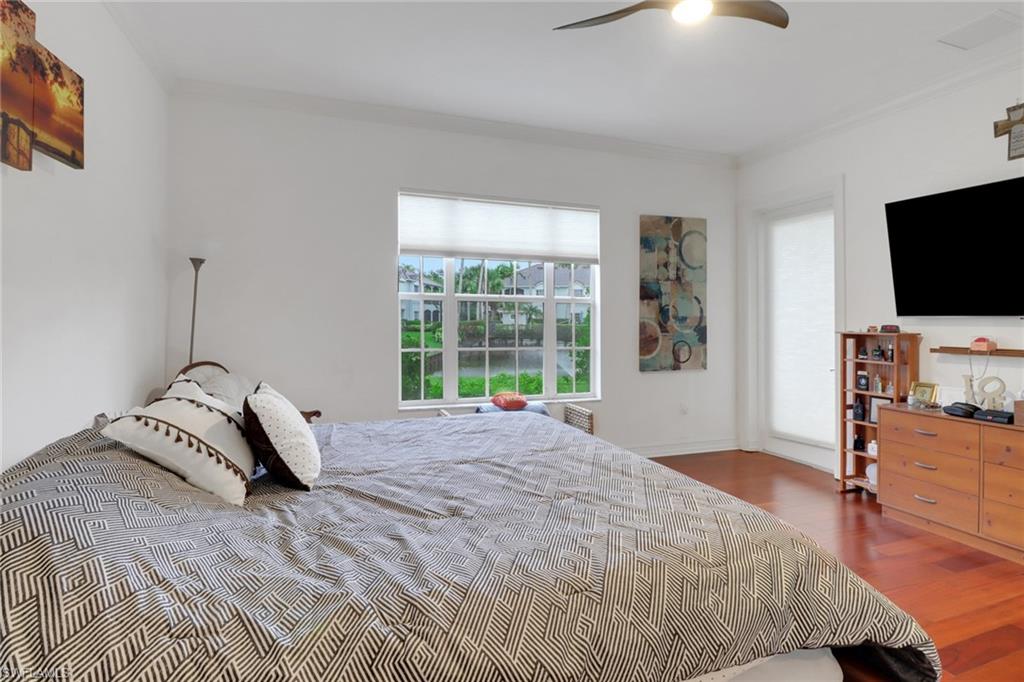 First floor coach home features 3 bedroom with 2 bathrooms, southern exposure, beautiful lake views and is just a short distance to the pool. Residence lives like a single family home with an abundance of windows allowing for plenty of natural light. 2 car attached garage. Many upgrades in the home including automated hurricane shutters on screened in patio, tile flooring in main living areas and bathrooms and hard wood flooring in main bedroom and guest bedroom, 3 rd bedroom is carpet. Enjoy cooking in your spacious upgraded kitchen with an eat-in bay window nook, granite countertops and newer appliances and custom cabinetry with built in pantry. Crown molding in main living and bedrooms as well as new fixtures and fans throughout. This home is a must see and great location. Spacious laundry room right off the garage offers a laundry sink and plenty of cabinets for storage. The building had new roofs installed 2 years ago. Banyan woods and their clubhouse offers a variety of recreational activities including a fitness center, various activity rooms, gazebo and heated pool and spa, community playground or basketball courts. Close to 5th Avenue shopping and dining, the Beaches of Naples, 3rd Street South, Coastland Center Mall and more, Banyan Woods has everything you need right out your front door.