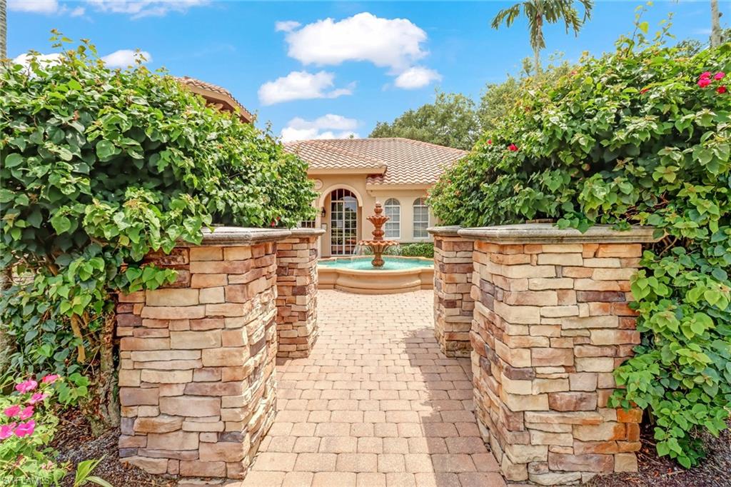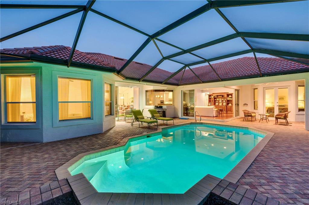 This meticulously maintained 4-bedroom/3.5 bath courtyard home in the upscale gated Banyan Woods Community in North Naples has over 3,100 sq. ft. under air. Banyan Woods HOA fees are low and its proximity to restaurants, shopping, 5th Ave, beaches, and Interstate 75, place it in a highly desirable location. This home features multiple upgrades such as blown-in foam attic insulation as well as all interior walls, new (2018) KitchenAid appliances, a gas fireplace, tile floors in the main living area, plantation shutters, custom Hunter Douglas remote control window shades, wood floors in the bedrooms and den, surround sound, private pool with fountains and hot tub/spa with waterfall feature, an outdoor kitchen with a Viking gas grill and wine cooler, a separate cabana guest house, central vacuum system, a whole-house 20 KW Kohler generator with a 250- gal propane tank, and a fenced backyard are a few. The roof and both air conditioners have recently been replaced. A complete list of upgrades is in the Supplements.