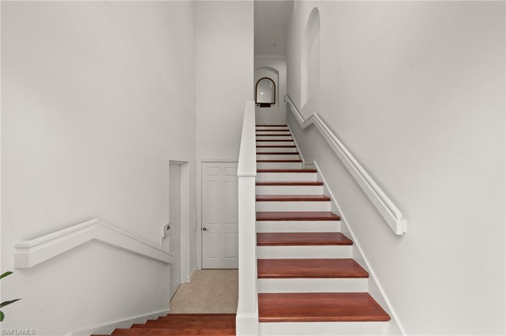 Beautifully Appointed Coach Home in The Reserve II at Banyan Woods Outstanding value for this spacious second-floor coach home, the largest floor plan in The Reserve II, offering 3 bedrooms plus an office, bonus/family room, and 3 full baths, perfectly blending comfort, function, and style. The inviting foyer greets you with a grand staircase and elegant wood flooring, while the private elevator provides effortless access to the main living area above. The open-concept layout features 10-foot ceilings that enhance the sense of space and light. The kitchen includes granite countertops, stainless-steel appliances, a wall oven, and a charming breakfast nook overlooking the lake. Recently painted throughout, the residence is move-in ready. The oversized screened lanai offers one of the most premium views in The Reserve II—overlooking the tranquil lake, fountain, and natural wildlife—and features a built-in electric grill for outdoor entertaining. The office showcases rich wood built-ins, while the expansive family/bonus room includes custom cabinetry, a refrigerator, and a wine cooler, making it an ideal space for gathering or relaxation. Each of the three bedrooms is generously sized with ample closet space. Additional highlights include electric hurricane shutters, abundant storage throughout, and a two-car garage with built-ins. Residents of The Reserve II enjoy a maintenance-free lifestyle with exterior maintenance included in the association dues. The community has recently updated roofs and exterior paint, with no outstanding special assessments. Amenities at Banyan Woods include a resort-style pool and spa, clubhouse, fitness center, playground, basketball court, and even a lined pickleball court. Ideally located at the corner of Airport-Pulling and Pine Ridge Roads, Banyan Woods offers quick access to fine dining, shopping, entertainment, and the world-famous white-sand beaches of Naples.