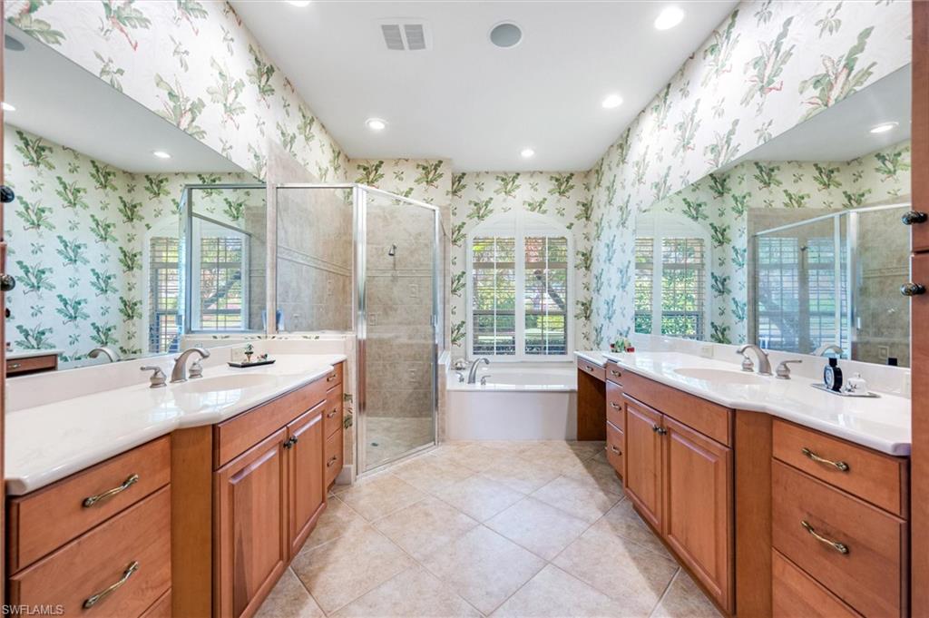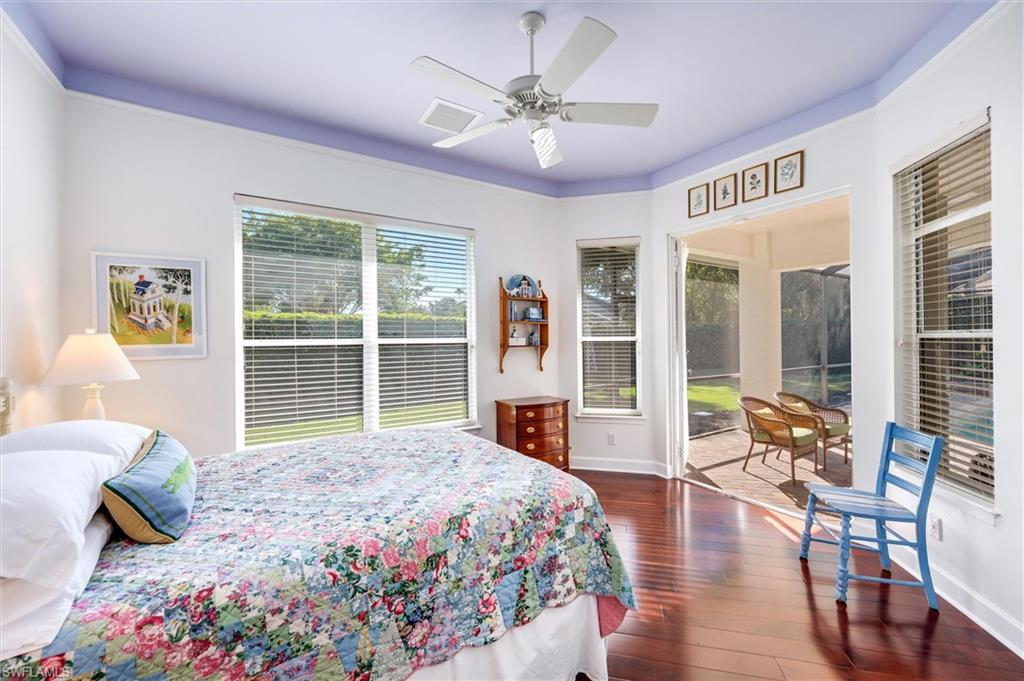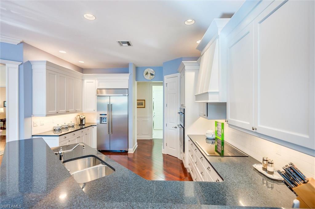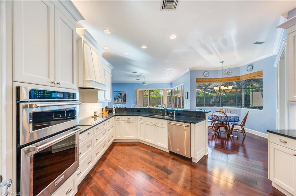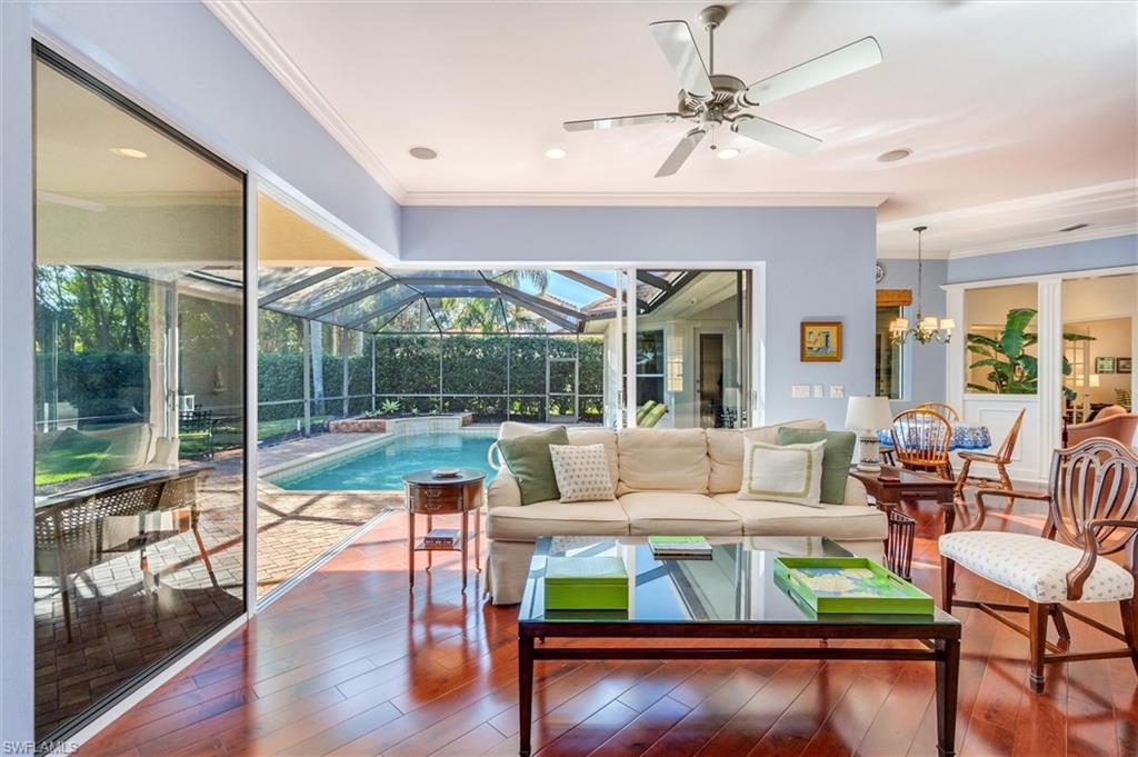 Banyan Woods, A Best-Kept Secret. Naples meets Palm Beach in Banyan Woods. Timeless sophistication. Impeccable details and design and quality craftsmanship. Centrally located within Naples. Fabulous curb appeal with attractive landscaping. An abundance of natural light flows into this 2945 under a/c SF home with a split open floor plan. Striking walnut hardwood flooring throughout, custom moldings, remodeled kitchen with custom white wood cabinetry and hood. The spacious kitchen is laid out perfectly and features quartz countertops with a marble backsplash, a 42” extra wide refrigerator and Kitchen Aid stainless steel appliances, large pantry, and plenty of space for a coffee bar and more. The floorplan offers 4 generous size bedrooms, study, 3 full baths, morning nook and great room, plus formal living, and dining areas. The ideal outdoor space with private south facing heated pool boasts a new pool heater (2025), large pool deck, two undercover patios, and a yard surrounded by lush hedges in an X Zone. It is a pleasure to show this pristine and well-maintained home with everything in top-notch working condition - two HVAC’s, water heater, irrigation system with new timers and rain gauges, updated ceiling fans, epoxy garage flooring, Hunter Douglas window treatments, and plantation shutters. Perfectly situated with views of the beautifully landscaped community, in a quiet location near the clubhouse with fitness center. Banyan Woods is a gated community with 100 lushly landscaped estate homes and 88 carriage homes. Located south of Pine Ridge Road just north of Grey Oaks Golf and Country Club and west of Kensington Country Club, and all the convenience shopping one could want is right outside the back gate. This desirable and convenient location is only minutes to downtown and Fifth Ave for world-class dining and shopping, THE MERCATO for nightlife, white sandy beaches, hospitals, public and private schools and more! You will want to see this gracious and lovely home for yourself so don't hesitate! Mrs. Clean owns this home...you CAN eat off the kitchen floor!