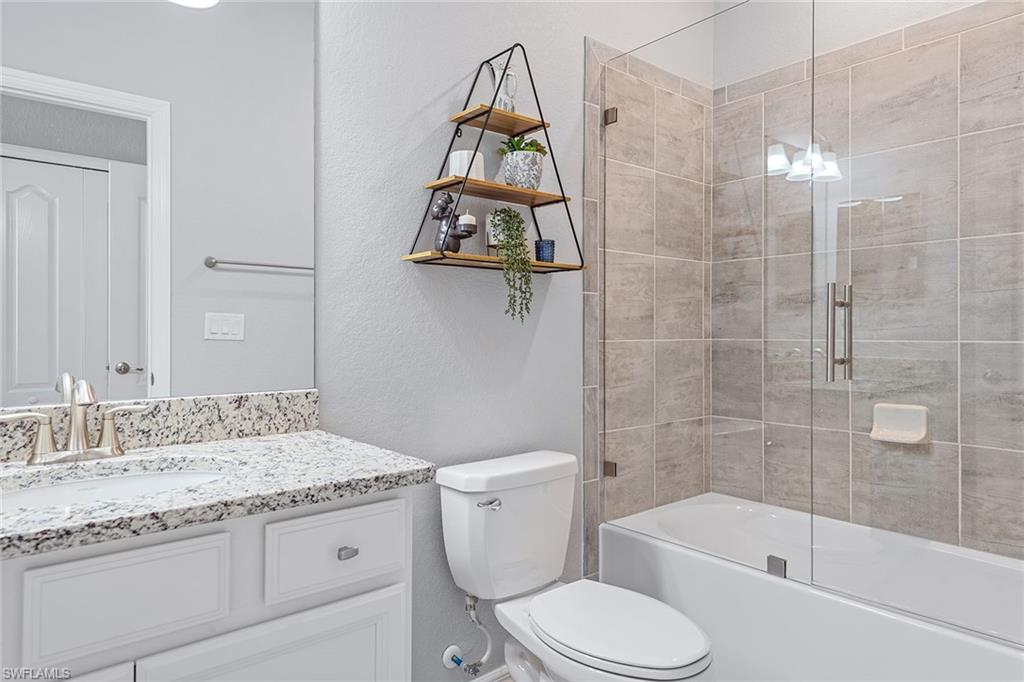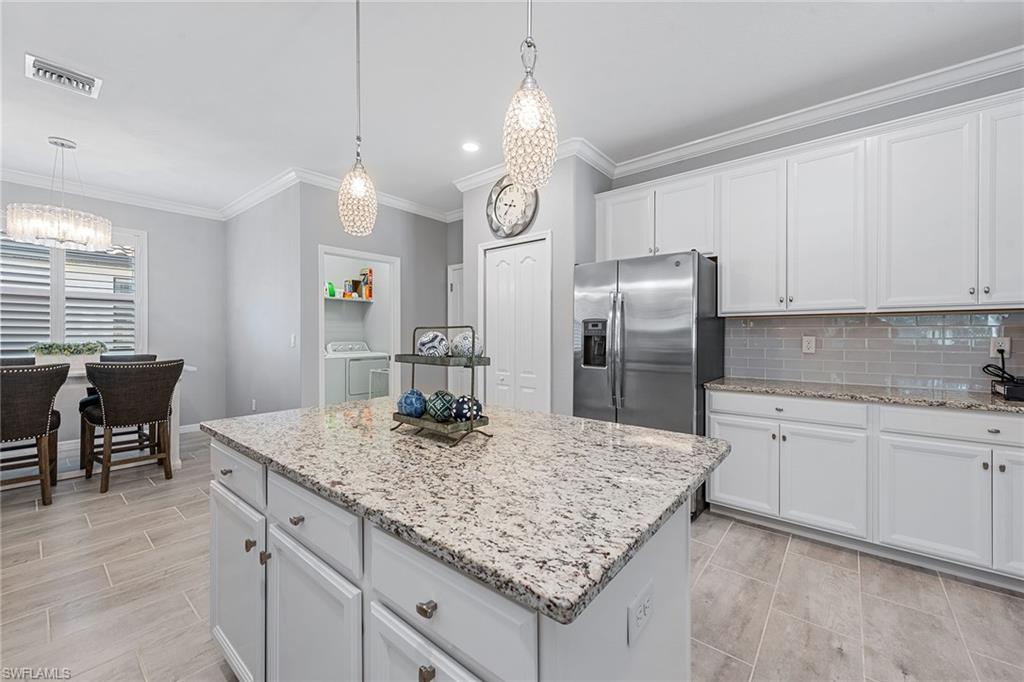 Welcome Home! A perfect piece of paradise on a private preserve lot. Whether you're seeking a retirement haven, a second home retreat, or a A+ top-tier school district for your family, Bent Creek offers it all! This lovely villa features 3 bedrooms, 2 bathrooms, & a 2-car garage w/ numerous upgrades. Step into a beautifully designed space featuring modern decor and tasteful finishes including tile flooring throughout, making it very light inside. The kitchen boasts stainless steel appliances, granite countertops, a custom backsplash and upgraded white cabinets. Enjoy the spacious master suite offering a serene retreat with a luxurious en-suite bathroom and large walk-in closet. Amazing amenities which include a resort style pool, spa, fitness center, bocce courts, lighted pickleball & tennis courts, firepit area, fitness center, clubhouse with billiards & catering kitchen. Low HOA and NO CDD! Located close to Founders Square for shopping and dining in North Naples.