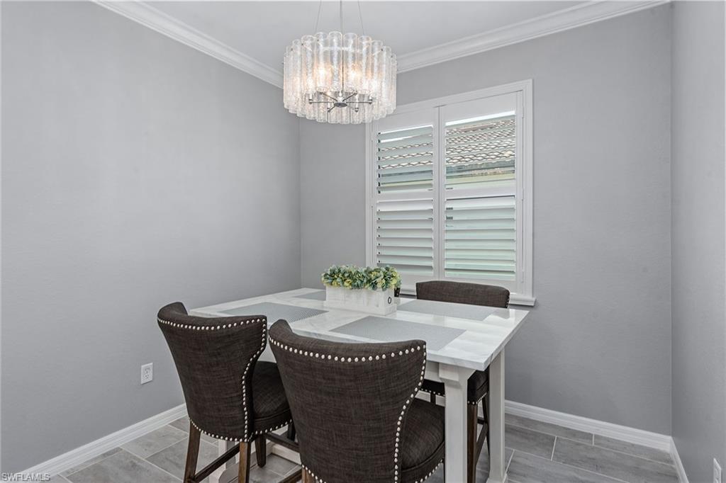 Are you searching for a private, resort-style retreat in North Naples with sunset views and lush tropical ambiance? This stunning four-bedroom, three-bath residence in Bent Creek Preserve offers western exposure, tranquil privacy, and beautifully manicured landscaping surrounding a screened-in lanai and heated pool, the ideal perfect setting for relaxed luxury living. Go inside to a bright open floor plan featuring plank tile flooring in the main living areas, crown molding and white plantation shutters that create a cohesive and upscale interior. The kitchen is designed to impress with granite countertops, a glass tile backsplash, white shaker-style cabinetry with soft-close drawers, a large island with pendant lighting and GE stainless steel appliances. A spacious pantry, breakfast area and formal dining space with statement lighting complete this inviting gathering area. The living room blends style and comfort with custom wall trim, a designer chandelier, lanai access, and a stunning brick accent wall that elevates the ambiance. Outside, the covered outdoor living area features a modern ceiling fan, brick paver flooring and a fully equipped outdoor kitchen with a built-in gas grill, hood and beverage cooler, all overlooking lush landscaping for total privacy. The owner’s suite is a peaceful sanctuary with a large walk-in closet featuring custom-built-ins and a spa-inspired en-suite bath offering a dual granite sink vanity, frameless glass walk-in shower and a separate soaking tub. Two guest bedrooms share a well-appointed full bath with a shower-tub combination, while the fourth bedroom features its en-suite bath, making it ideal for guests or flexible use as an office or private retreat. The laundry room is equipped with overhead shelving and a GE washer and dryer, and the three-car garage includes durable epoxy flooring. Residents of Bent Creek Preserve enjoy access to award-winning amenities, including a resort-style pool, lakeside clubhouse, state-of-the-art fitness center with steam rooms, Har-Tru tennis courts, pickleball, bocce, basketball and a kids’ playground. With gated access directly into Founders Square, you're just moments from dining, shopping and medical offices. Mercato, Naples white sandy beaches and top-rated schools are all within easy reach, offering the ideal blend of convenience and lifestyle. Schedule your private showing today to experience the best of North Naples living.