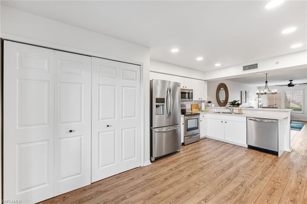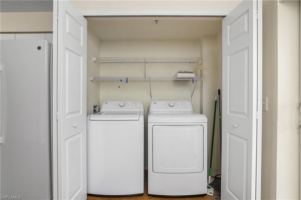LOWEST PRICED unit with a GARAGE in Bermuda Palms!! EXQUISITE 2bed+den lake view condo with 1-car garage in highly-desired North Naples location. The den could easily serve as a third bedroom. Meticulously maintained by its only owner, this second floor condominium truly shows like a model home! The Seller spared no detail with the stunning kitchen renovation. Boasting quarts countertops, white shaker soft-close cabinetry, oversized breakfast far, island with great storage space, a fabulous coffee/beverage bar area, built-in wine storage, convenient pop up electrical outlets and much more. BRAND NEW A/C SYSTEM (Nov. 2025)!! A spacious, NEWER closet system in the primary bedroom was completed by Inspired Closets (Dec. 2023). The vinyl laminate flooring in the unit was installed approx. 3 yrs. ago. Roof is NEW as of 2023. Another perk is the detached 1-car garage featuring Epoxy flooring (Dec. 2023) and great attic space perfect for extra storage. Additionally, the unit conveniently has an assigned parking spot. Located steps away from Seed to Table, shopping, dining, I-75 and less than 7mi. from our Famous White Sand Beaches! This lovely unit is guaranteed to make you feel right at HOME! Very easy to show.