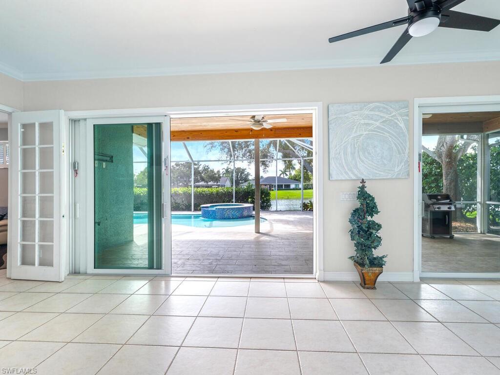 Rarely Available Lakefront Gem in Boca Palms! Experience breathtaking sunsets and sparkling lake views from this beautifully maintained southern-exposure home, perfectly situated in the highly sought-after Boca Palms community. This fabulous 3-bedroom + den, 2-bath residence blends comfort, style, and peace of mind with thoughtful upgrades throughout. Enjoy the benefits of a newer roof (2019), a custom-designed pool and spa (2017), plantation shutters, and hurricane-impact rated exterior doors for ultimate security and convenience.The open-concept kitchen is a chef’s dream — complete with granite countertops, tile backsplash, stainless steel appliances, and a sunny eat-in dining area perfect for casual gatherings.The spacious primary suite offers a serene retreat featuring dual walk-in closets and a spa-style bathroom with a soaking tub, frameless glass shower, and elegant granite finishes. Two additional bedrooms include built-in closets, while the den provides a versatile space ideal for a home office or guest room. Step outside to your private outdoor oasis, where a sparkling pool and spa overlook the tranquil lake — the perfect setting to relax, entertain, and enjoy Florida’s natural beauty. Boca Palms residents enjoy resort-style amenities, including a community pool, clubhouse, pickleball, and tennis courts — all just steps away. Located only five minutes from Mercato’s upscale shopping, dining, and nightlife, as well as Vanderbilt Beach and Wiggins Pass State Park, this home truly captures the best of Naples living. Zoned for top-rated schools (Pelican Marsh Elementary, North Naples Middle, and Aubrey Rogers High School), this property offers the perfect blend of location, lifestyle, and luxury. Don’t miss your chance to own this exceptional lakefront home — schedule your private showing today!