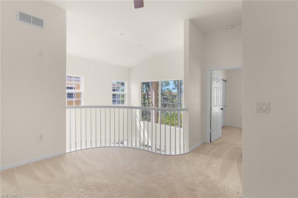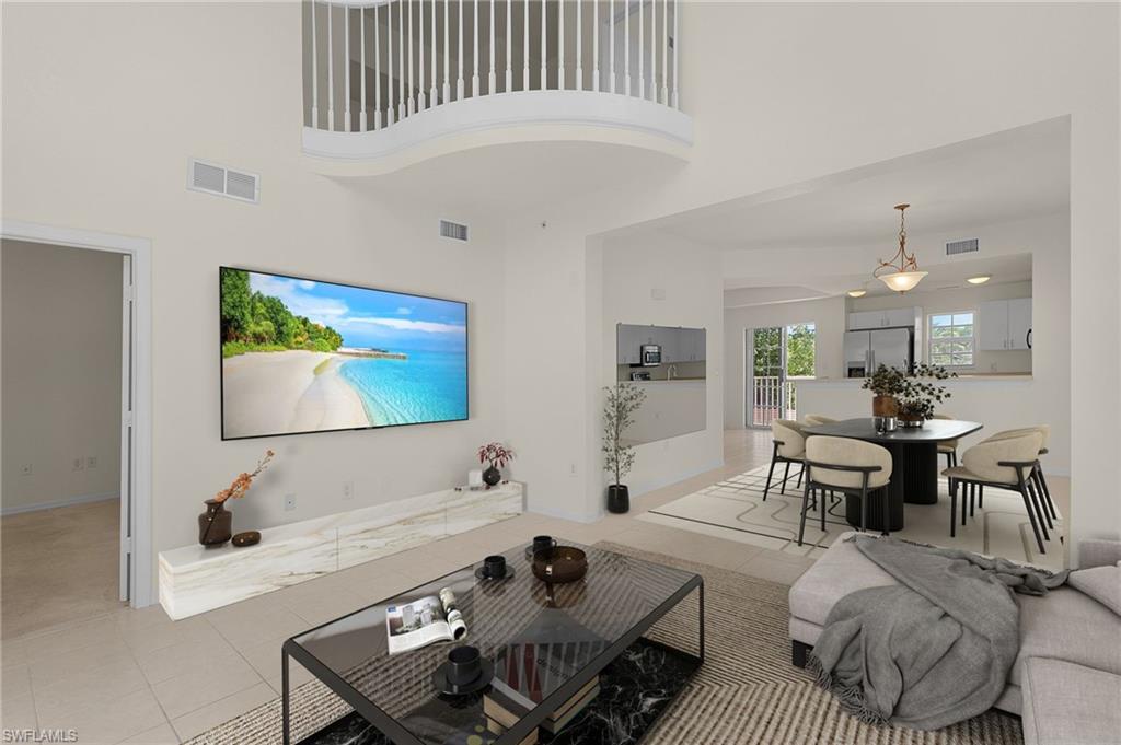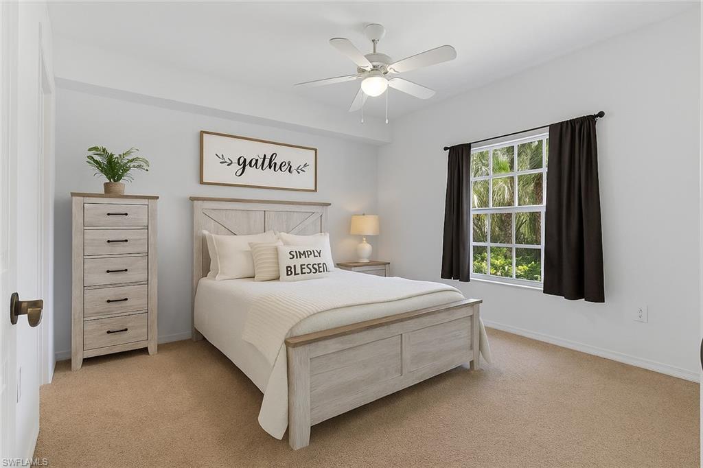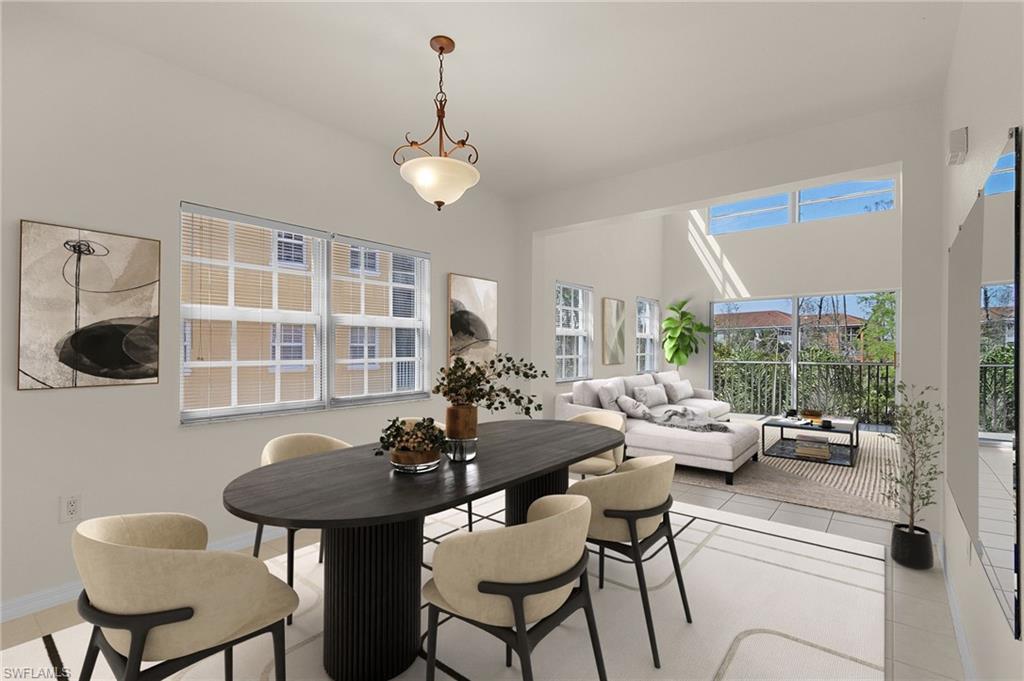 Immaculate, fully remodeled, and ready for immediate occupancy — this stunning end-unit two-story condo combines privacy, elegance, and an unbeatable Naples location. Step inside to soaring ceilings that fill the family and dining rooms with natural light through a dramatic picture window. The open layout is enhanced by attractive neutral tile, fresh paint, and plantation shutters throughout. The kitchen is beautifully updated with newer stainless steel appliances and granite counters that continue into both bathrooms for a seamless, designer look. The spacious primary suite is conveniently located on the first floor, while upstairs you’ll find a large loft that’s ideal as a media room, office, gym, or play area. Every bedroom is generously sized and can accommodate a king-size bed. Enjoy peaceful preserve views from the screened lanai, perfect for outdoor dining or relaxing, with a convenient door for pet walks. Additional features include a laundry room with built-in cabinetry and a detached one-car garage. The community offers a clubhouse with fitness center and social room, plus a beautiful pool and hot tub located right next to the building. You’ll love the location — just a short walk to the Naples Botanical Garden and the USOP National Pickleball Center, and only minutes to Tin City, 5th Avenue South, and Naples’ gorgeous beaches. This immaculate condo truly has it all — space, style, and a prime Naples lifestyle.
