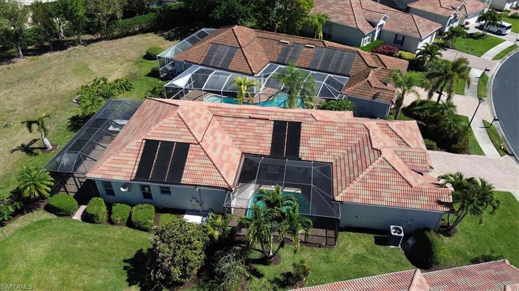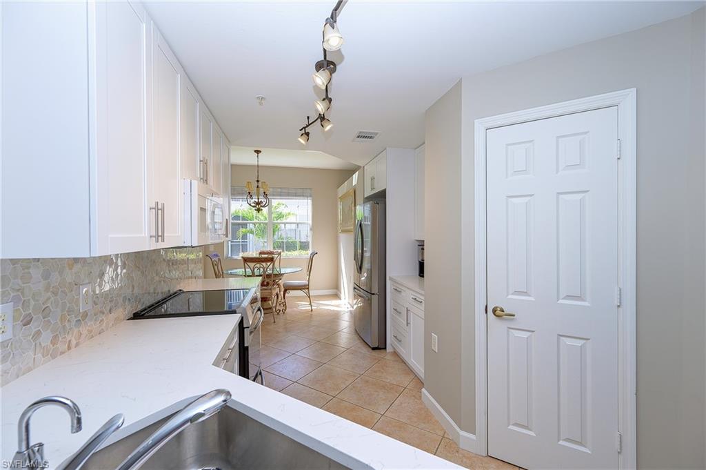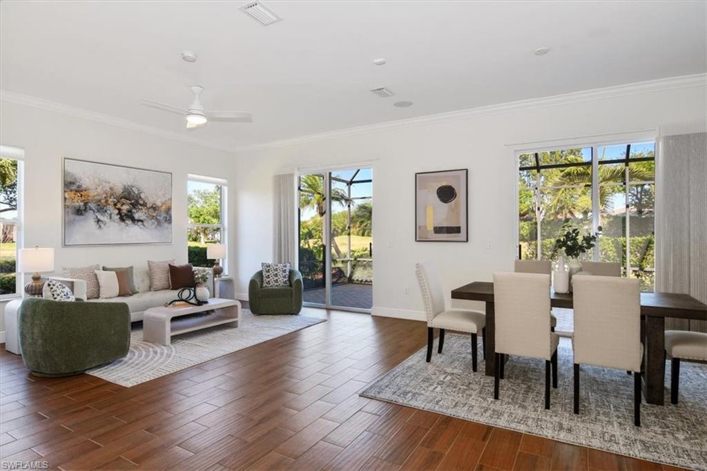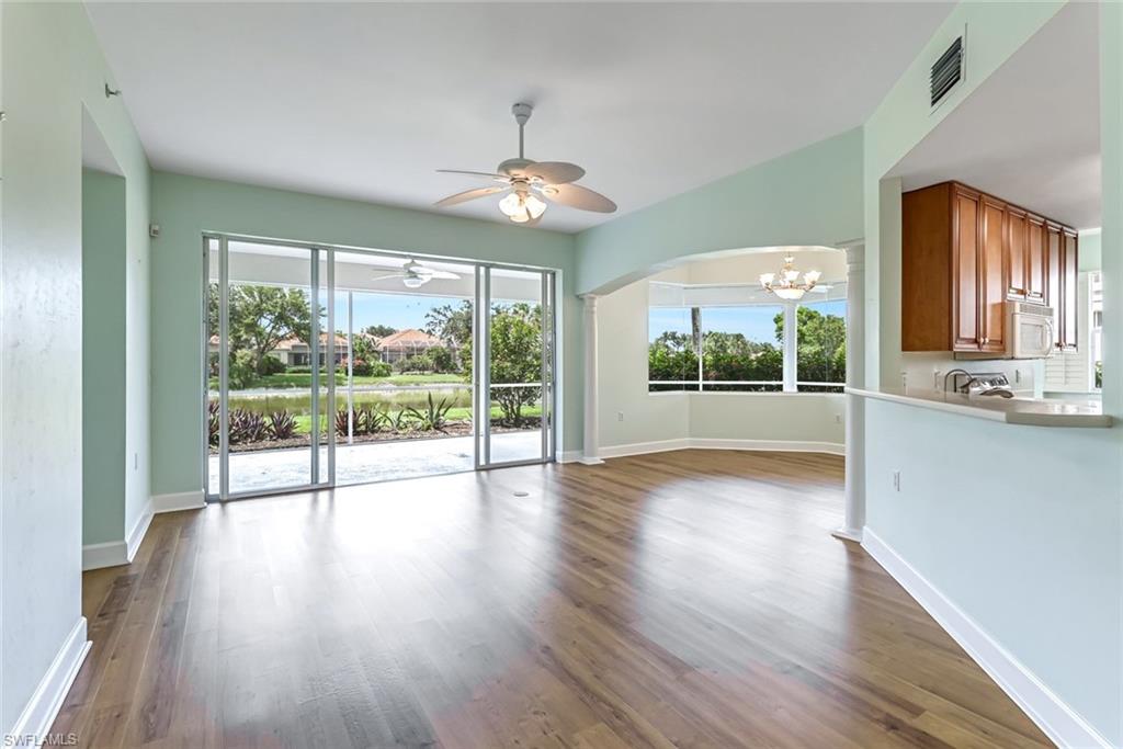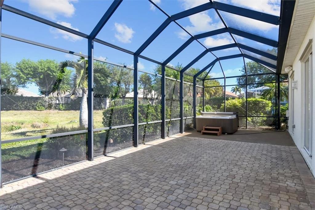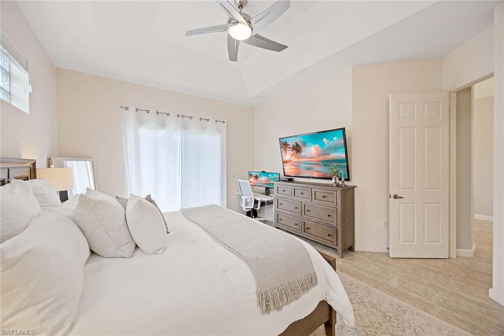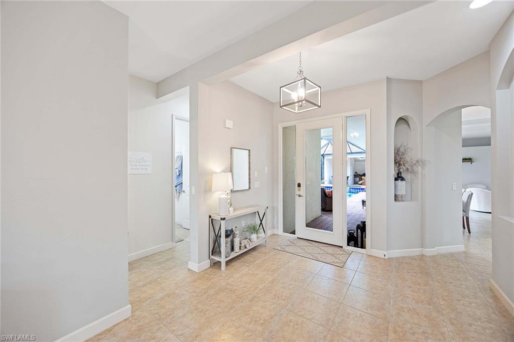 This impeccably updated and rarely available single-family pool home on a private corner lot awaits in the heart of North Naples’ highly sought-after Bridgewater Bay. Showcasing soaring 14 ft. tray ceilings, this light-filled residence impresses with plantation shutters throughout and an open-concept layout that flows effortlessly from the spacious living area—accented by an oversized designer fan—to the dining room and kitchen. The chef-inspired kitchen gleams with 2022 stainless KitchenAid appliances, white cabinetry, granite countertops, and a glass-tile backsplash. With thoughtful upgrades such as a tile roof (2021), luxury vinyl plank flooring in living areas (2022), modern lighting throughout (2022), a full exterior repaint (2022), and a new A/C system (2022), this home offers style and substance in equal measure. The laundry room is equipped with built-in cabinetry, a utility sink, and LG front-load washer/dryer for convenience. Unwind in your heated pool and spa, surrounded by mature tropical landscaping—towering palms, lush oaks, and vibrant greenery. The 2.5-car side-loading garage with an extended paver driveway adds curb appeal and ample space for vehicles or storage. Additional peace of mind includes a security system and hardwired Ring floodlight cameras and doorbell (2022). Located in Flood Zone X so no flood insurance is required, this home never lost power or sustained damage during Hurricane Ian. Bridgewater Bay is a resort-style gated community offering unmatched amenities, featuring two pools (resort-style and lap), tennis, pickleball, bocce, and basketball courts, a clubhouse with fitness center and social calendar, a playground, and tranquil lakes. Two convenient access points on Orange Blossom Drive and Livingston Road provide effortless connectivity. Perfectly positioned just 3 miles to Naples beaches, 2 miles to Mercato, and close to I-75, this home combines location, lifestyle, and luxury in one perfect package.