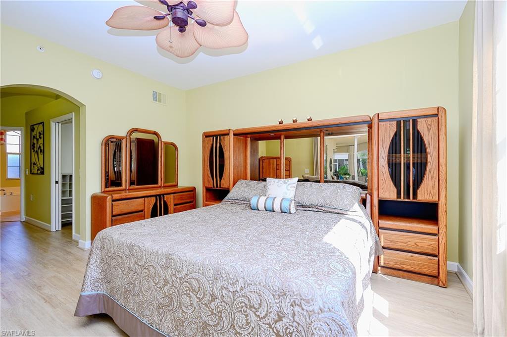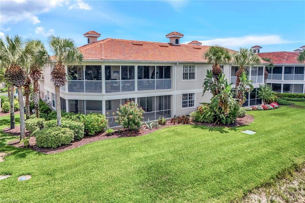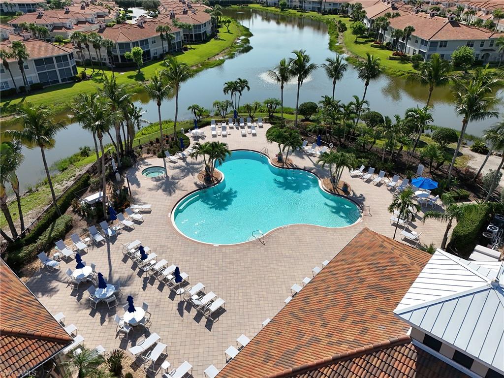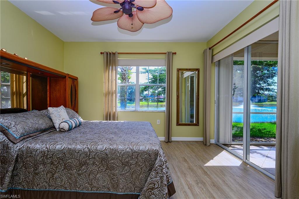 WELCOME TO RARELY AVAILABLE!!!!!!! AND NOW REDUCED!!!!!!With an outstanding lake view, and only steps to the massive Bridgewater Bay clubhouse, this first floor unit is waiting for the most discriminating of buyers. Spacious and free flowing, this 3 bedroom 2 ½ bath retreat is light and bright and has a huge 33-foot wrap around lanai. The eat in kitchen features not only a pantry, but many spacious pecan color cabinets accented by the Corian countertops, with white and stainless-steel appliances. Stunning plank flooring throughout, bathrooms are tile and the bedrooms are carpeted. The very private Master Suite has 2 large closets, and an ensuite bath with tub, shower, and double sinks. The bedroom area itself features plantation shutters, as does the rest of this home, creating cozy privacy to relax at the end of your day. Mango Bay is located on a cul-de-sac street with very little traffic. Bridgewater Bay is located just off Orange Blossom in North Naples, with convenient access to Mercato and Naples world class beaches. Bridgewater Bay offers pickleball, tennis, bocce ball, and many social events. A lively community you will not want to skip! This is a Spectacular Condo, and it can be yours for the asking!!!