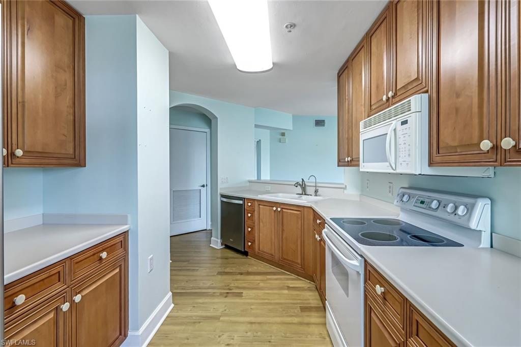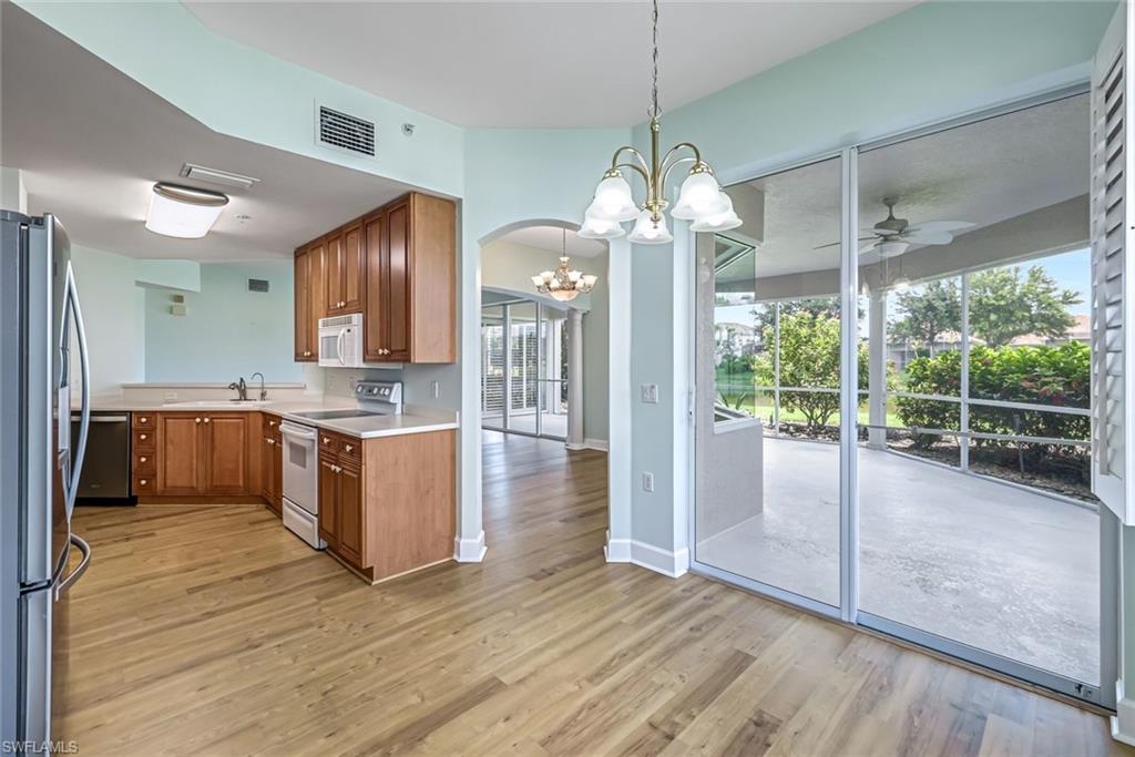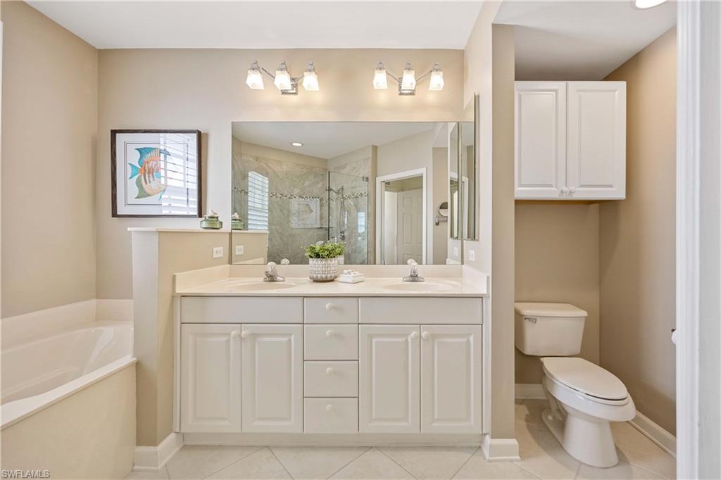 Lakefront Living in North Naples! This beautifully appointed first-floor condo in Bridgewater Bay offers serene lake views and unbeatable access to resort-style amenities. This 3-bedroom, 2.5-bath residence combines comfort, space, and convenience in one of North Naples' most sought-after communities. The expansive, light-filled floor plan opens to a oversized wraparound lanai—perfect for morning coffee or relaxing sunsets. The eat-in kitchen boasts Bright Cabinetry, Corian Countertops, pantry storage, and a full suite of Stainless-steel Appliances. Tile flooring runs throughout the Main Living areas and Bathrooms, with new laminate flooring in the bedrooms. The spacious primary suite is a private retreat, complete with two large closets and an ensuite bath featuring dual vanities, soaking tub, and a separate shower. Bridgewater Bay offers a vibrant lifestyle with amenities including pickleball, tennis, bocce, a resort pool, fitness center, and a calendar full of social events. Just minutes from Mercato, sought after top-rated school district, dining, shopping, and Naples’ white-sand beaches. Don't miss this opportunity to enjoy year-round comfort and community in one of Naples’ most desirable gated neighborhoods. Property comes with a One Year Home Warranty and Professional Cleaning at Closing! *Some images have been virtually staged to serve as an example of potential furniture and decor placement.