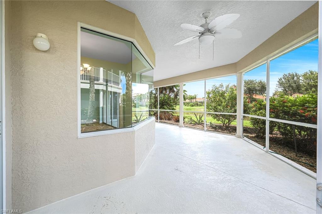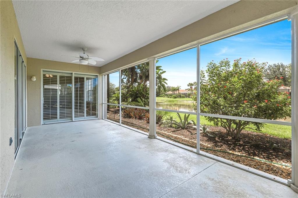 Forget all those run-of-the-mill, cookie cutter condos! This bright and spacious home features a unique 33 foot, screened-in, wrap-around lanai! Enjoy your morning coffee with a peaceful lake and fountain view, and in the warmth of the southeast sun! With 1767 sq. ft. under air, this rarely available 1st floor coach unit features 3 bedrooms, 2 ½ bathrooms, and a 2-car garage. The kitchen is nicely updated with quartz counter tops, large sink, attractive backsplash and newer appliances. Bridgewater Bay is an amenity-rich community with a beautiful clubhouse, resort-style pool, spa, separate lap pool, tennis, pickleball, bocce, fitness room, sauna and more! Neighbors will easily become lifetime friends as they share a full calendar of social events each season. The North Naples location, well west of I-75, is ideal for easy access to a multitude of restaurants, world-class shopping and the beautiful Naples beaches! Schedule your private tour today and experience the unique charm of this exceptional condo!