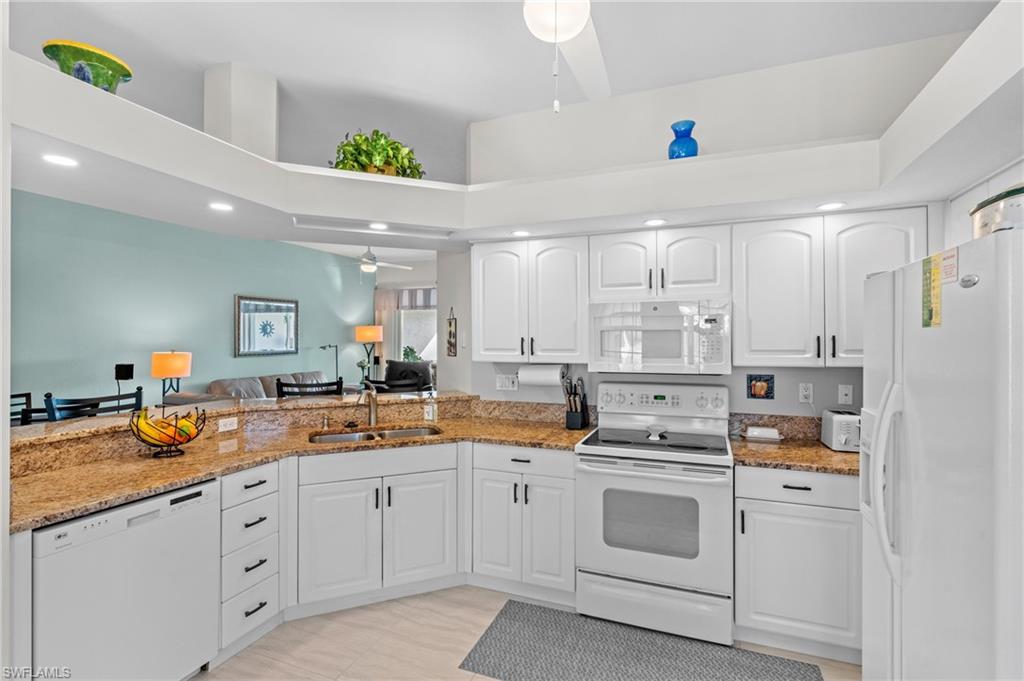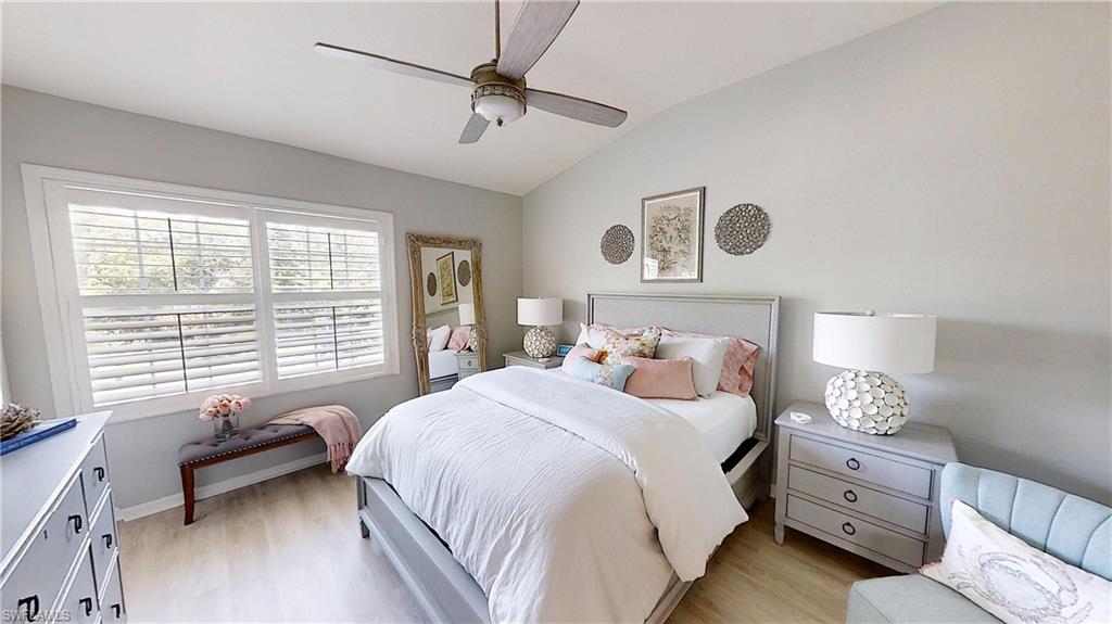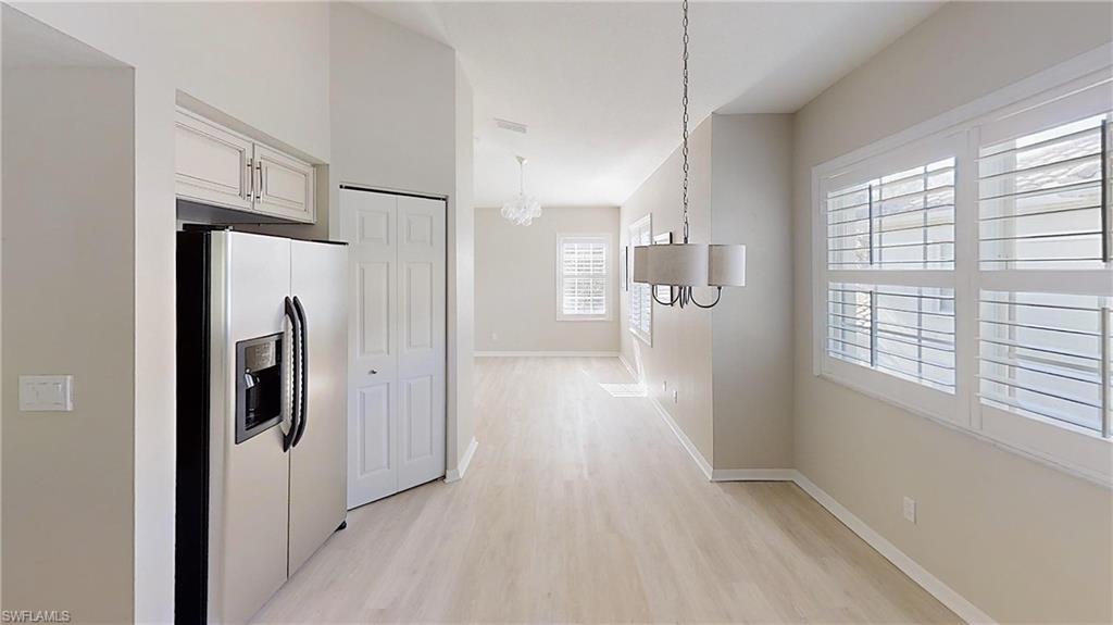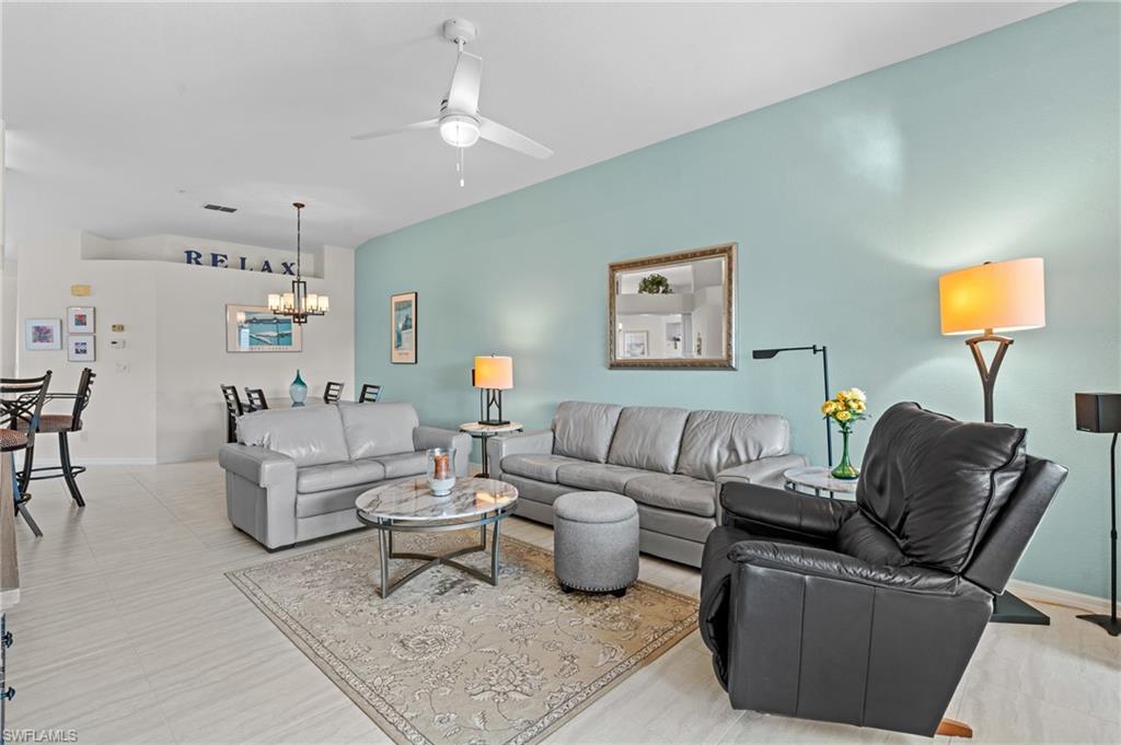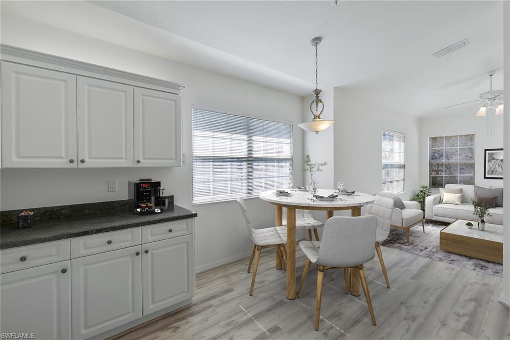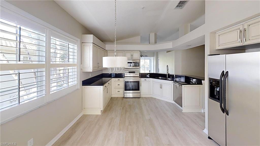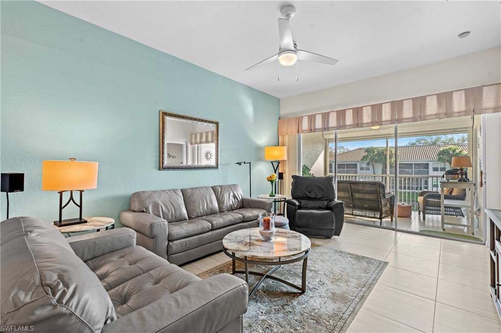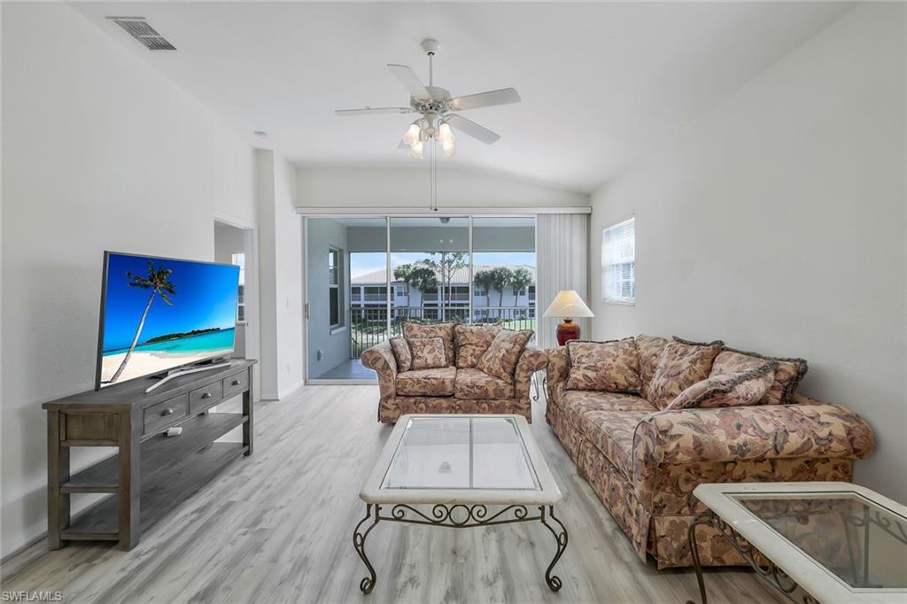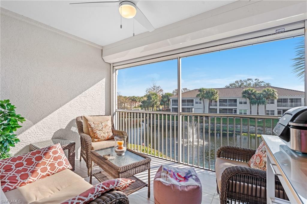 TURNKEY CONDO WITH STUNNING LAKE VIEWS IN PRIME LOCATION! Located in North Naples, just 10 minutes from Vanderbilt Beach, Mercato and the municipal main library. Top shopping and dining destinations close by. This meticulously maintained 2-bedroom, 2-bath condo offers serene water views with fountain, perfect for enjoying sunrises from the lanai. Light, bright, and tastefully updated, the home features a renovated kitchen and new flooring throughout. Vaulted ceilings add to the spacious, airy feel. Recent updates include modern lighting, ceiling fans, accent walls, and fresh paint. Move-in ready—being sold fully turnkey. Enjoy fantastic community amenities including a library, fitness center, two pools with a lap pool and spa, tennis courts, and a vibrant social scene with organized games, live music, dancing, and group outings. Buildings received new roofs in 2019 and were repainted in 2021. Whether you're seeking a seasonal retreat or full-time residence, this condo offers style, comfort, and convenience at an excellent value. This property qualifies for a 1% lender incentive—ask for details!