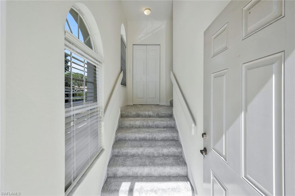 CALUSA BAY - LIGHT, BRIGHT AND MOVE-IN READY UPSTAIRS END UNIT: Welcome to this very well maintained second-floor end-unit condo featuring 2 bedrooms, a den and 2 bathrooms. With an open floor plan and an abundance of natural light, this condo offers a spacious and inviting atmosphere. Newly installed luxury vinyl flooring flows throughout, complemented by soft, neutral carpet on the stairway for added comfort. In addition, the A/C was replaced two years ago. This well-maintained community has undergone recent upgrades, including new roofs in 2019, freshly painted buildings in a modern off-white hue in 2021, updated signage, and all-new lantern-style lighting for a refreshed and contemporary look in 2021. The Fitness Center has also been redone with a variety of cardio and strength-training equipment. It also features a group exercise area with a ballet bar. It is a state-of-the-art community fitness center. In addition, the listing includes a covered carport space. There are additional parking spaces available for your guests. Calusa Bay's location is just minutes from the Waterside Shoppes and Mercato, with their fine-dining restaurants and upscale shopping, Whole Foods, Vanderbilt Beach, The Ritz-Carlton, LaPlaya and The Turtle Club. It is also just a short drive to the vibrant 5th Avenue and Third Street districts. Don't miss the opportunity to make this spotlessly clean and nicely updated condo your new vacation home or permanent home. This condo would also be a great investment property. The HOA fee covers everything but electricity.