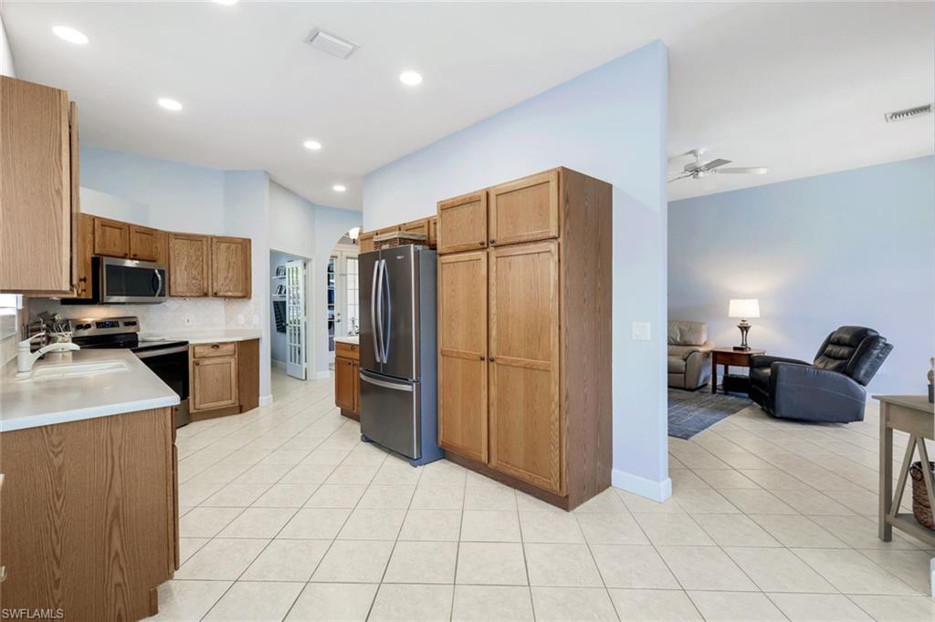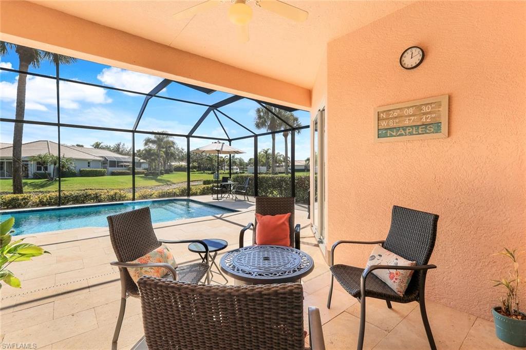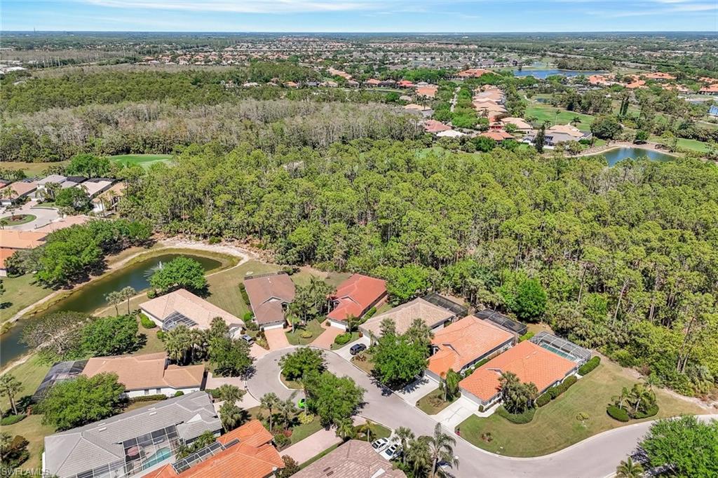 Come see this single family home with large pool & spa nestled on a cul-de-sac in the desirable North Naples community of Carlton Lakes. Enjoy relaxing on your private back lanai surrounded by preserve views. This home features 3 spacious bedrooms and open concept floor plan. You'll enjoy volume ceilings, fresh paint, French cut travertine flooring throughout living area, updated lighting fixtures, plantation shutters and new carpet in bedrooms. The kitchen features white cabinetry with Corian counters, an eat in kitchen nook and brand new stove. This home also has a newer roof that was replaced in 2019, new hot water heater replaced 2024 and hurricane protection for added peace of mind. Carlton Lakes amenities include bocce courts, tennis courts, fishing pier, tot lot, club house with 60 ft lap pool and hot tub. Enjoy great walkability to Seed To Table as well as The Strand Shopping Center. You are close to shopping, dining and 6 miles to Naples gorgeous white sand beaches. A 1 year Home Warranty for the new Buyer is provided at closing.
