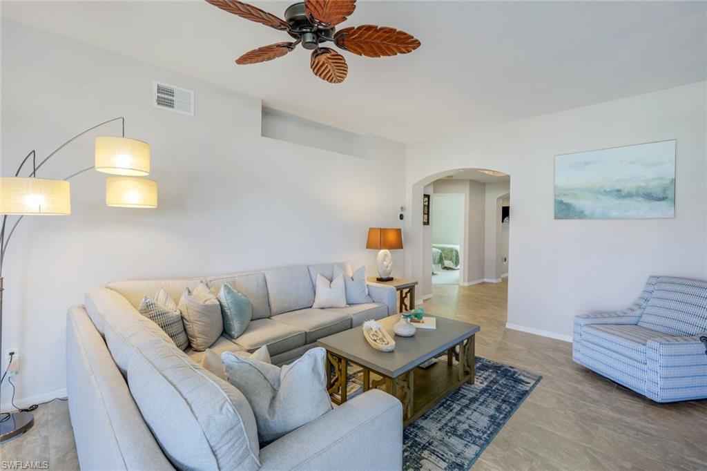 Gorgeous 2 plus den villa home nestled in the vibrant town of Naples, this exquisite property offers an unparalleled lifestyle with a host of community amenities including tennis and bocce courts, a clubhouse featuring a 60-ft lap pool and hot tub, a fishing pier, and a tot lot for endless enjoyment. Revel in the beauty of a preserve view from your expansive screened lanai, the perfect setting for relaxation or entertaining. The home boasts a fully updated kitchen showcasing white cabinetry, stunning quartz counters with a double ogee edge, complemented by a Cafe Appliance package in matte white with brushed bronze accents, along with brushed bronze hardware. Enhance your living experience with updated laminate wood flooring, updated lighting fixtures throughout and a brick-paved driveway surrounded by meticulously updated landscaping that adds exceptional curb appeal. Full hurricane protection ensures peace of mind. The den can easily be converted into a 3rd bedroom by adding the doors back on which the seller has available. Situated within walking distance to Seed to Table and The Strand shopping plaza, and just 6 miles from Naples’ pristine white sand beaches, this residence offers convenience to premier shopping, dining, and entertainment options, making it a perfect haven for those seeking the best of Florida living.