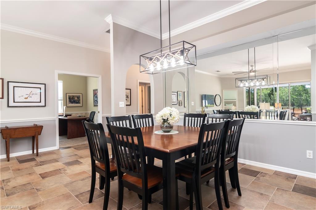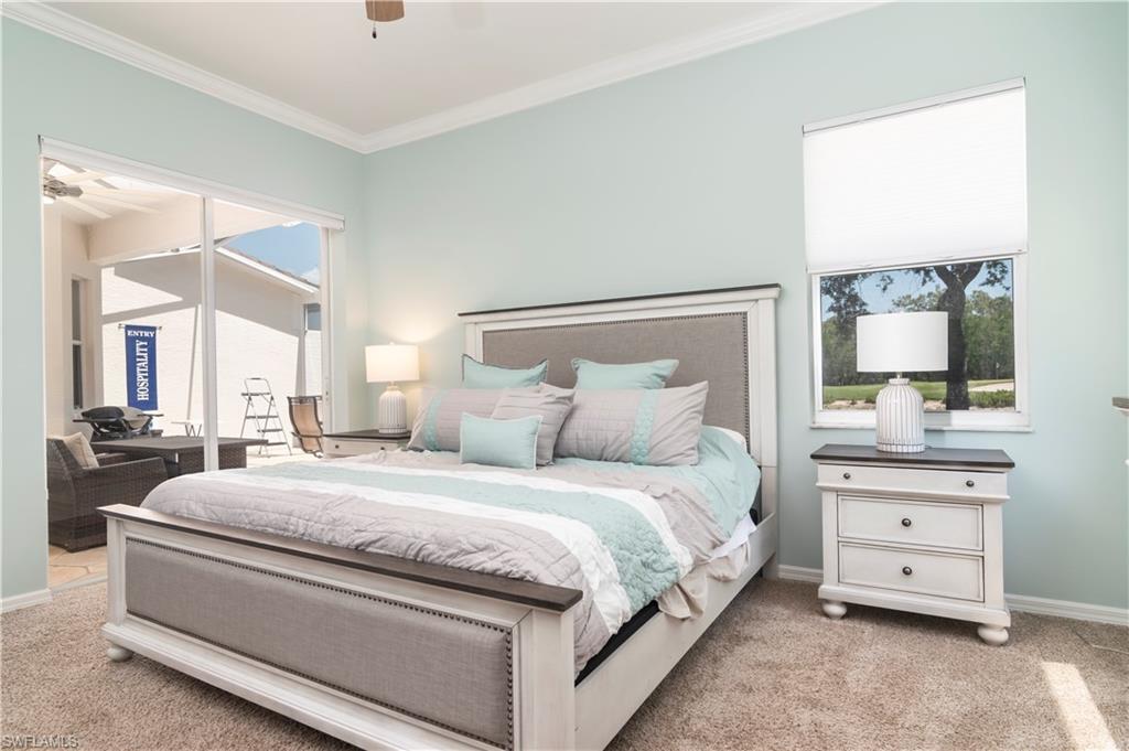 No Stairs! Enjoy single level living in one of Cedar Hammock's most desirable locations. This furnished first-floor Barrington model offers 2 bedrooms plus a den, 2 baths, and a private one-car garage. Southern exposure floods the home with natural light, creating a bright and welcoming atmosphere. Enjoy two screened lanais: a front entrance perfect for morning coffee and a rear lanai overlooking a serene golf course, preserve, and water views. The home features a remodeled kitchen, luxury vinyl CoreTech flooring in the main living area and den, and crown molding throughout. Recent upgrades include HVAC (4 years old), water heater (3 years old), impact glass windows, and manual shutters for peace of mind. Cedar Hammock Golf & Country Club is a premier bundled golf community featuring a Gordon Lewis and Jed Azinger-designed 18-hole championship course. This 400-acre development preserves over 50% as natural areas, creating a tranquil setting. Resort-style amenities include a newly renovated clubhouse with expanded veranda with fire pit seating, state-of-the-art wellness center, outdoor tiki bar, heated pools, and lighted Har-Tru tennis courts. Ideally located just minutes from Naples' white sugar sand beaches, Fifth Avenue fine dining, and Historic Third Street boutique shopping.