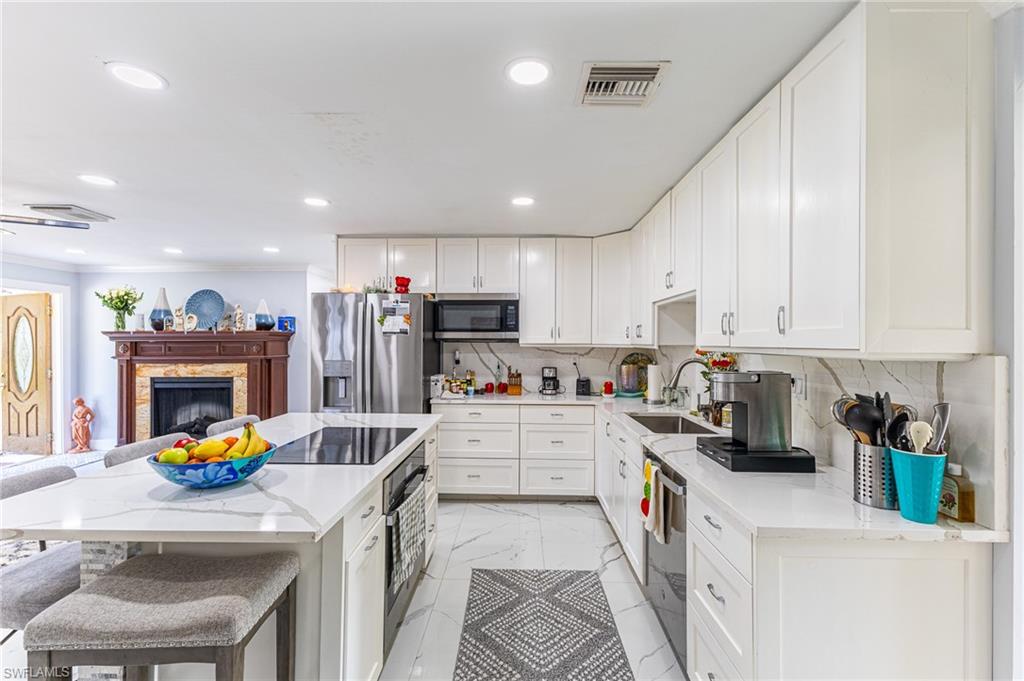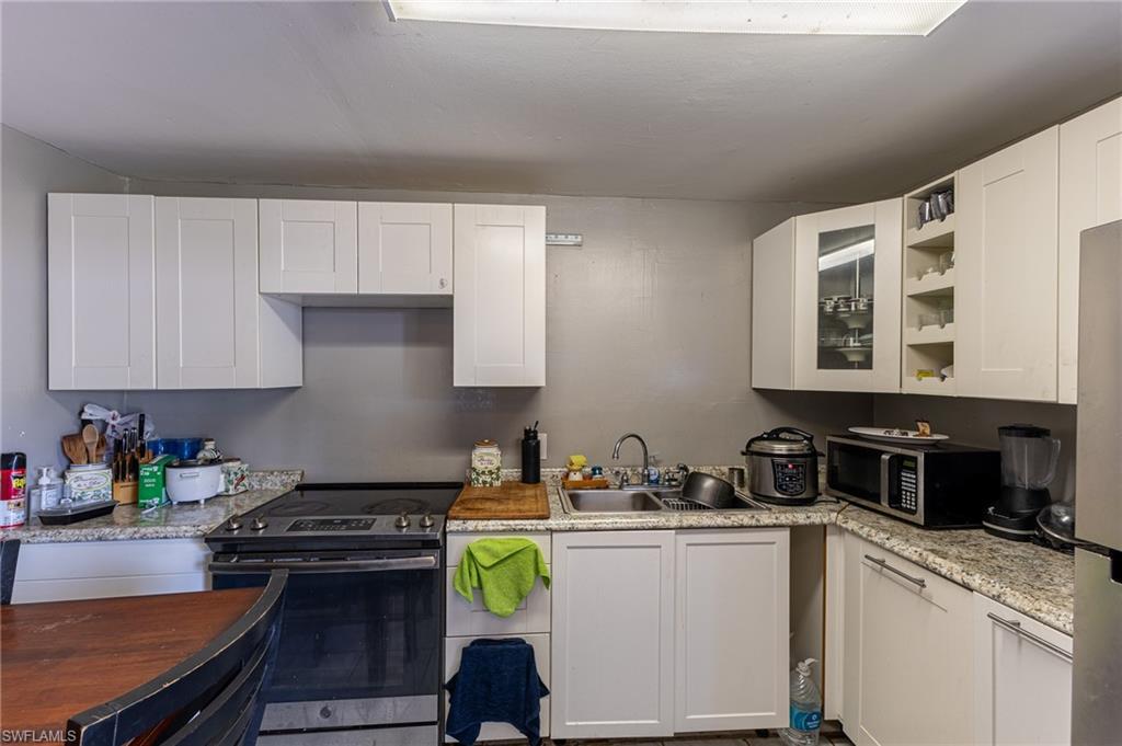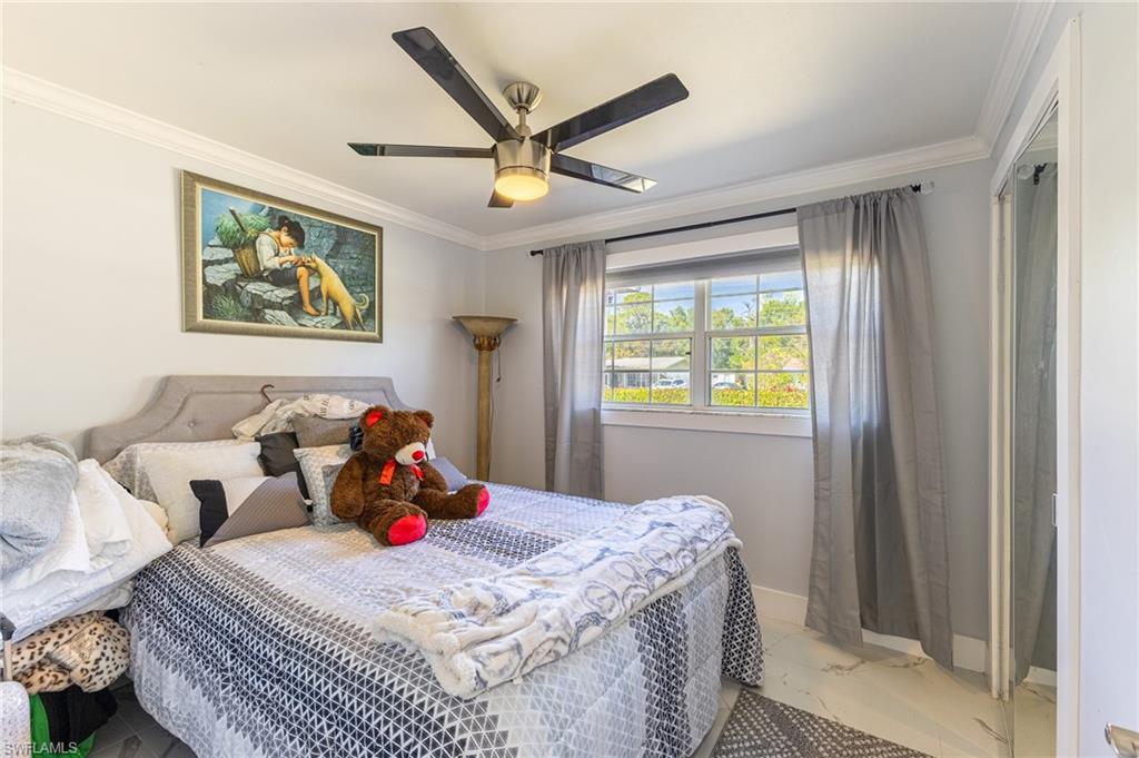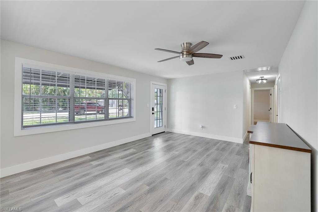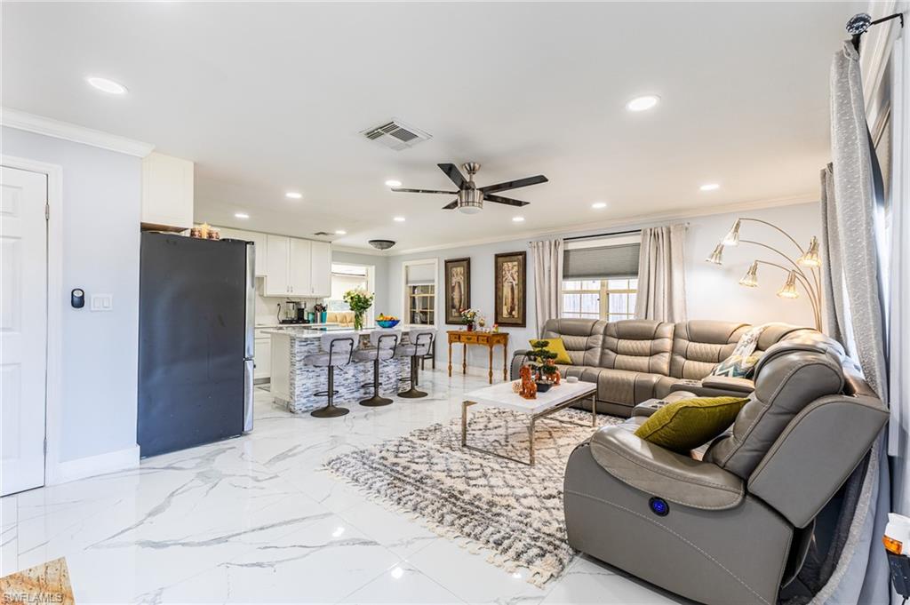 MOTIVATED SELLER WILL CONTRIBUTE UP TO $5,000 TOWARDS CLOSING COSTS! This fully remodeled 3B/1B home has been thoughtfully updated with major improvements. Roof & electrical systems were updated in 2022 & the A/C in 2024. Open concept living space with soaring open beam ceiling & a sleek gourmet kitchen with custom cabinetry, quartz counter-top & a full suite of smart Samsung Appliances for energy efficient living & cooking. Title floors throughout & update bathrooms. The enclosed carport has been transformed into a stylish additional bedroom & bathroom for guest room or a private home office. Situated on a generous 9,148 sq ft lot offering both space & potential for pool or extension of the home. Conveniently located near Naples Beaches, Bayshore Arts District, 5th Ave & Airport. No HOA. Sold AS-IS condition. Cash or Conventional loan.