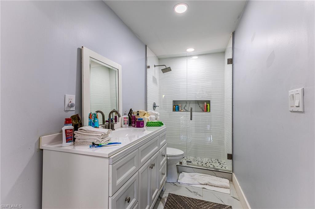 Welcome to this beautifully remodeled 3-bedroom, 2-bathroom home with a guest house—just 10 minutes from the stunning beaches of Naples and the charming shops and restaurants of 5th Avenue downtown. Step inside and experience an open, modern floor plan featuring a spacious living area, a gourmet kitchen with stainless steel appliances, and a dining space perfect for hosting. Recent upgrades include a 2023 water heater, a salt filtration system for water, updated tile flooring (2023), and energy-saving SOLAR PANELS! The private guest house in the backyard offers a fantastic income opportunity, as it’s currently rented for $1,500/month—and the tenant would love to stay! Whether you choose to maintain the rental or use it for visiting family and friends, this extra space is an incredible perk. The backyard is an entertainer’s dream, offering a peaceful retreat for gatherings or quiet evenings under the stars. This rare find blends comfort, style, and investment potential in one prime location! Don’t miss your chance—schedule a showing today!