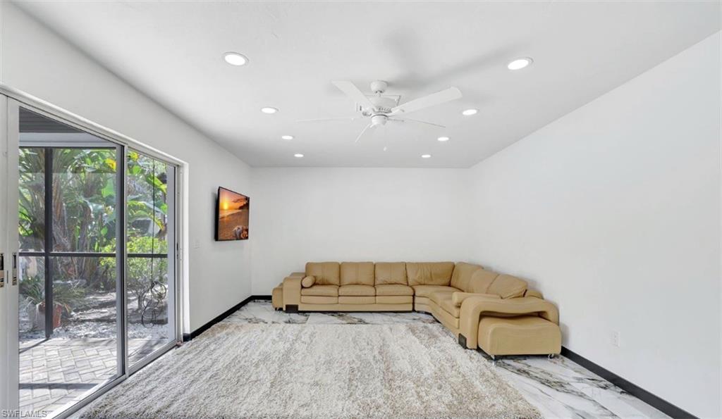 Experience refined estate living in the heart of Naples, located in the highly desirable Collier Woods neighborhood. Set on 2.59 ACRES (gated and fenced) - this former model home offers privacy, flexibility, and upgraded living just minutes from shopping, dining, and top schools. Featuring 3 bedrooms + Den, 2 bathrooms, PLUS an additional den or flex space with French doors—perfect for a home office, playroom, or creative space. With 2,166 square feet under air and a 1,200 sq. ft. steel-frame, air-conditioned bonus structure built in 2014, the property is ideally suited for multi-use living, whether it's a workshop, gym, or home-based business. Interior highlights include a bright, open layout with sliding doors, custom recessed lighting throughout, and a renovation in 2018 with a focus on the kitchen, laundry room and bathrooms. The kitchen features updated appliances, induction cooktop, modern cabinetry, and LED lighting beneath the bar and peninsula for an elevated yet functional finish. Outdoors, enjoy a heated saltwater pool and spa, paved circular driveway, basketball court, RV/boat parking with 30-amp outlet, irrigated garden beds, and a chicken coop. Additional improvements include a metal roof (2022), whole-home generator with 500-gallon LP tank (2024), reverse osmosis water system, new irrigation system (2023), ADT security with four Nest cameras, and a tiled, air-conditioned two-car garage. The bonus structure offers a private electric meter, dual breaker panels, built-in shelving, and paved access. No HOA, no flood history, and being sold unfurnished—this is a rare opportunity to own a flexible and beautifully upgraded estate property in one of Naples’ most central and sought-after locations.