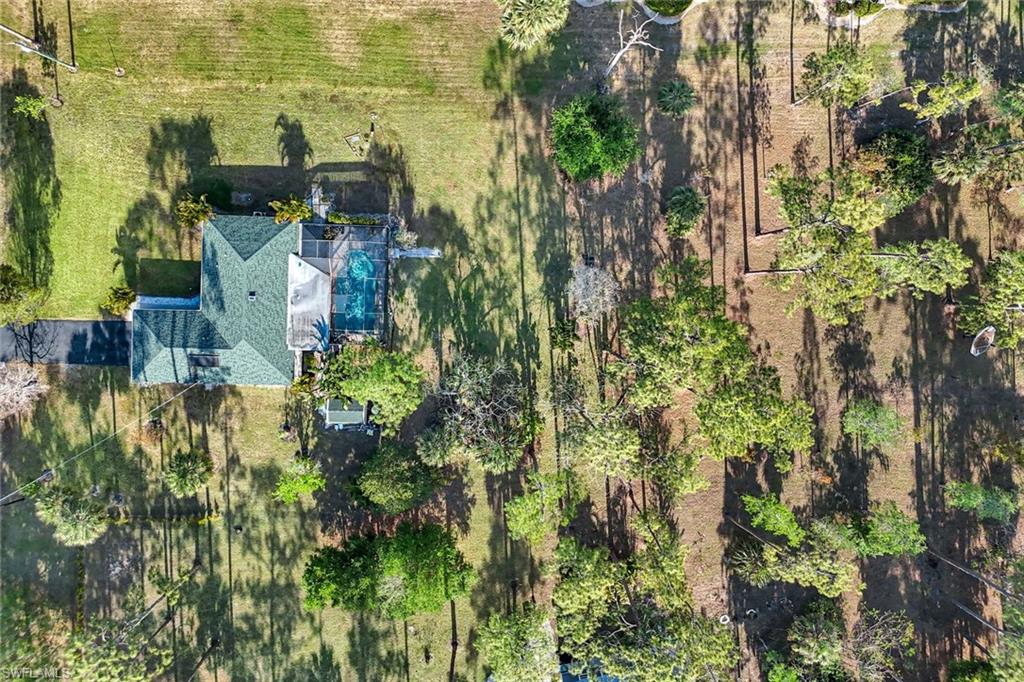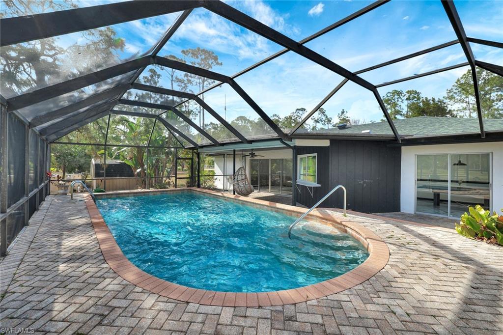 Best Buy in Collier Woods! Spacious 3 bedroom + den, 3 bath home on 2.34 fully fenced acres with a gated entrance and desirable southern exposure. The expansive lanai and oversized pool provide an ideal setting for entertaining or relaxing outdoors. Surrounded by lush landscaping, the property features garden beds and an array of fruit trees: Lychee, Orange, Mango, Avocado, Florida Cherry, and Grapefruit. This home offers endless potential to update and personalize to your taste while enjoying the peace and privacy of estate living. Conveniently located west of Collier Blvd, just 6 miles from Naples’ sugar-sand beaches and minutes from shopping and dining. Guest house can be built. Horses and animals welcome!