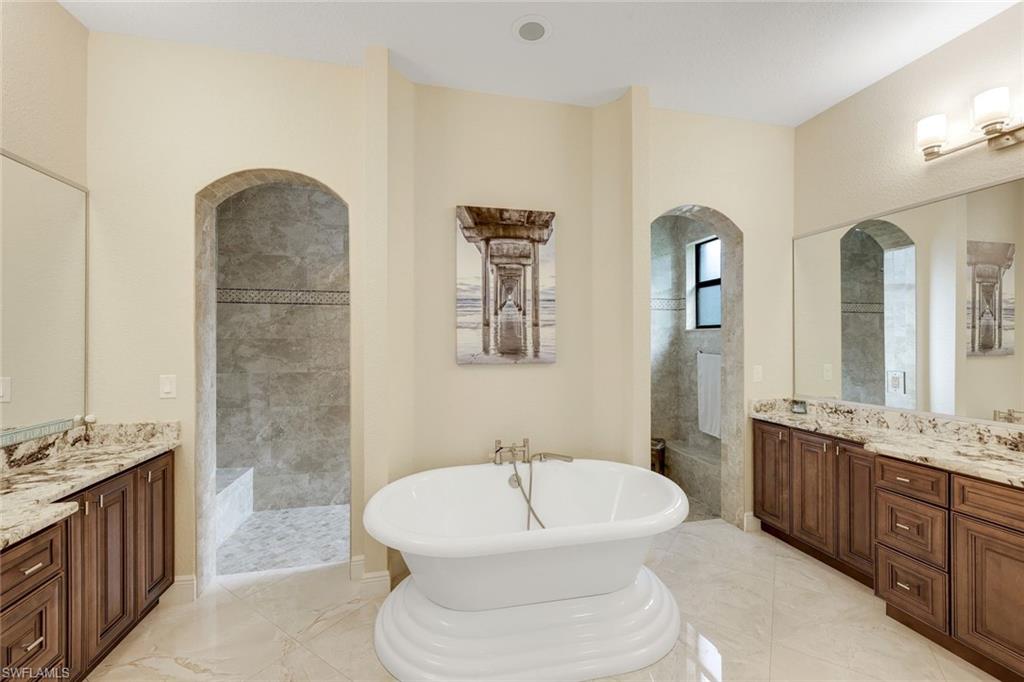 Impeccably Maintained Two-Story Estate Home in Coveted COLLIER WOODS! Welcome to this beautiful and spacious two-story 4-bedroom + large den, 3-bathroom custom residence, set on over 2 acres of impeccably landscaped grounds. Located just south of Vanderbilt Beach Rd, near Founders Square, Mercato, and Galleria Shops, this home offers privacy, elegance, and an unbeatable Naples location. Step inside to soaring vaulted and volume ceilings, over 3,100 sq. ft. under air, and elegant finishes including hardwood floors, new high-end carpet and some newer appliances. The flexible floor plan features a large den that can easily be converted into a mother-in-law suite. The kitchen is next to the EXPANSIVE GREAT ROOM, a large eat -in kitchen area and a SEPARATE FORMAL DINING AREA OPEN TO THE GREAT ROOM. A convenient full pool bath is thoughtfully located on the main level. The expansive primary suite offers a relaxing retreat with a bay window seating area currently used as a home office, his and her sinks, a soaking tub, separate shower, and ample closet space. UPSTAIRS, in this two-story layout, you'll find THREE additional spacious bedrooms, a large full bath with dual sinks, and a charming private SCREENED PORCH—plus a laundry chute for added ease. Outdoors, enjoy the screened pool and lanai area with both covered and sunny spaces ideal for entertaining or relaxing. The home is surrounded by exceptional, curated landscaping featuring over $500K in enhancements—including rare palms, bromeliad and orchid gardens, and meandering walking paths through serene, tropical greenery. It's a private botanical retreat rarely found in Naples. Additional features include - Whole house generator - Hurricane film on all windows - Tile roof with recent inspection - New and newer A/C units - Attached 2-car garage -Heavy duty CONCRETE PAD FOR BOAT OR CAMPER. NEW Septic / Drainfield to be completed in October 2025. Perfect for families or hosting guests, this exceptional Collier Woods residence blends comfort, natural beauty, and high-end living.