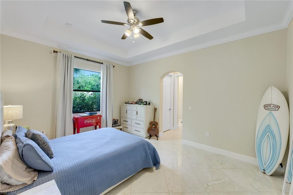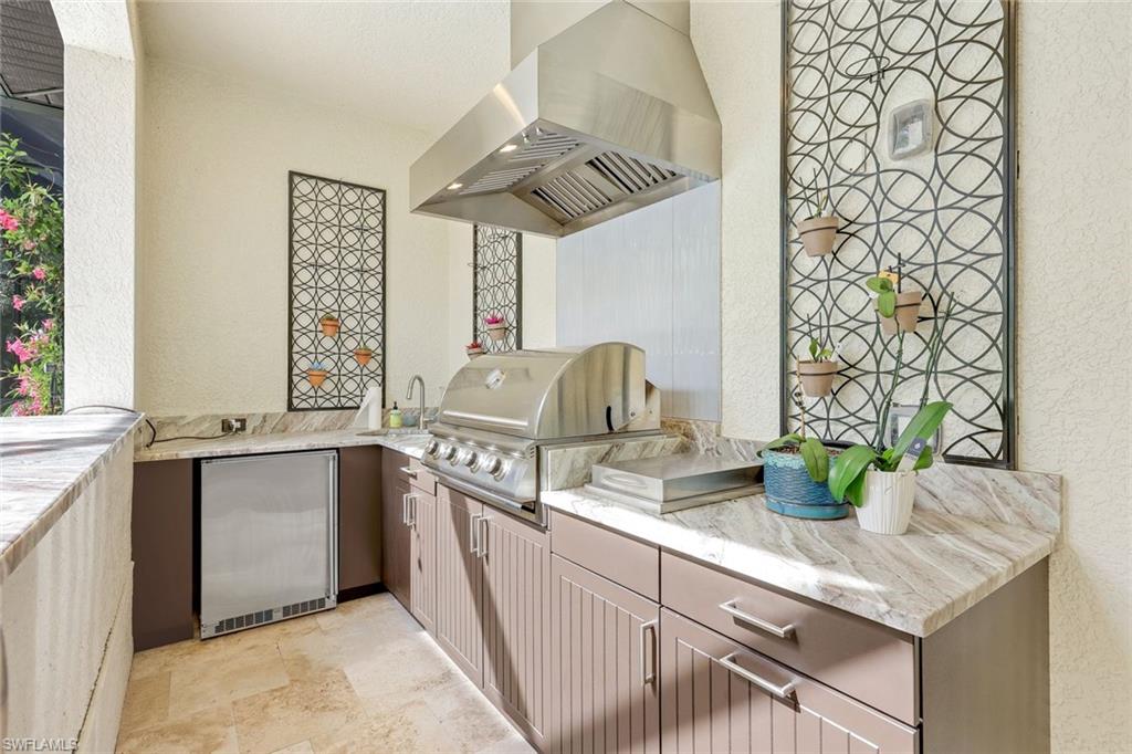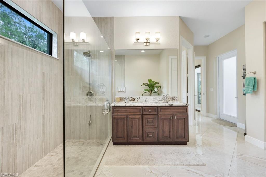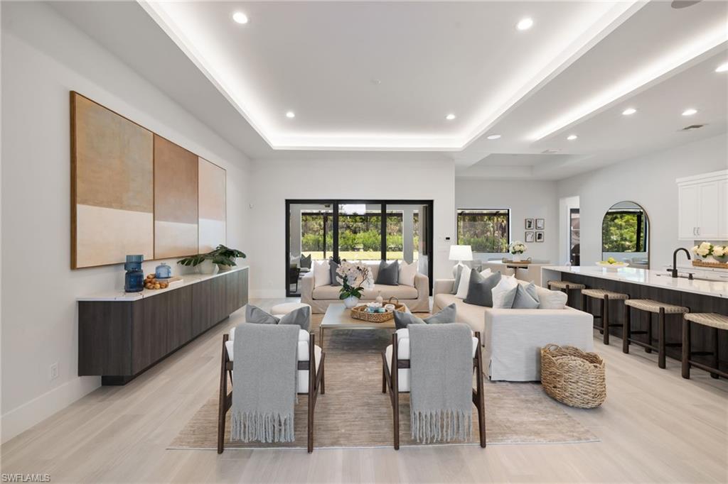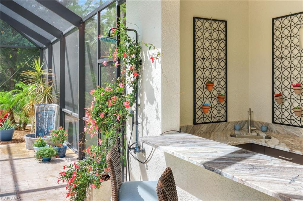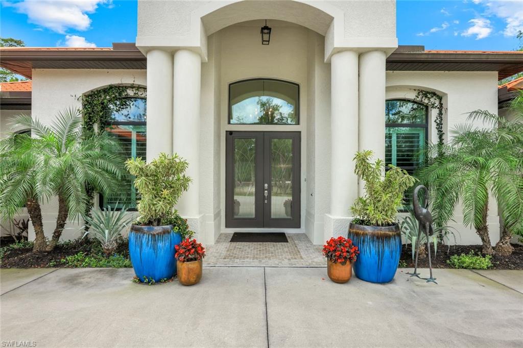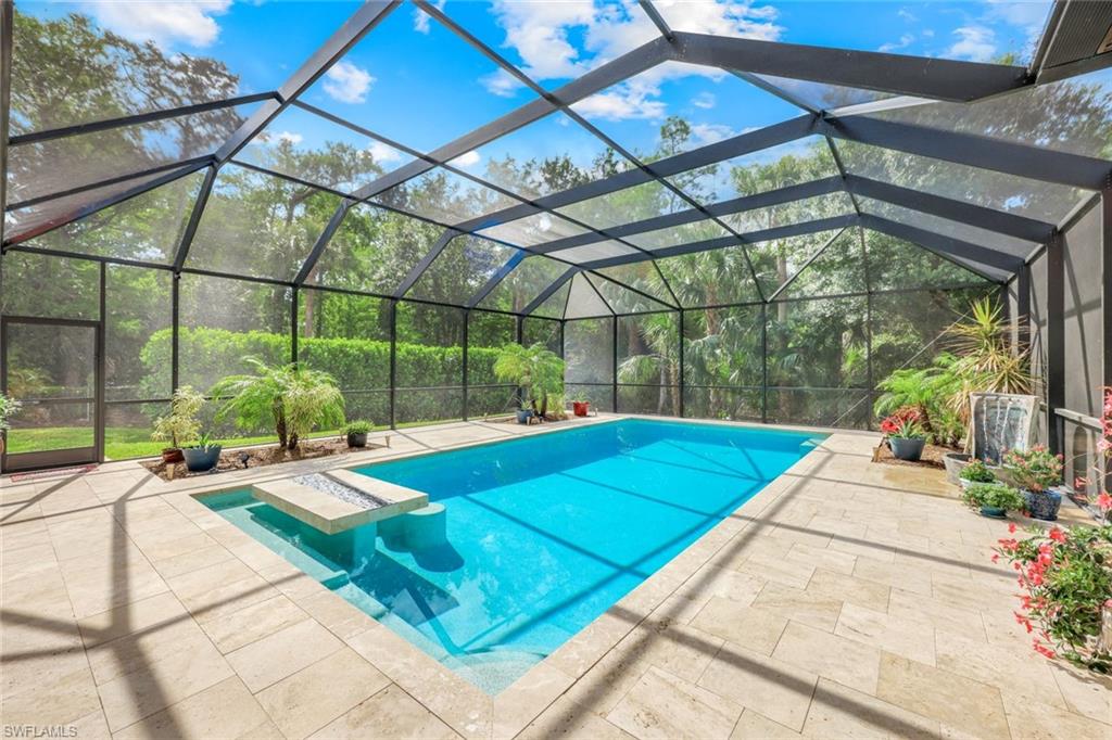 Coastal Modern Retreat on 2.45 Acres—No HOA, Prime Naples Location! Welcome to your private oasis, where modern design meets estate-style living. This 2018-built custom home sits on a beautifully landscaped 2.45-acre lot with a paver driveway and charming front entry. Step through the 9' mahogany front door into a bright, open living space with soaring 15' ceilings and epoxy floors in a marble blend of greys and blues—creating a polished coastal vibe. A stylish wet bar with wine fridge makes entertaining effortless, while the open layout invites flow and function. With 2,616 sq ft under air (3,248 total), this thoughtfully designed 3-bedroom, 3.5-bath home includes a versatile flex room with glass pocket doors and large sliders that disappear into the wall—ideal as an office, gym, den, or guest suite. Just beyond the main living spaces, the elegant primary suite offers tranquil pool views and direct lanai access. Sunlight fills the room, highlighting soft tones, a custom wallpaper accent wall, and upscale finishes that create a relaxing escape. The spa-like primary bath features dual vanities, a freestanding soaking tub, and dual walk-in shower with floor-to-ceiling textured tile. Bedrooms offer 10'+ ceilings, engineered oak flooring, 8' solid wood doors, and privacy. Both guest bedrooms have en-suite bathrooms; one features a steam shower and pool access. The chef-inspired kitchen impresses with quartz countertops, double wall oven, gas cooktop, and WalzCraft cabinetry (42" lowers, 24" uppers). A large island with cabinets on both sides offers added storage, prep space, and casual dining. Entertaining is effortless—open the sliders to the expansive covered lanai with stone tile and cypress ceiling. A huge paver sun deck surrounds the heated pool and spa—perfect for relaxing or hosting. The outdoor kitchen with sink and built-in grill sets the stage for weekend barbecues. Built for long-term peace of mind this home features PGT impact windows, standing seam metal roof, spray foam attic insulation, insulated partition walls, generous attic storage, and whole-house surge protector. A Navien tankless hot water heater, whole-house reverse osmosis (300-gal tank), buried 500-gal propane tank, and dual A/C units offer year-round efficiency. The oversized garage includes epoxy flooring and a 220V outlet for your EV, while a carport adds extra covered parking. A 5-zone irrigation system keeps the grounds thriving. Located in Collier Woods—an in-town Estates area with no HOA—offering privacy, space, and unbeatable convenience near top schools, shopping, dining, and Gulf beaches.