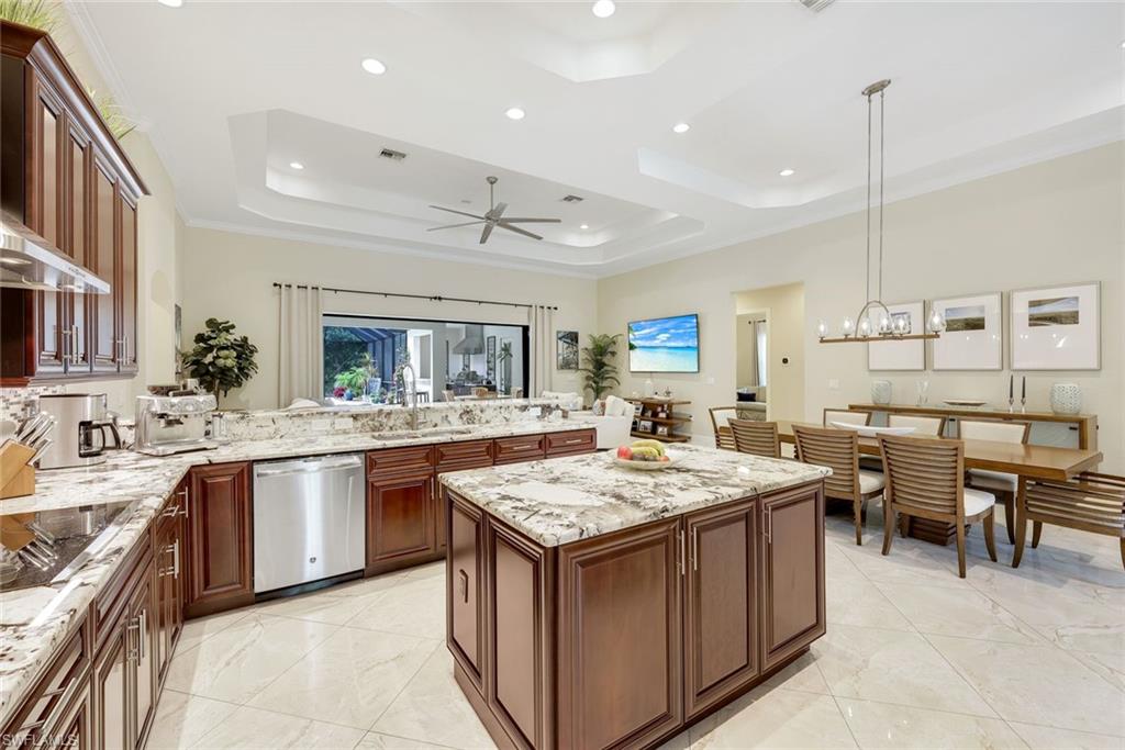 Nestled on 2.58 acres just west of Collier Blvd. and south of Vanderbilt Beach Rd., this stunning residence offers a rare combination of luxury, space, and privacy, making it a true standout in the Naples real estate market. Built in 2017, this meticulously crafted home spans 3,348 square feet of living space under air and an amazing 2,871 square feet of screened lanai designed for entertaining and family gatherings. With 4 large bedrooms plus an executive office and 3.5 bathrooms, the layout of the home provides versatility for both traditional and multi-generational living. Three of the bedrooms feature private en-suite bathrooms, offering convenience and privacy for all family members or guests. The expansive gourmet kitchen is a chef’s dream, featuring stainless steel appliances, an abundance of counter and drawer space. The kitchen is elegantly complemented by exotic granite countertops, providing both style and function. Throughout the home, you'll find beautiful tile flooring, soaring 14-foot tray ceilings in the main living areas, and 11-foot tray ceilings in the bedrooms, creating an open and inviting atmosphere. Designed to stand the test of time, this home boasts hurricane-impact windows and doors, offering peace of mind with low E UV protection. The 8-foot sliding doors pocket to reveal the spectacular screened lanai, extra-large pool measuring (32x16) and a fully equipped outdoor kitchen—ideal for alfresco dining and relaxation. The 12-foot ceilings in the lanai further elevate the space, providing an ideal environment for enjoying Florida’s beautiful year-round climate. Additional features include a 3-car oversized garage with a 185-foot concrete driveway, and a high-end Permatile metal roof, known for its durability and resilience. Built with reinforced concrete and steel, offering unmatched security and protection. The property also boasts extra insulation, energy-efficient appliances, and lighting, ensuring low utility costs. This home is a rare find, offering both luxury and practicality in a close-in location that’s second to none. With too many exceptional features to list, a personal tour is a must to truly appreciate all this home has to offer.
