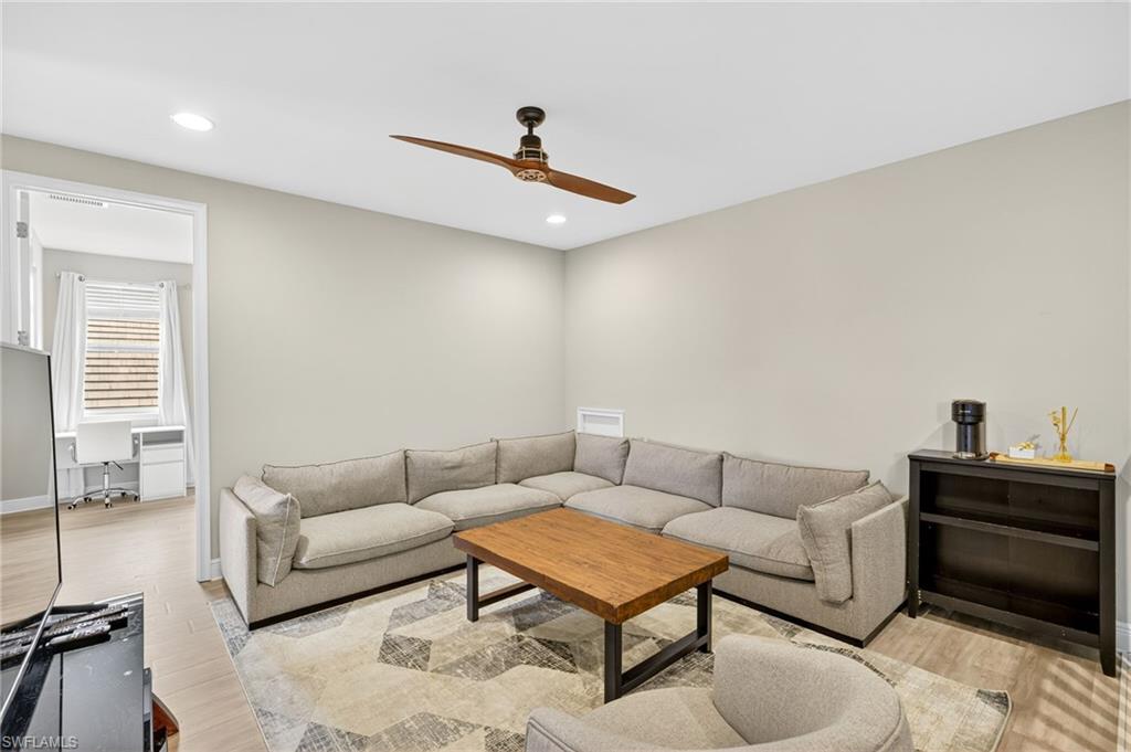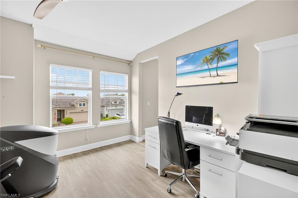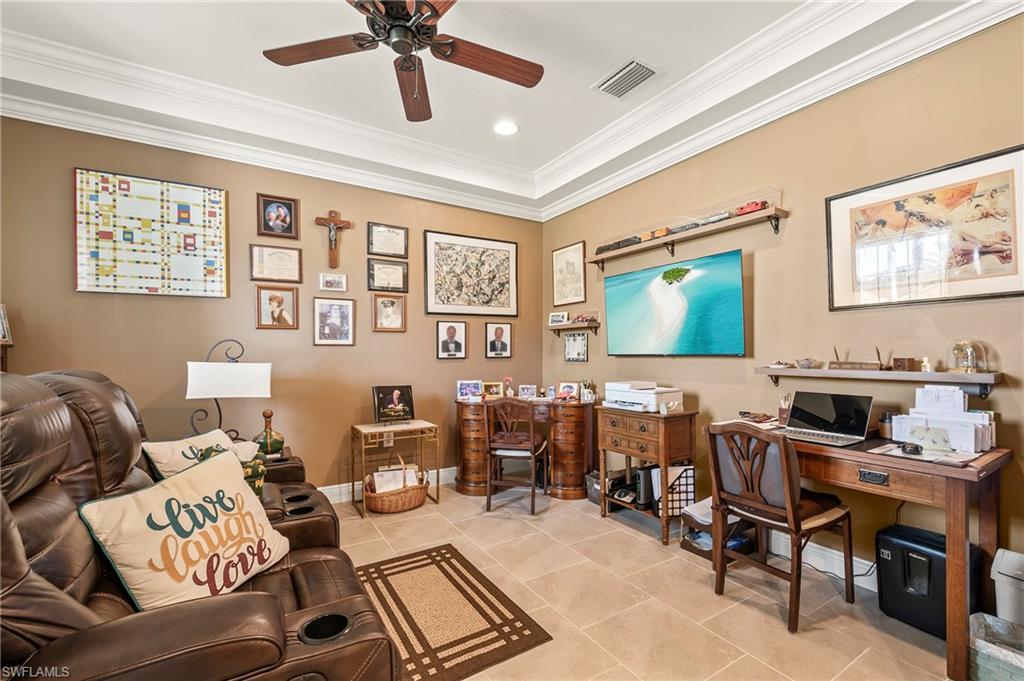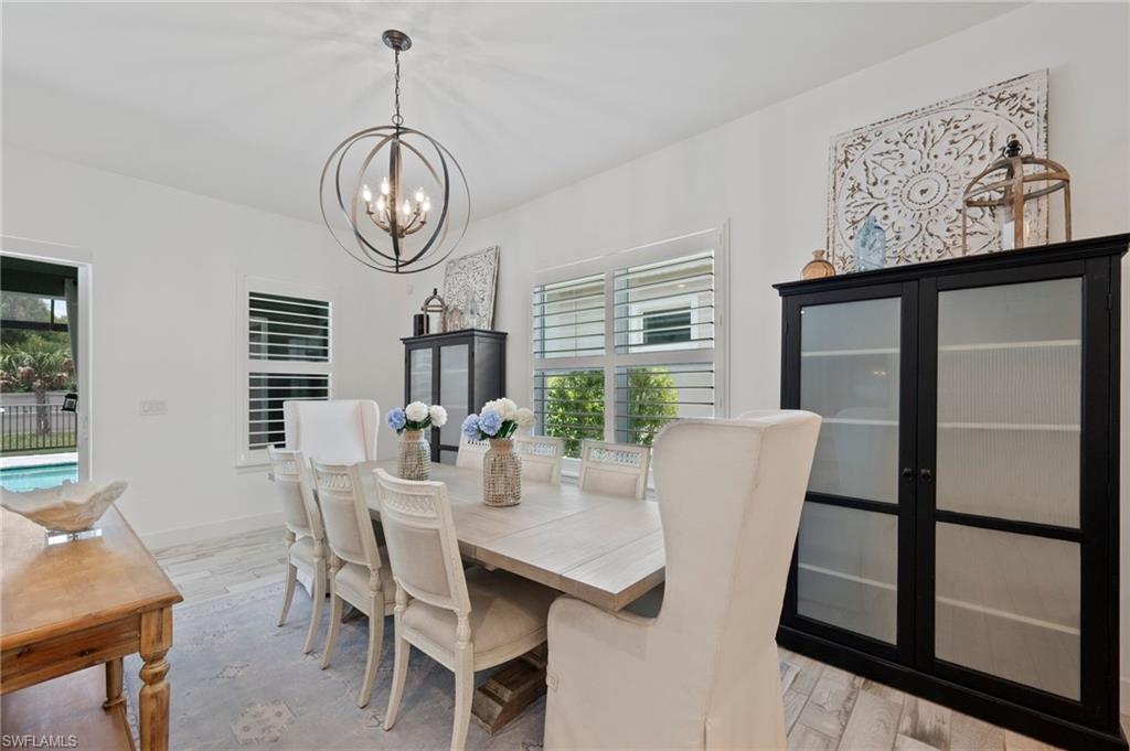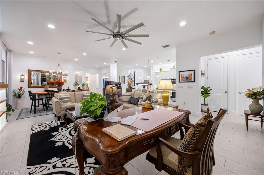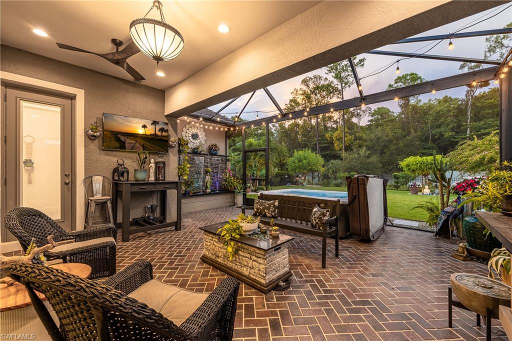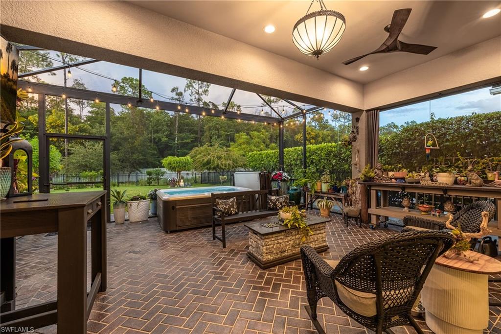 Stunning Turn-Key Home in Desirable Compass Landing – North Naples Fully furnished and offered turn-key (with only a few minor personal exclusions), this immaculately maintained residence exudes style, comfort, and sophistication at every turn. From the moment you enter, you’ll notice the pristine condition, inviting ambiance, and subtle luxury that define this remarkable home. Spanning 2,422 square feet, this 3-bedroom plus office residence showcases thoughtful upgrades both inside and out. Every room has been expertly designed and beautifully finished, featuring designer light fixtures, elegant window treatments, a custom fireplace with built-ins, and an extended screened lanai complete with a relaxing hot tub and breathtaking landscape lighting that transforms the outdoor space into a private retreat. The gourmet kitchen is a showpiece, offering quartz countertops, under-cabinet lighting, a wine cooler, high-end appliances, a deep basin sink, and a spacious walk-in pantry. Details like upgraded hardware and a modern faucet elevate the space even further. The garage impresses with heavy-duty shelving racks and a freshly painted epoxy floor, providing both function and polish. Located in the gated community of Compass Landing, residents enjoy low HOA fees and resort-style amenities including a clubhouse, pool and spa, fitness center, kids’ playground, and a vibrant social calendar — from the annual Christmas Golf Cart Parade to festive Halloween celebrations. Zoned for top-rated Bear Creek Elementary and Gulf Coast High School, this home offers the perfect blend of convenience and community. Enjoy walking distance to Founders Square for dining and entertainment, plus quick access to I-75 for effortless travel. This is an incredible opportunity to own a fully furnished, move-in-ready home in one of North Naples’ most sought-after neighborhoods.