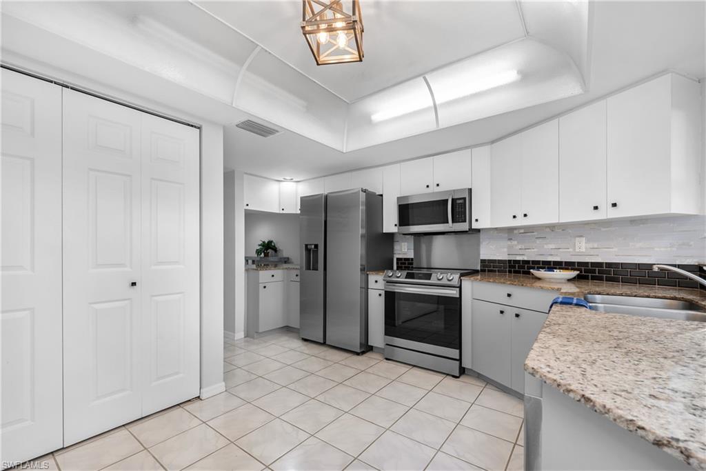 Step into coastal elegance with this stunning 2025 RENOVATED FIRST-FLOOR CONDO offering serene lakefront living in one of Naples’ most desirable areas. Thoughtfully designed and beautifully upgraded, this residence blends modern sophistication with relaxed Florida comfort. Inside, the OPEN-CONCEPT LAYOUT is enhanced by brand-new designer finishes, a fresh contemporary color palette, and abundant natural light. The reimagined kitchen features quartz countertops, custom cabinetry, and new stainless steel appliances, flowing seamlessly into the main living area where TRANQUIL LAKE VIEWS create an inviting backdrop. Wake up each day to the water and wildlife from the spacious primary suite, complete with a newly redesigned ensuite bath. The guest bedroom and bath offer equal comfort and style—perfect for visitors. Enjoy peaceful mornings or sunset evenings on the SCREENED LANAI overlooking the lake, your own private retreat just steps from the water. A RARE PRIVATE GARAGE provides exceptional convenience and storage, while the first-floor location offers effortless access with no stairs. The community enhances the lifestyle with a large, RESORT-STYLE POOL, ideal for lounging, swimming, or socializing in the Florida sunshine. Located minutes from Naples’ pristine beaches, top-tier dining, shopping, and golf courses, this home is truly MOVE-IN READY—a beautifully updated, low-maintenance escape with exceptional views and amenities. Make this your personal residence, your vacation oasis, or rental property today! Welcome home, TURN-KEY OPTIONAL.