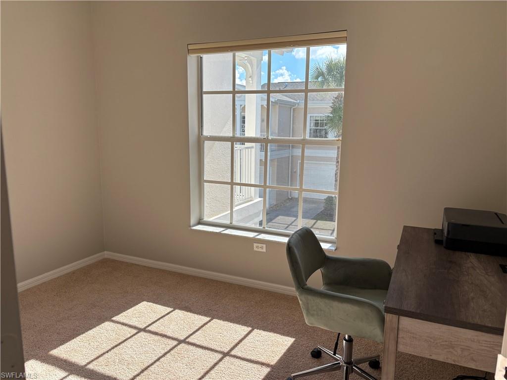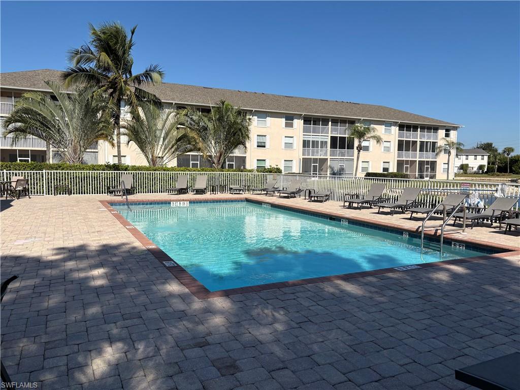 Welcome to your slice of paradise in Naples! This beautifully maintained 2-bedroom, 2-bath condo offers comfortable coastal living just over 3 miles from the Gulf beaches. The light-filled open floor plan features a spacious great room, well-appointed kitchen, and private screened lanai, with lake and pool views Perfect for morning coffee or evening sunsets. The following were all done in 2025, flooring, spray create on lanai, primary toilet, blinds, fridge, dishwasher, kitchen countertop, painted and new lower cabinets in the kitchen. Enjoy the convenience of a covered carport, in-unit laundry, and access to community amenities. Ideal as a year-round residence, vacation retreat, or investment property—all within minutes of shopping, dining, and Naples’ white-sand beaches.