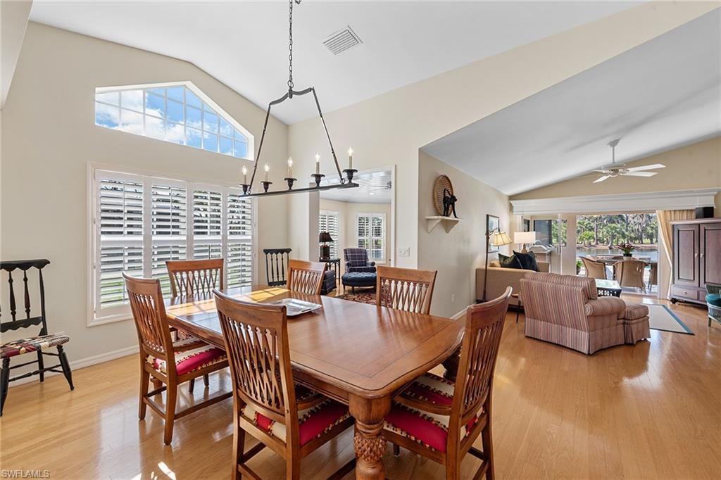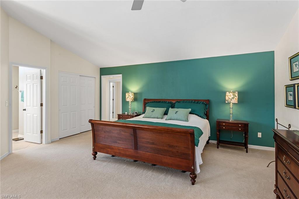 IMMEDIATE GOLF EQUITY MEMBERSHIP IN THIS SMALL NICHE COMMUNITY IN SOUTH NAPLES Imagine-gorgeous SW Florida Sunsets over a serene lake & 18th fairway. Get ready to fall in love with this charming 2 story estate home with incredible views and most desirable location in Eagle Creek. This 3 bedroom 2.5 bath Eagle model has fine wood cabinetry and granite counter tops in the kitchen and baths. With the master bedroom suite downstairs and the 2 additional bedrooms upstairs, allows for added privacy when your out of town guests arrive. The spacious family room opens to a large covered lanai, paver pool deck and sparkling pool and spa. If you enjoy walking (optional) a beautiful 18 hole championship golf course then Eagle Creek is where you want to be! Short walk to the newly renovated clubhouse, practice range, tennis, PICKLEBALL, fitness classes, and state of the art fitness center.