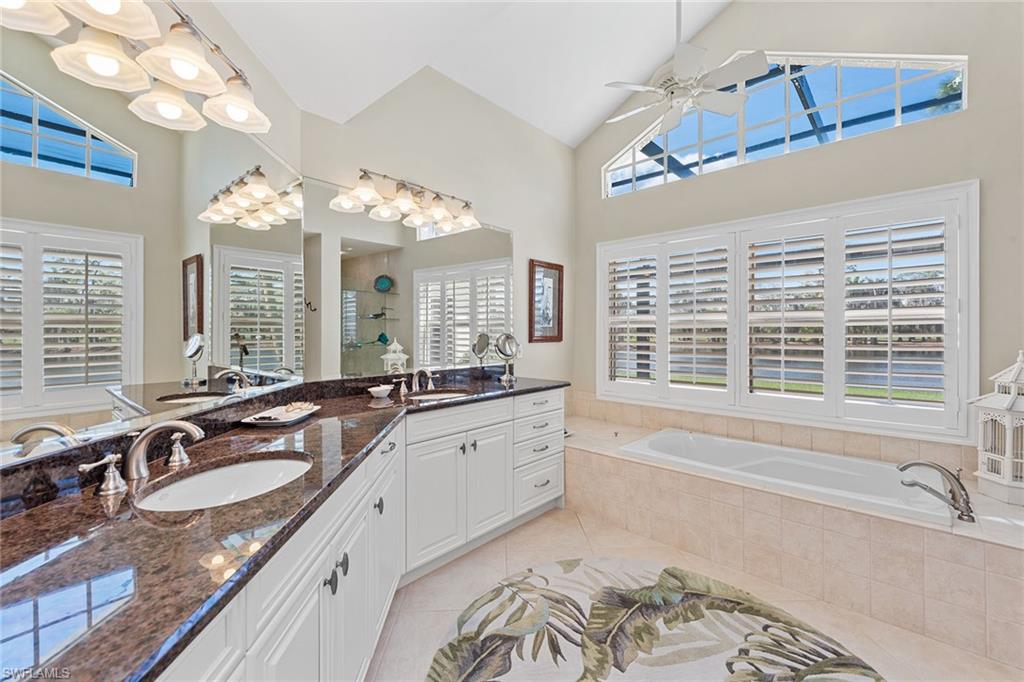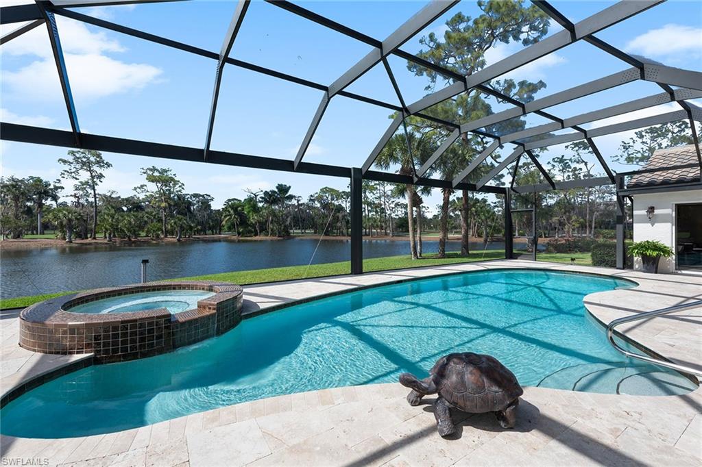 The perfect home for entertaining friends, family, and overnight guests! Even better, a full golf membership is available with this expansive and meticulously maintained Eagle Creek estate residence. This exceptional home offers an abundance of space and luxurious features throughout, providing privacy and open-concept areas. The bright and flowing layout showcases a beautiful kitchen, featuring luxury finishes and premium appliances, seamlessly opening to the dining and living areas, ideal for entertaining or intimate gatherings. Additionally, you will find three generously sized bedrooms, 2.5 baths and a large study with wraparound windows, offering serene water and golf course views. The incredible owner’s retreat includes a welcoming bedroom, attractive bath, ample closet space and a private sitting room with tranquil vistas, a haven for relaxation. Guests will feel right at home in the private guest suite, which boasts its sitting room, a spacious bedroom, a well-appointed bath and two large closets. The third guest bedroom is thoughtfully situated for privacy with easy access to a nearby luxurious bath. This home is on an oversized .41-acre lot, showcasing breathtaking water and golf course views. Step outside to enjoy these stunning vistas and famed Naples sunsets from the inviting covered lanai or take a dip in the sparkling swimming pool and spa, surrounded by a marble pool deck and panoramic screen enclosure. Even better, this home features a newer tile roof, two new HVAC systems and electronic storm screens on the lanai. This one-of-a-kind property is the epitome of country club living. Eagle Creek’s main clubhouse just underwent a complete remastering, transforming it into one of the finest clubhouses in Naples. Ready for its next owner, this home promises a lifestyle of elegance, relaxation and entertainment. Please note that the total HOA costs listed on external sites are inclusive of master HOA, estate home HOA, and club membership dues.